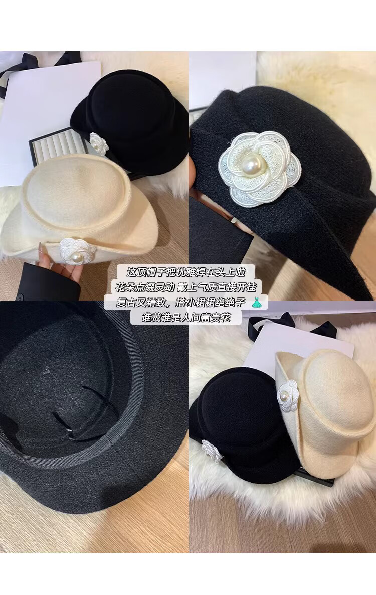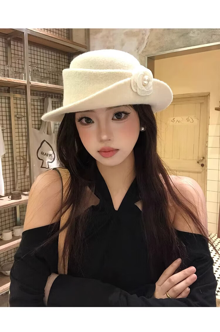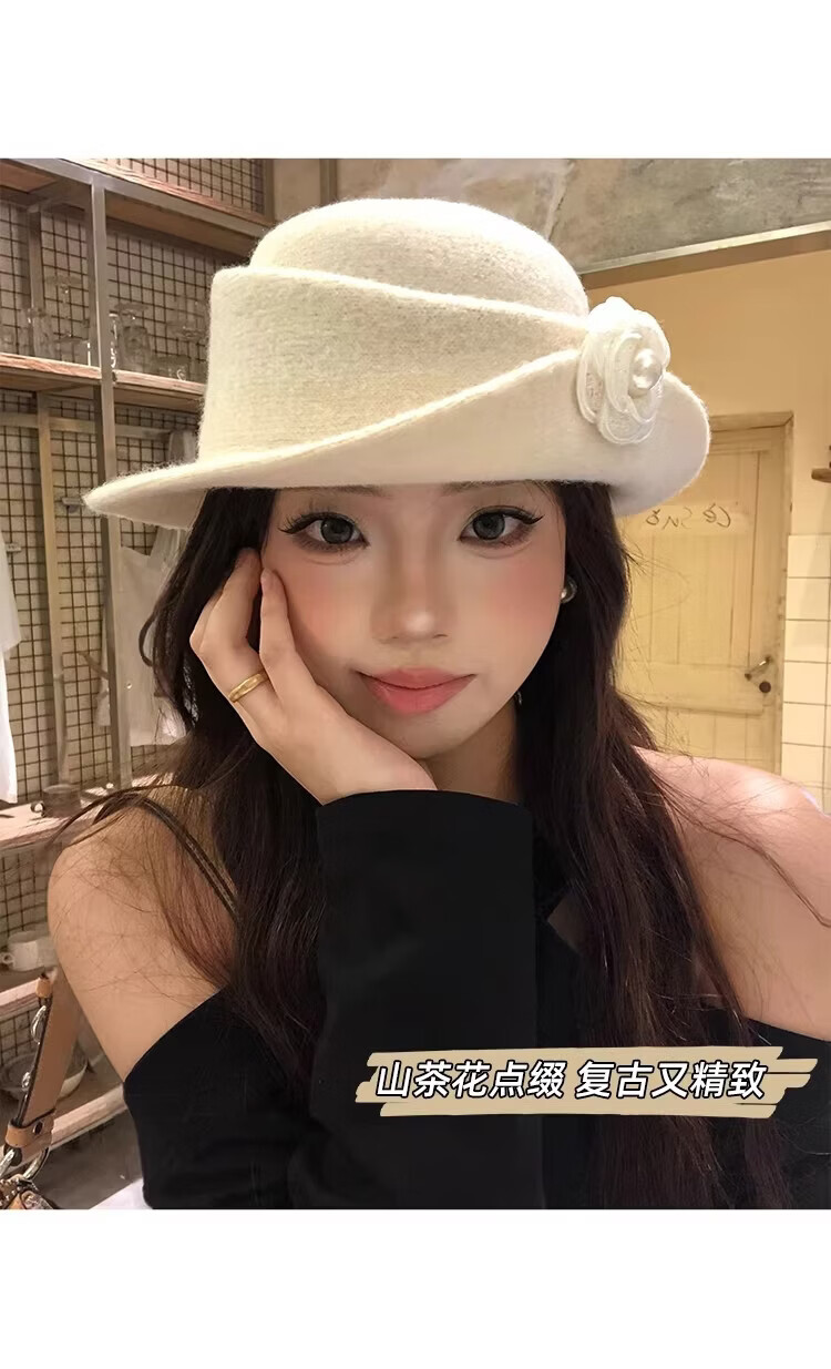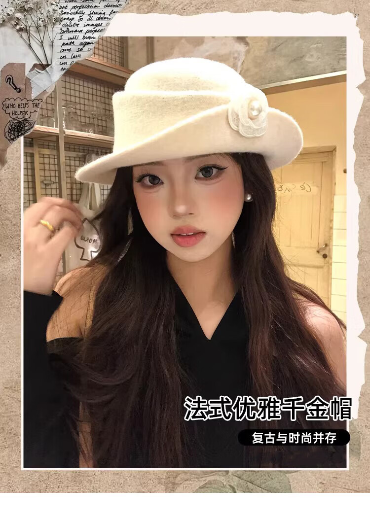 JIOESC Hut für Damen, französischer Stil, eleganter Zylinder, Hepburn-Stil, Retro-Mode, Gesicht zeigend, kleiner Fischerhut, Beckenhut, Flip-Hut, Beige, 56–58 cm