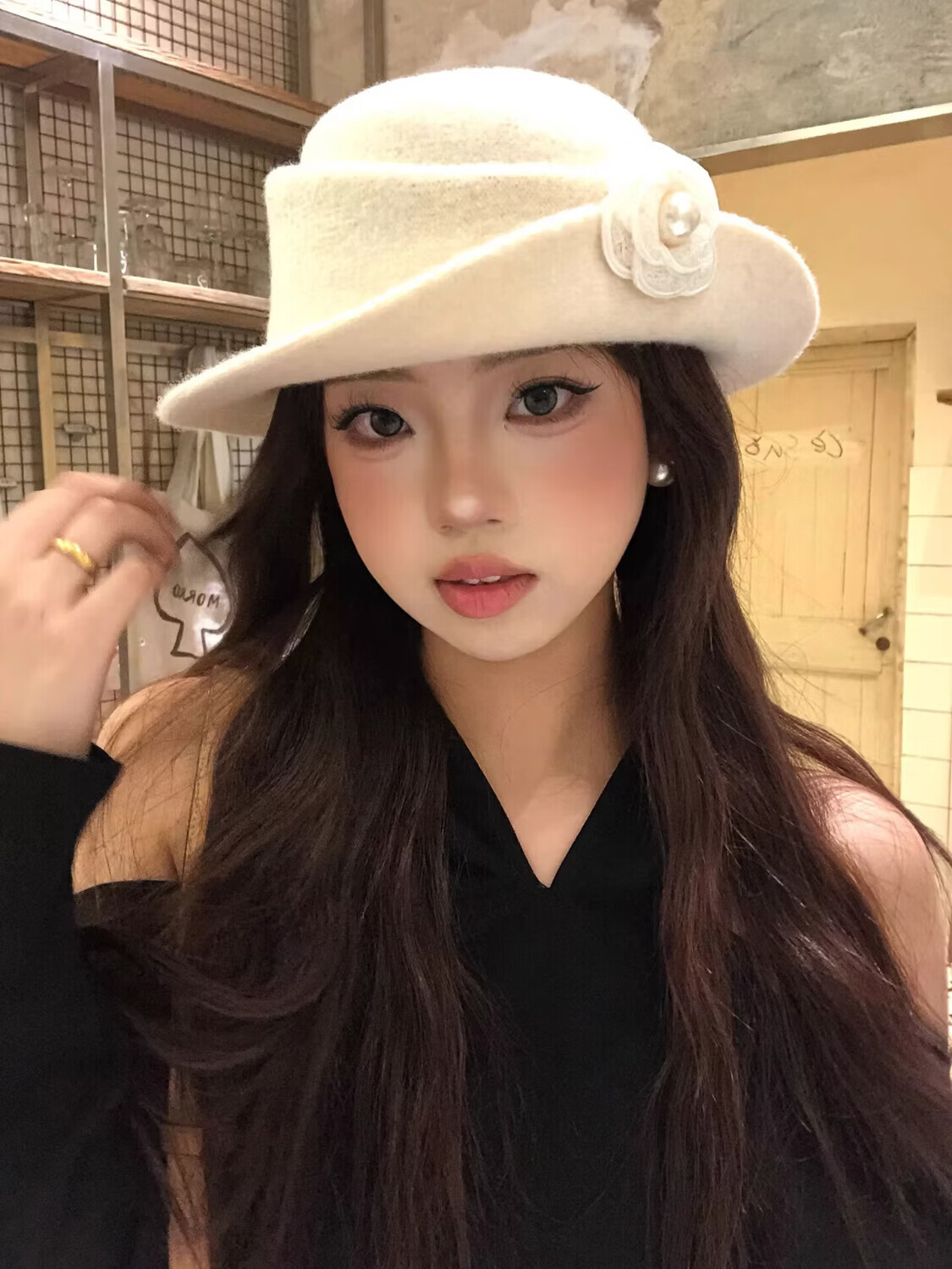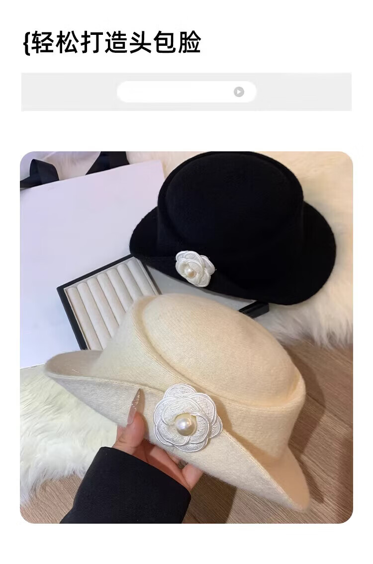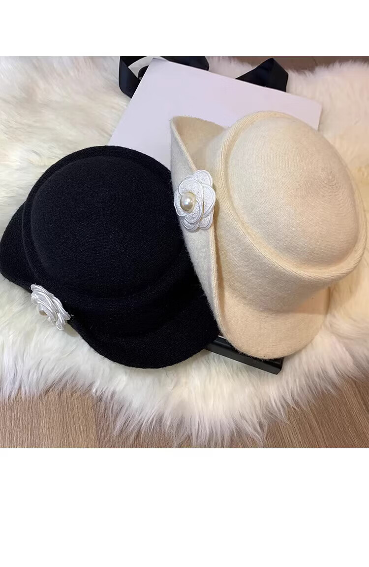 JIOESC Hut für Damen, französischer Stil, eleganter Zylinder, Hepburn-Stil, Retro-Mode, Gesicht zeigend, kleiner Fischerhut, Beckenhut, Flip-Hut, Beige, 56–58 cm