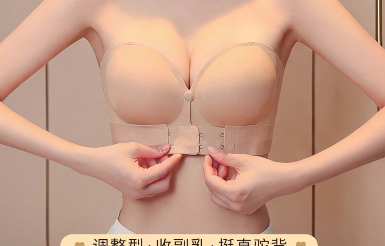 Peach cup adjustable strapless underwear for women, anti-sagging, big breasts, anti-slip, front buckle strapless bra, thin, black, sexy off-shoulder, beautiful back, 75B thick style