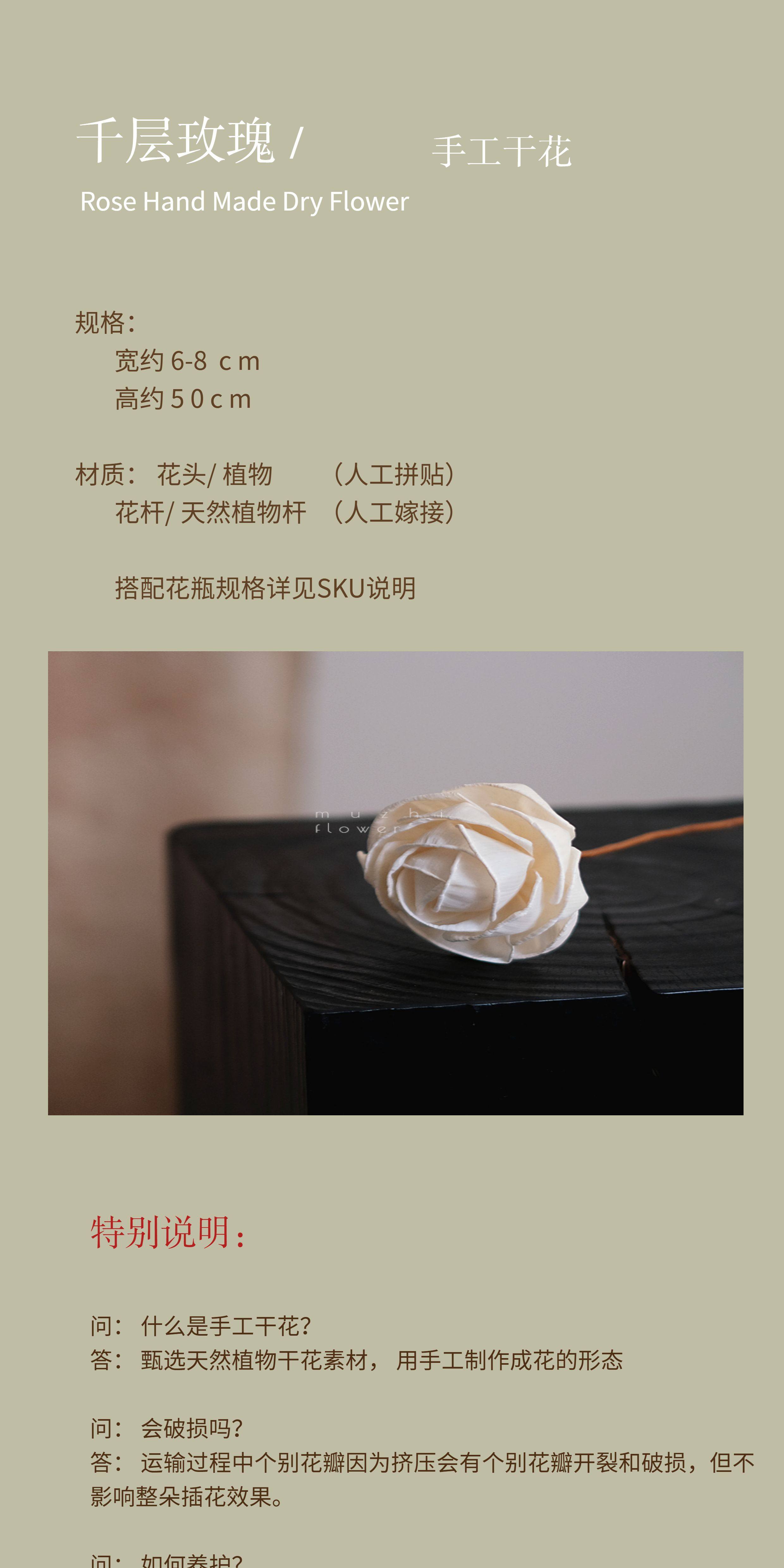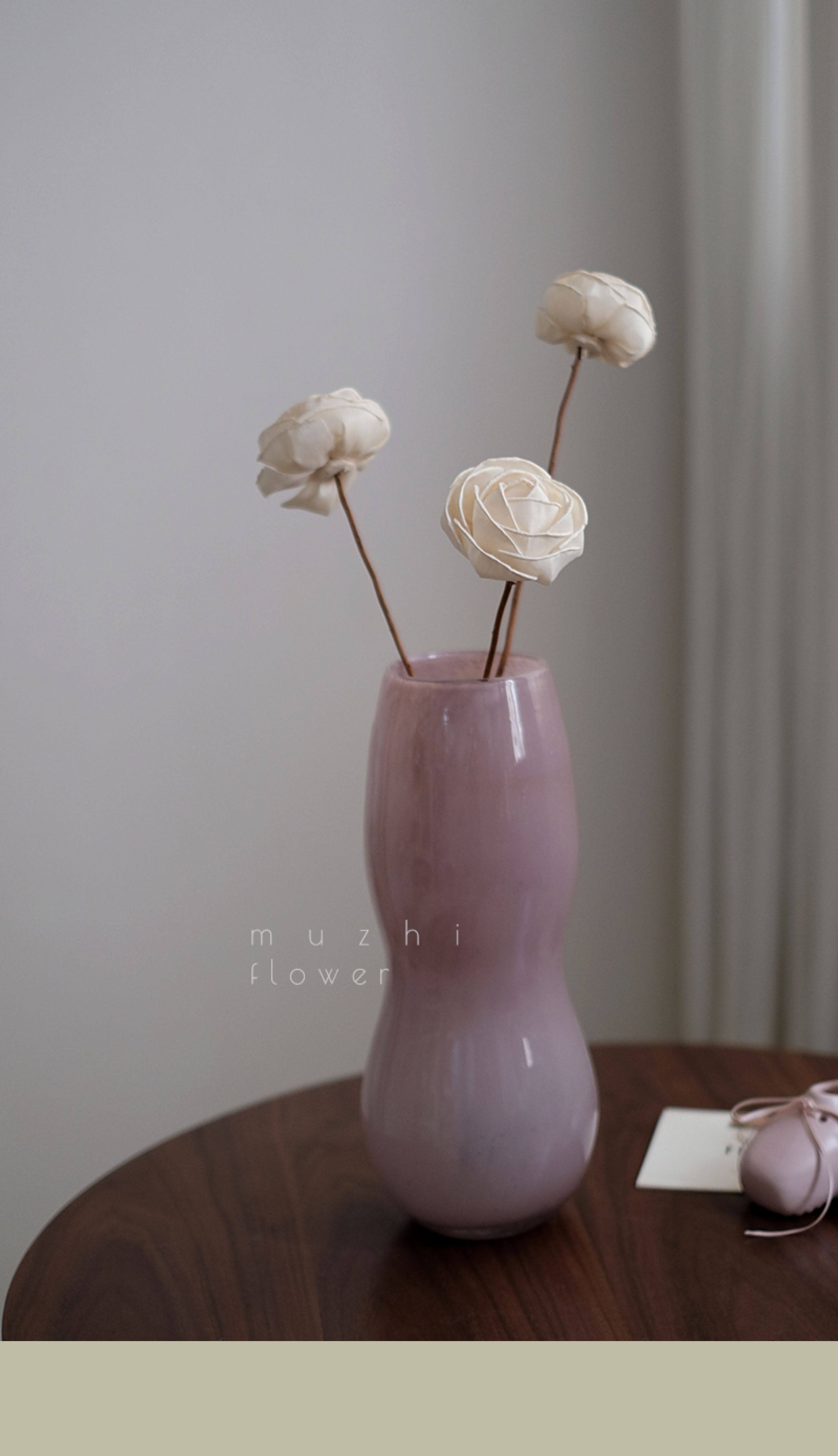High-end thousand-layer rose dried flower bouquet, living room decoration, eternal flower, light luxury, high-end artificial flower decoration upgrade, 3 cherry pink gourds and glazed vase, bottle height is about 31.5cm, flower branches 2