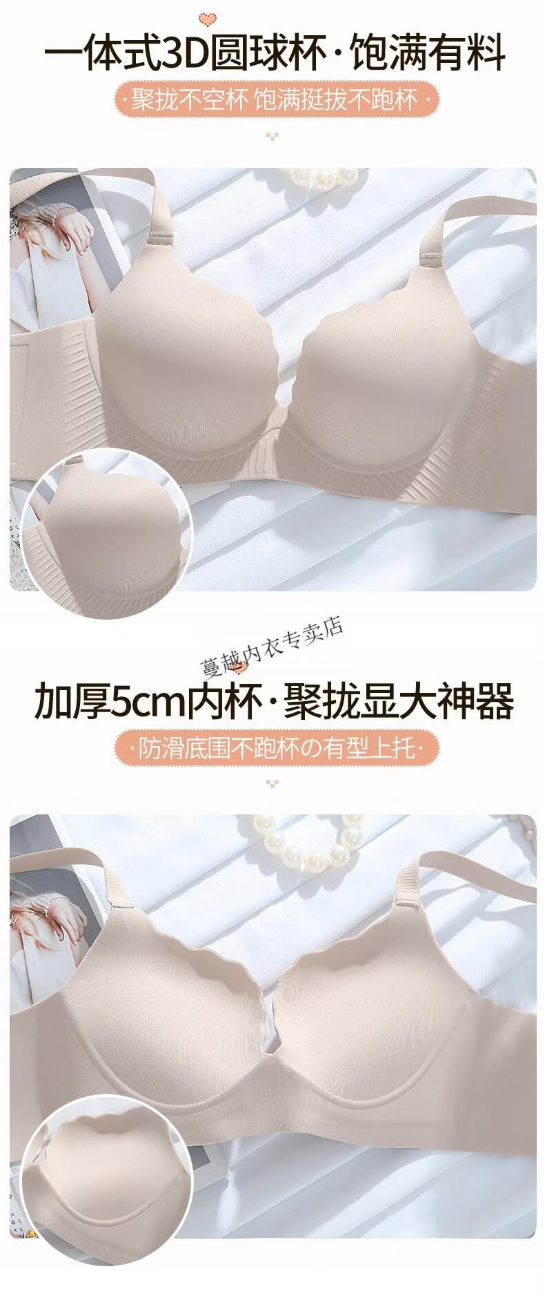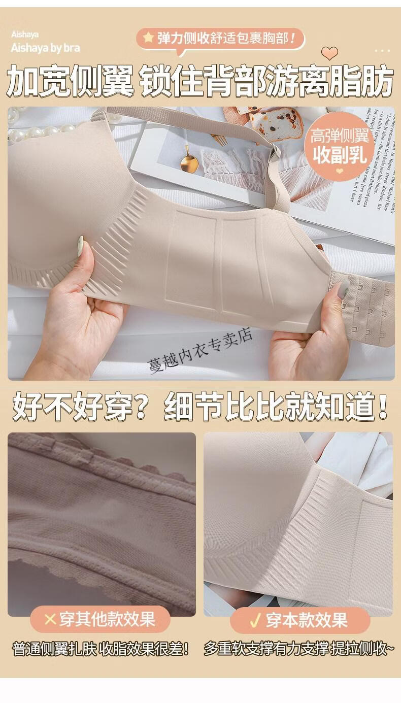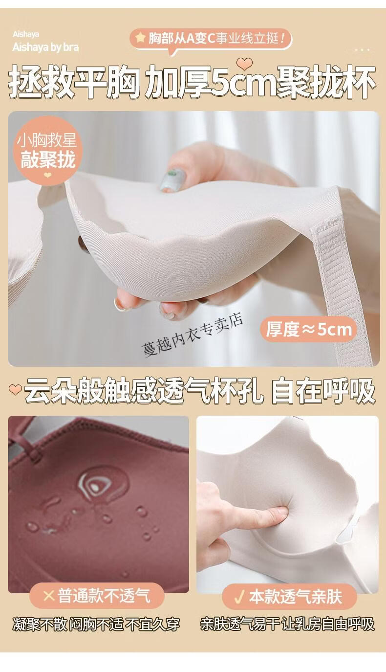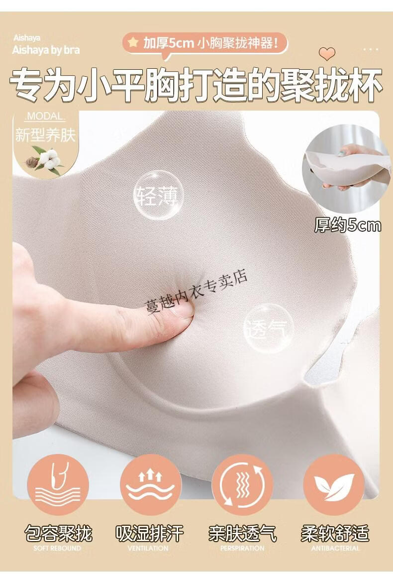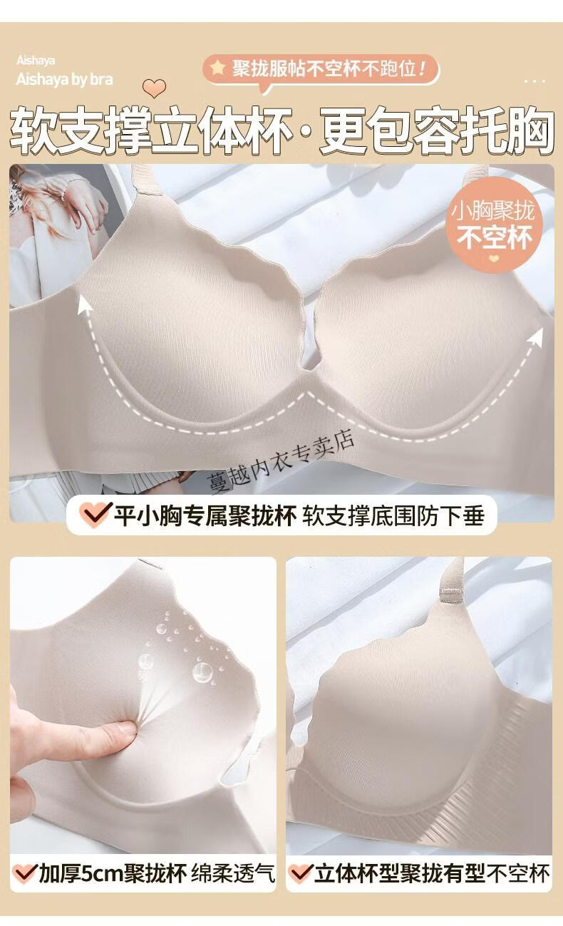 Modal Thickened 5cm Underwear Women's Small Breasts Push Up to Look Bigger Not Empty Cup Bra Wireless Flat Chest Special Steamed Bun Cup Bra Visually Make Big Breasts Push Up - Milk White 70B 32
