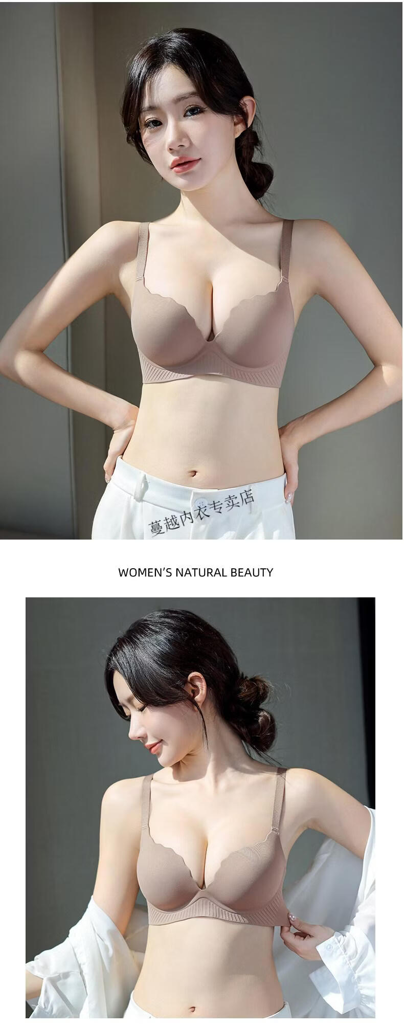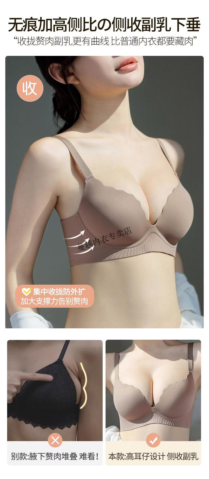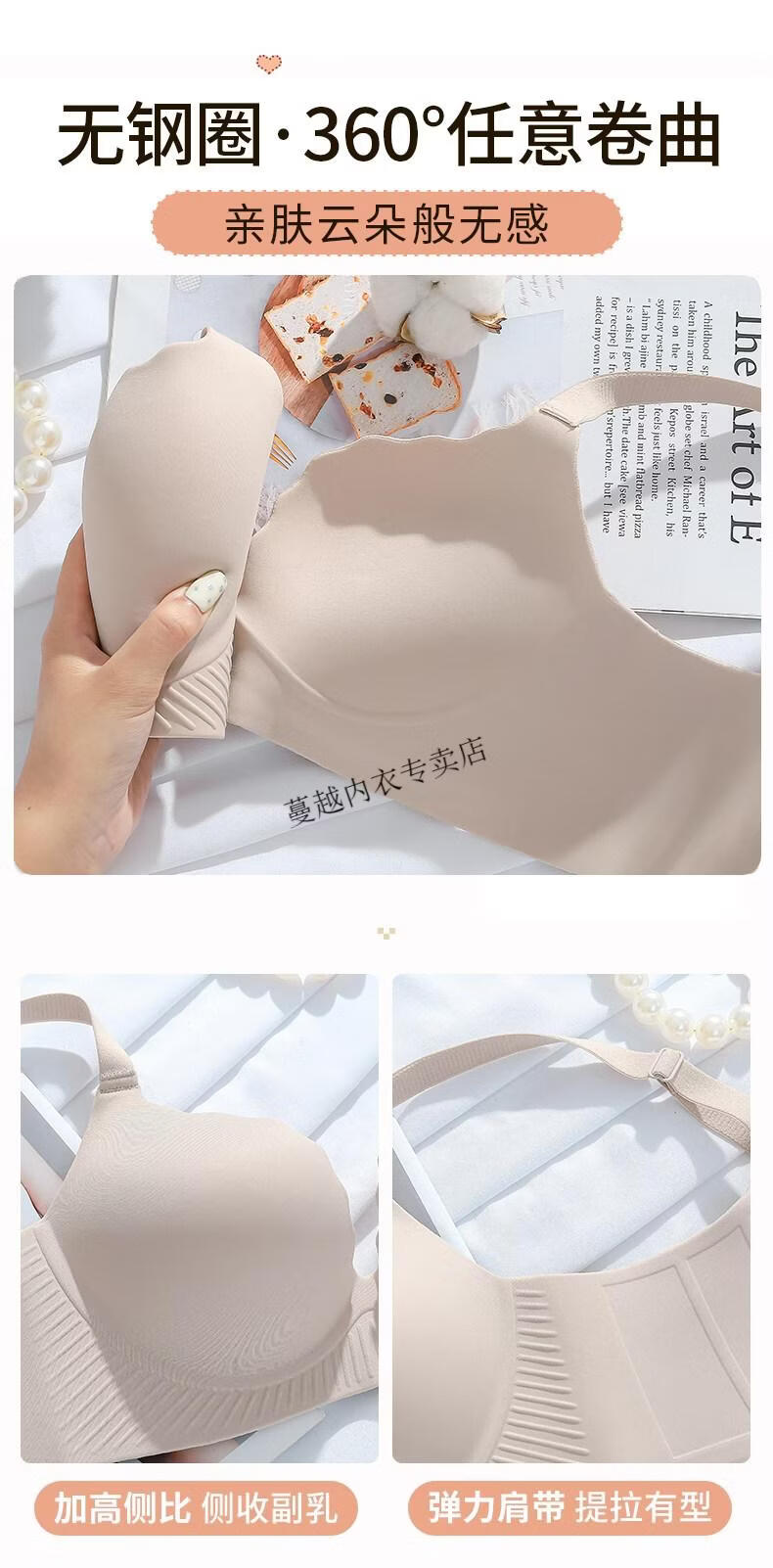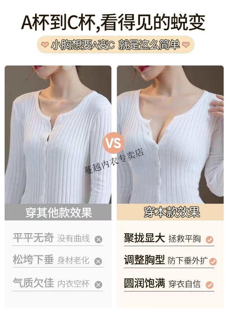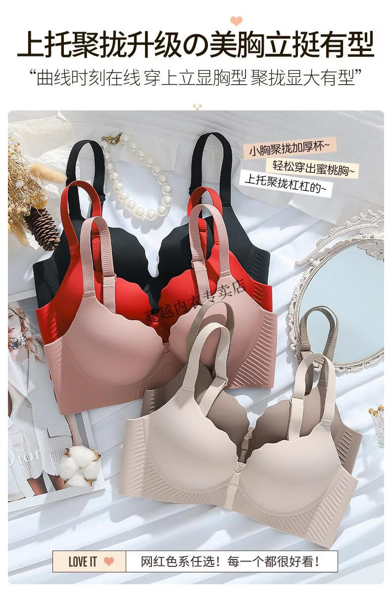 Modal Thickened 5cm Underwear Women's Small Breasts Push Up to Look Bigger Not Empty Cup Bra Wireless Flat Chest Special Steamed Bun Cup Bra Visually Make Big Breasts Push Up - Milk White 70B 32