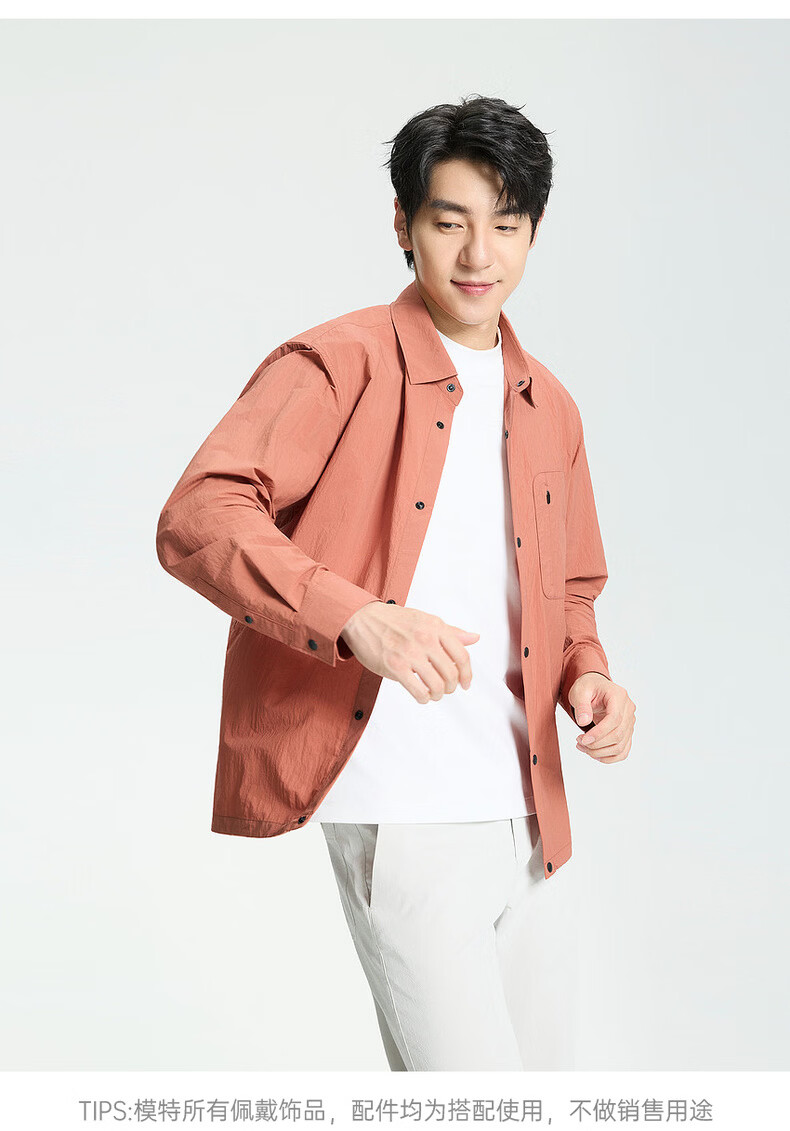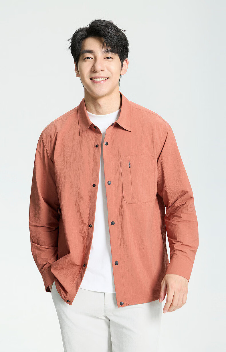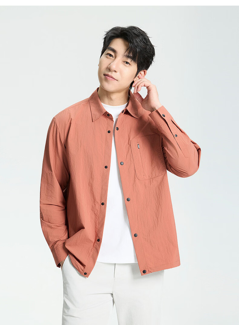 Lilang Shopping Mall Same Style Casual Long-Sleeved Shirt Men's Spring Style 26 New Sunscreen Shirt Cool Men's Shirt Jacket Orange Red (26CXC6022Y) L 170/88A