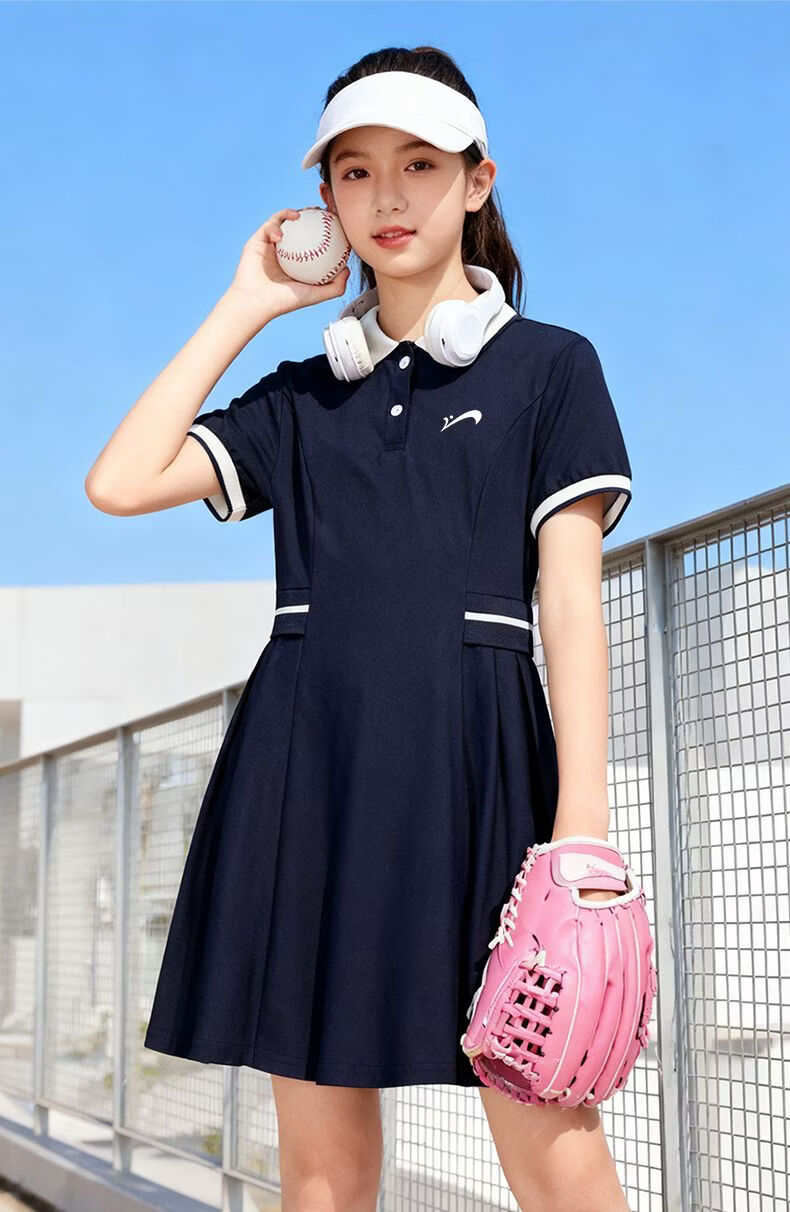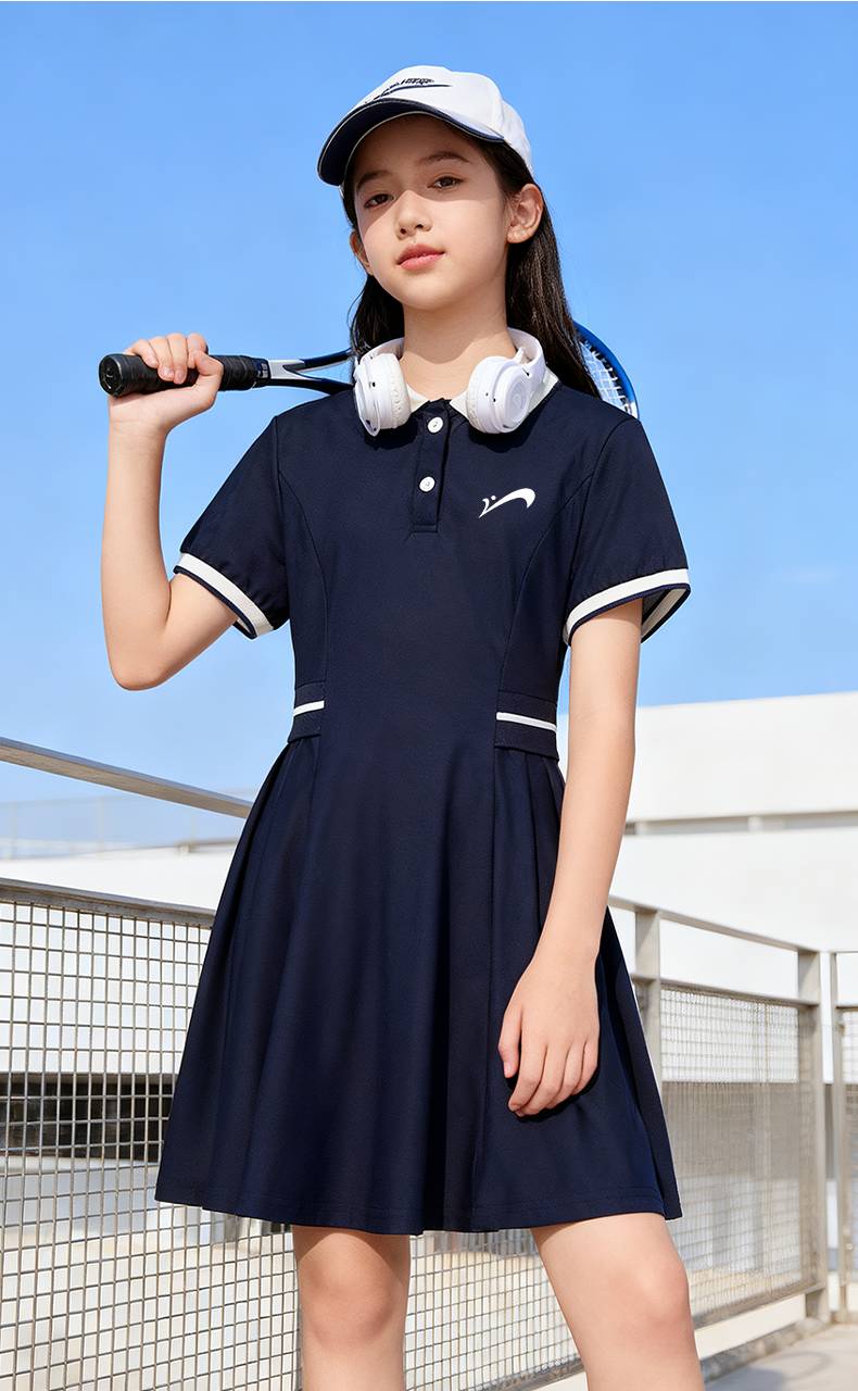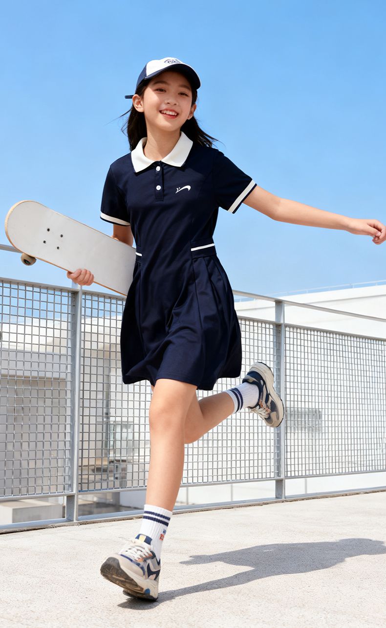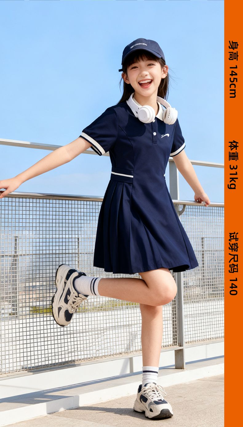 Guirenniao children's clothing, big children's fashionable versatile dress, sweet and cute skirt for girls, thin girl's summer polo skirt, navy blue/G Guirenniao white lettering film K 110