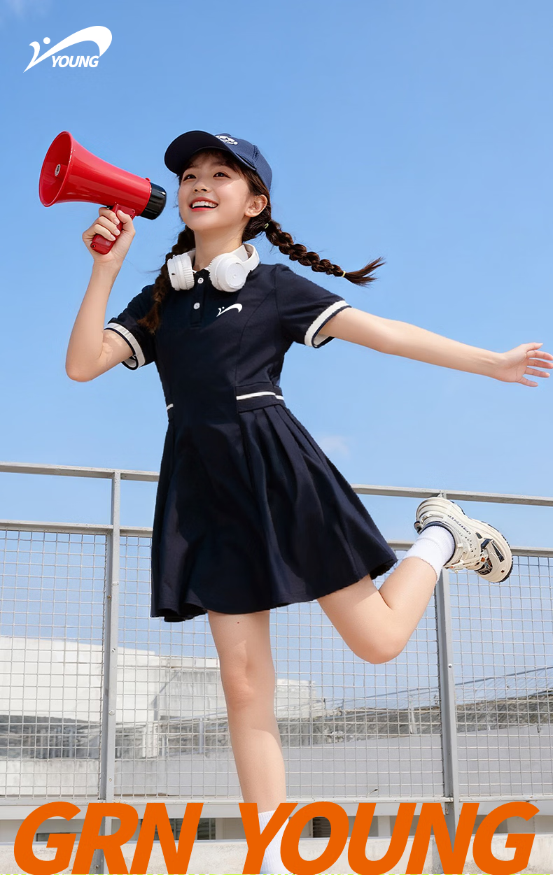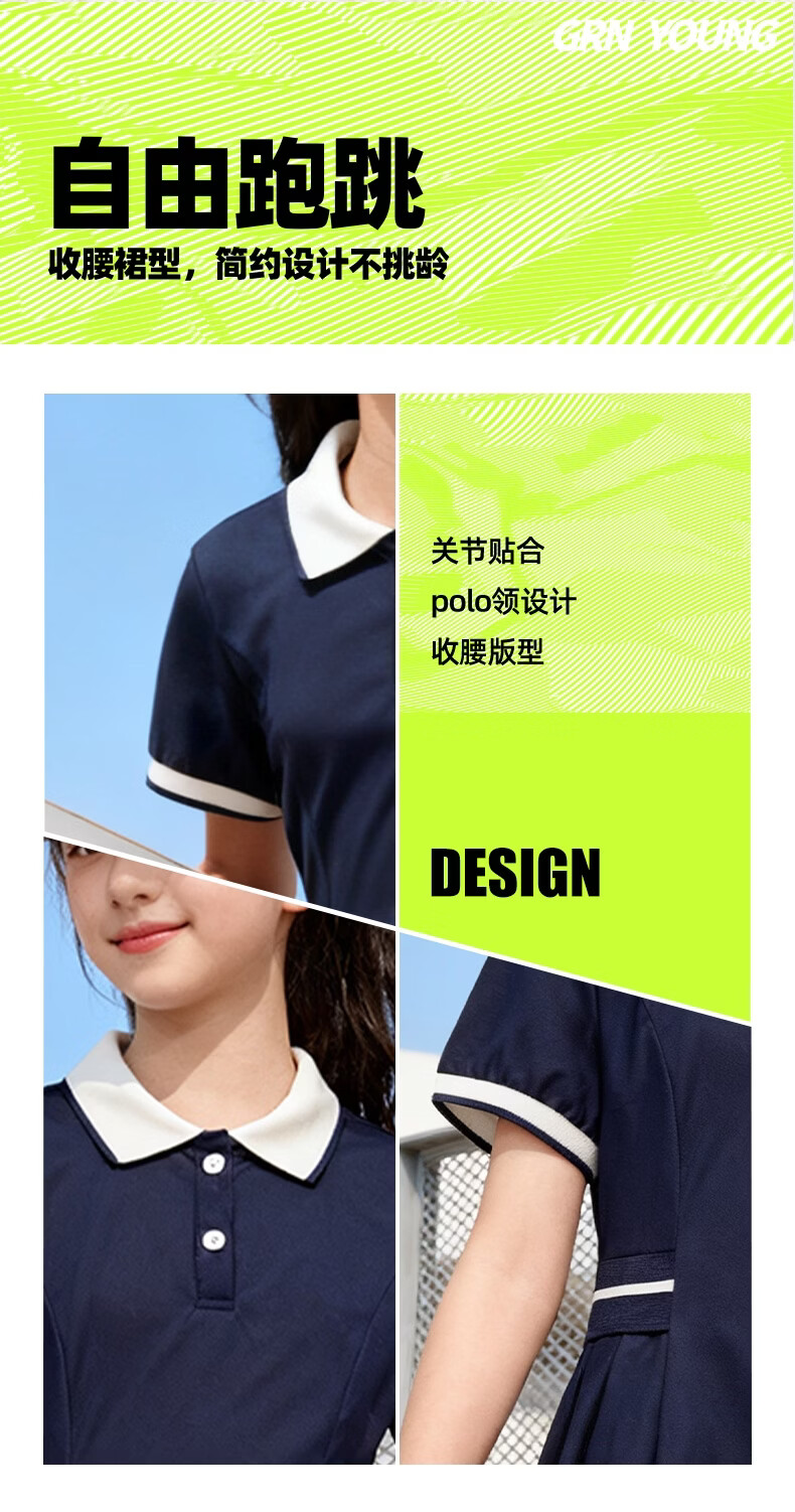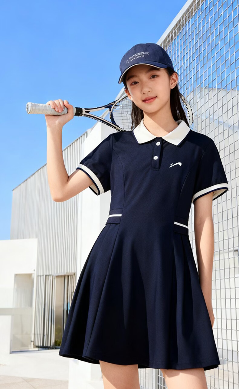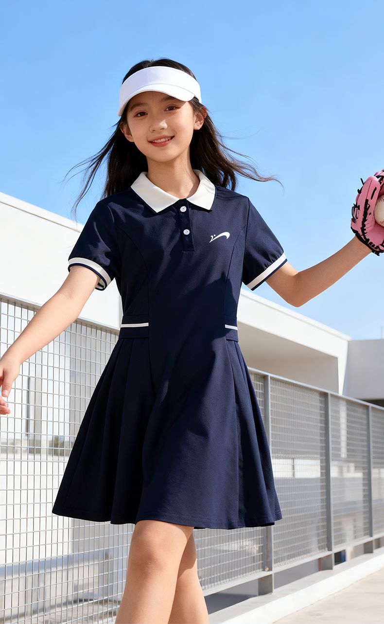 Guirenniao children's clothing, big children's fashionable versatile dress, sweet and cute skirt for girls, thin girl's summer polo skirt, navy blue/G Guirenniao white lettering film K 110