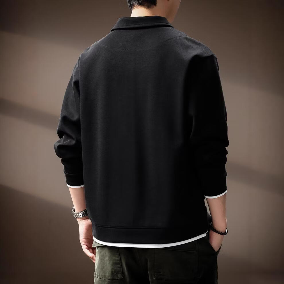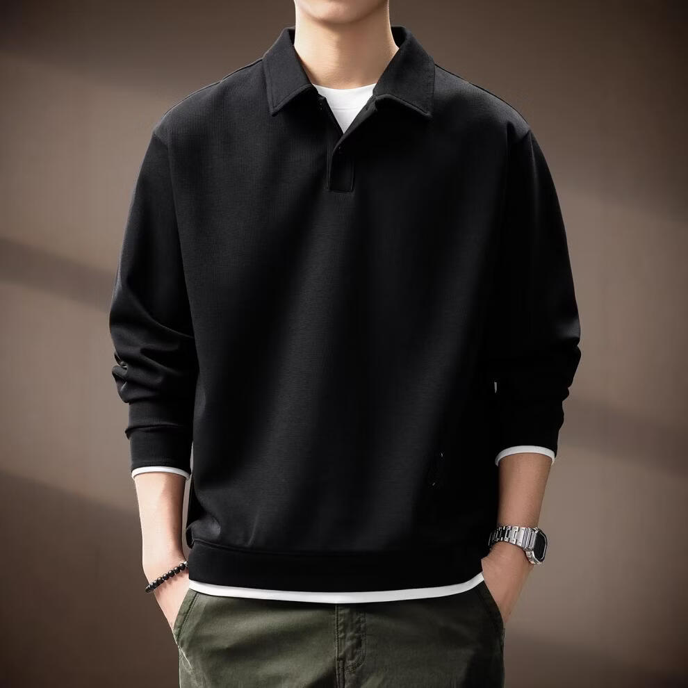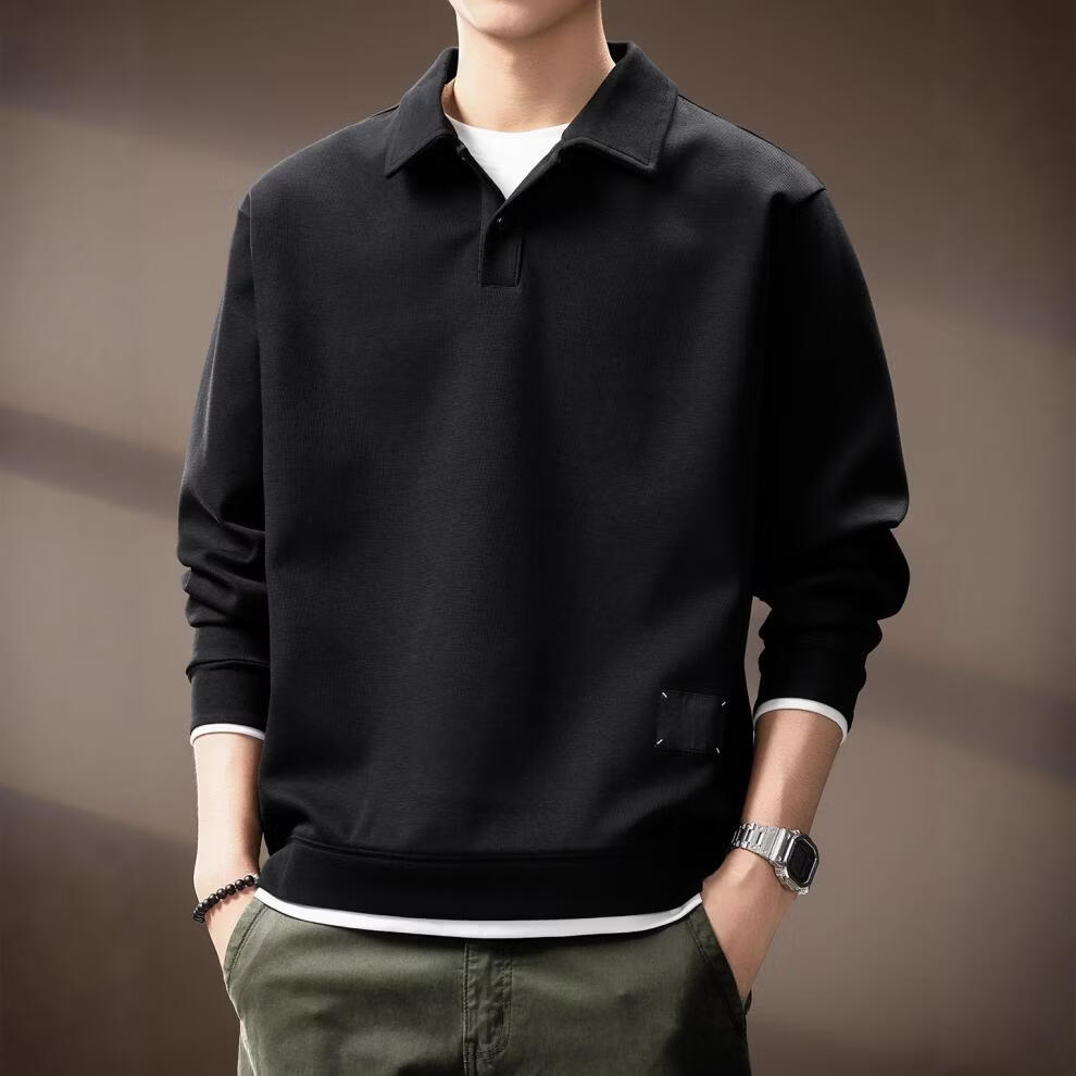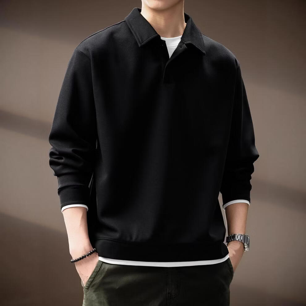 GSUE solid color heavyweight lapel sweatshirt for men 2026 spring and autumn new trendy loose long-sleeved Polo shirt for men black M suitable for 110-130Jin Jin equals 0.5 kg