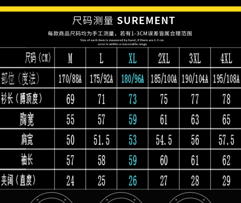 China (cm) 160-165/84-86 165-170 / 88-90 167-172 / 92-96 168-173 / 98-102 170-176 / 106-110