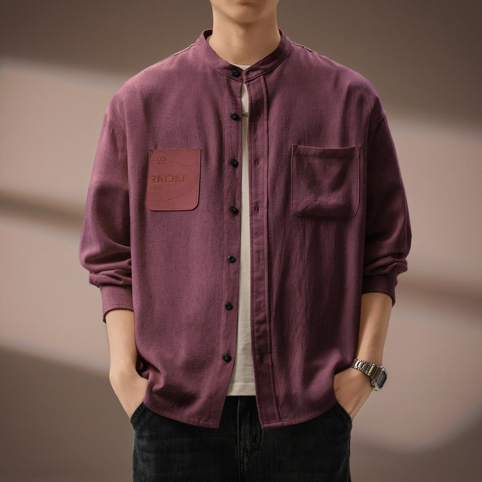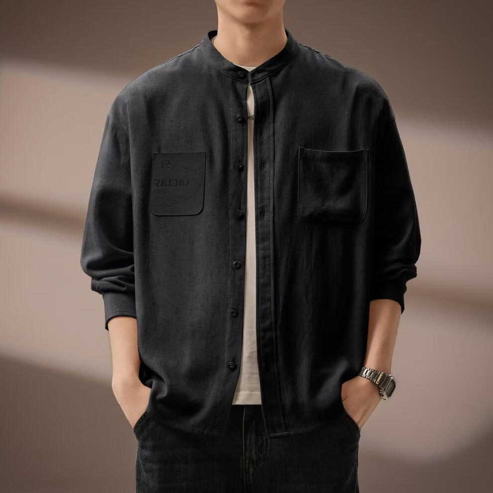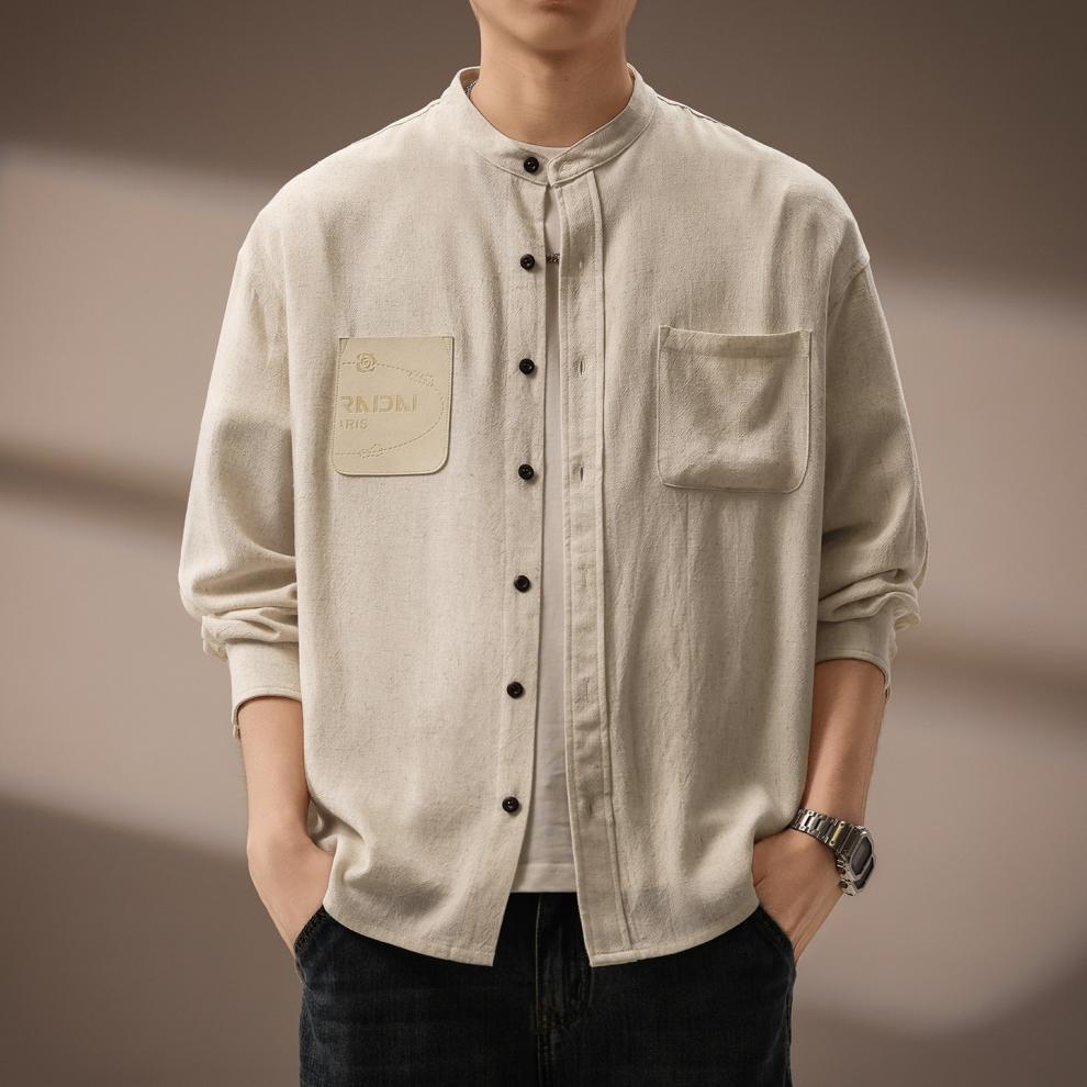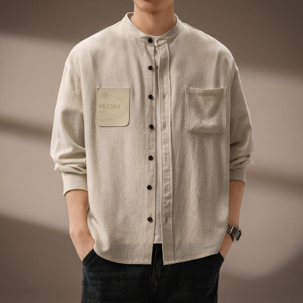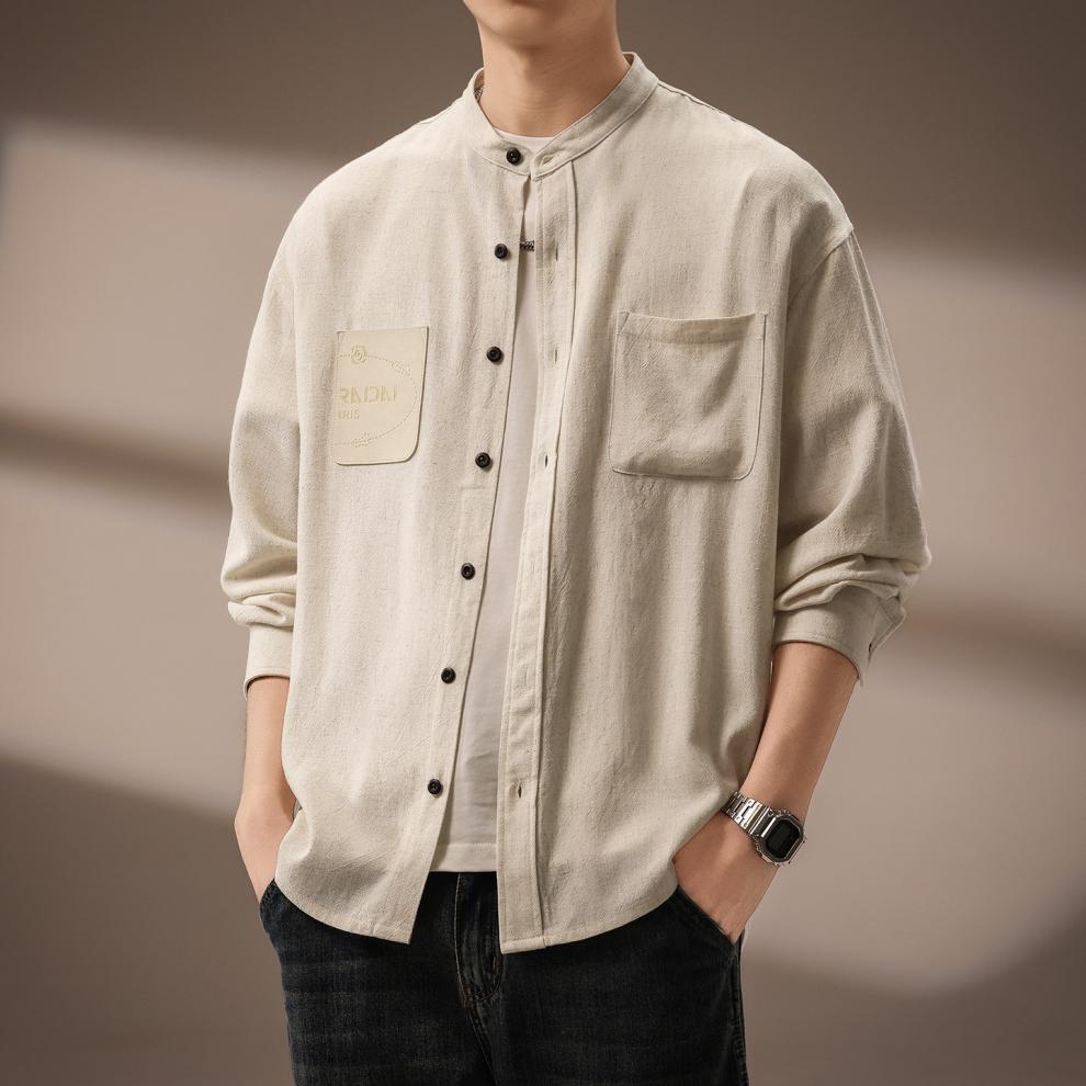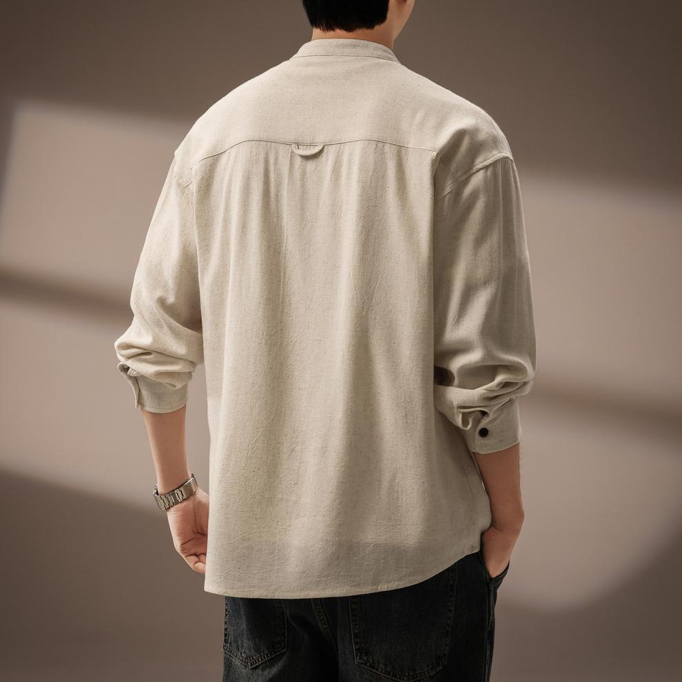 GSUE new Chinese style linen cardigan long-sleeved shirt men's spring and autumn new smart commuter stand-up collar retro shirt jacket Maben 4XL suitable for 210-230Jin Jin equals 0.5 kg