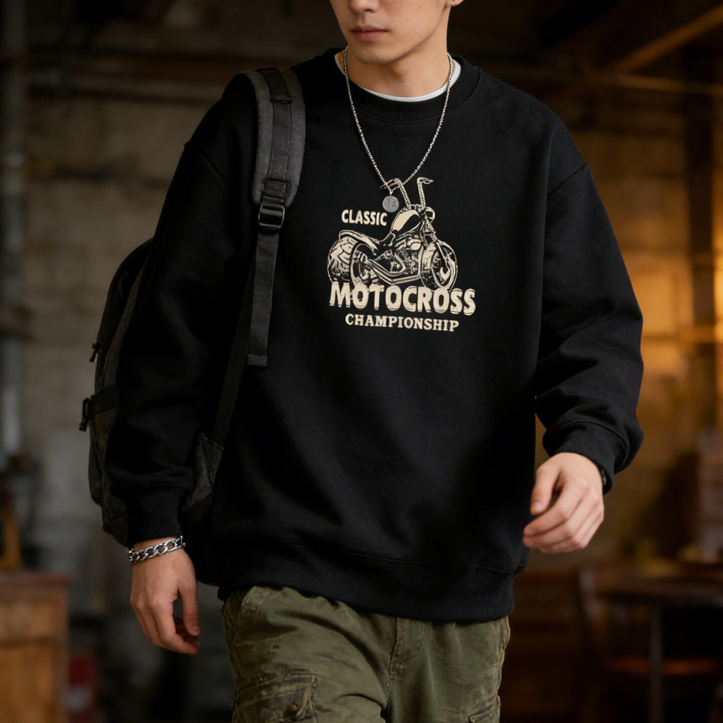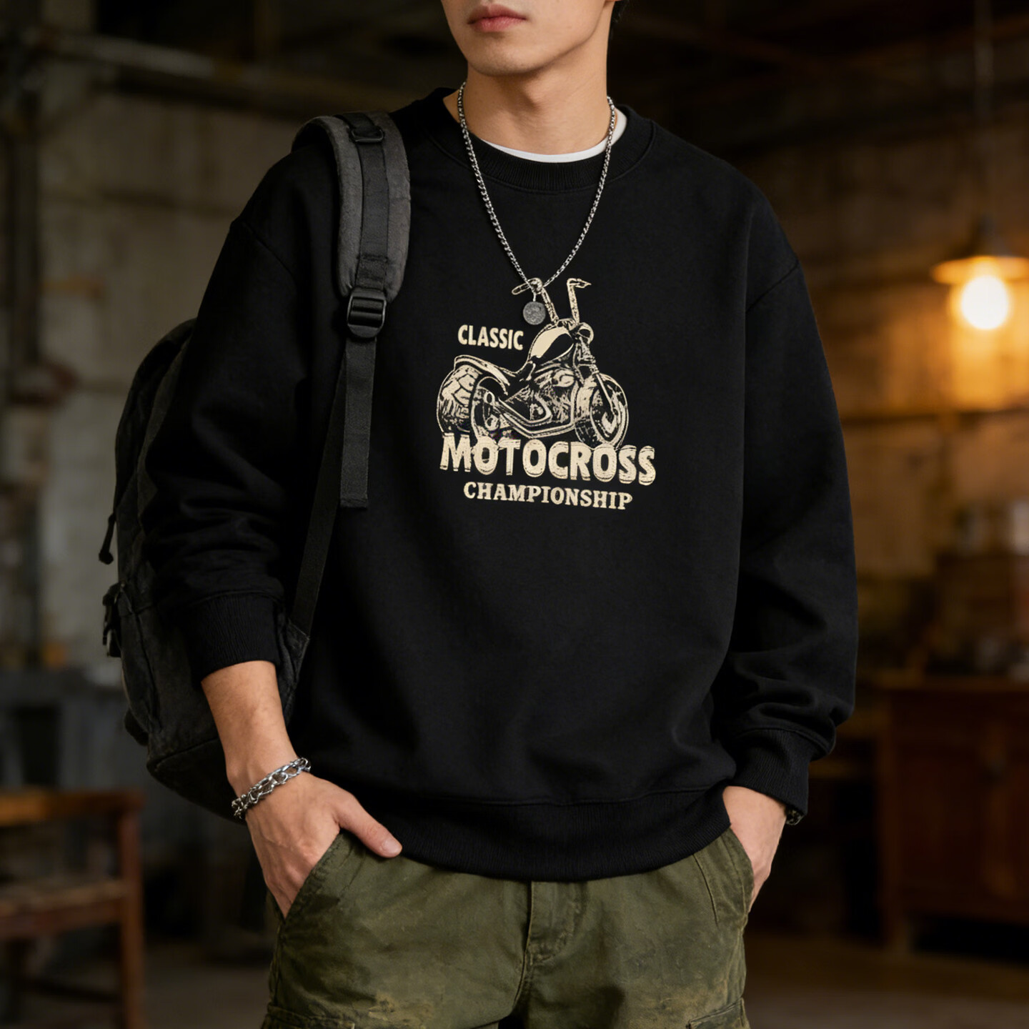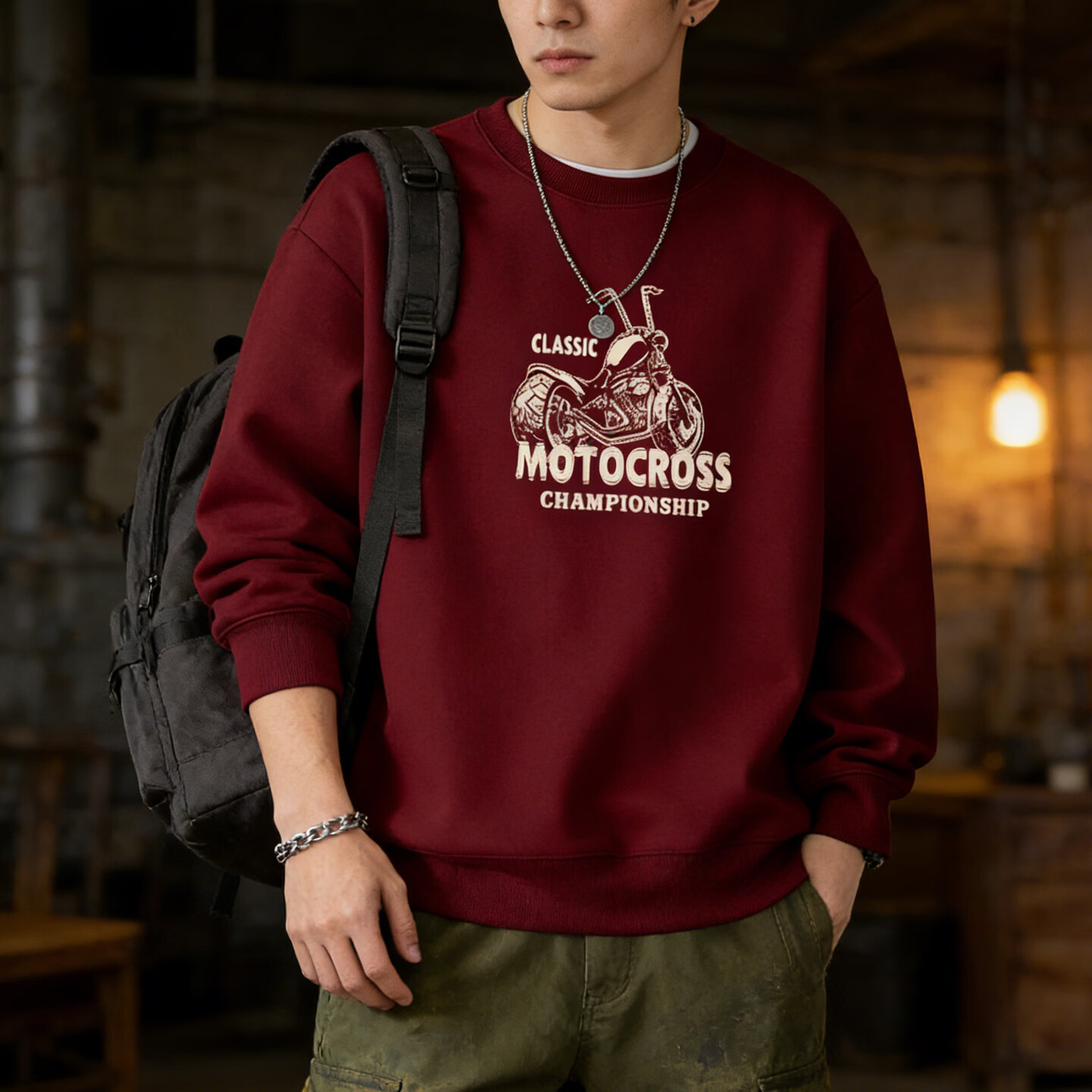 JEEP SPIRIT heavyweight American retro motorcycle print velvet sweatshirt men's loose casual long-sleeved round neck bottoming shirt top men red S (95-120Jin Jin equals 0.5 kg)