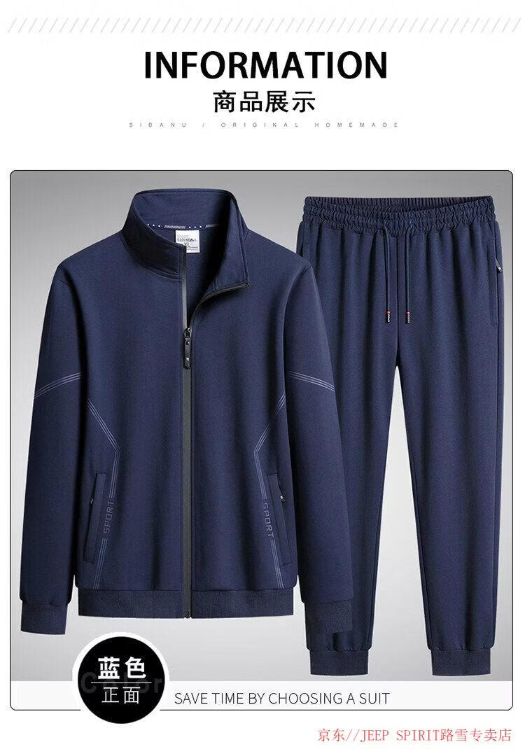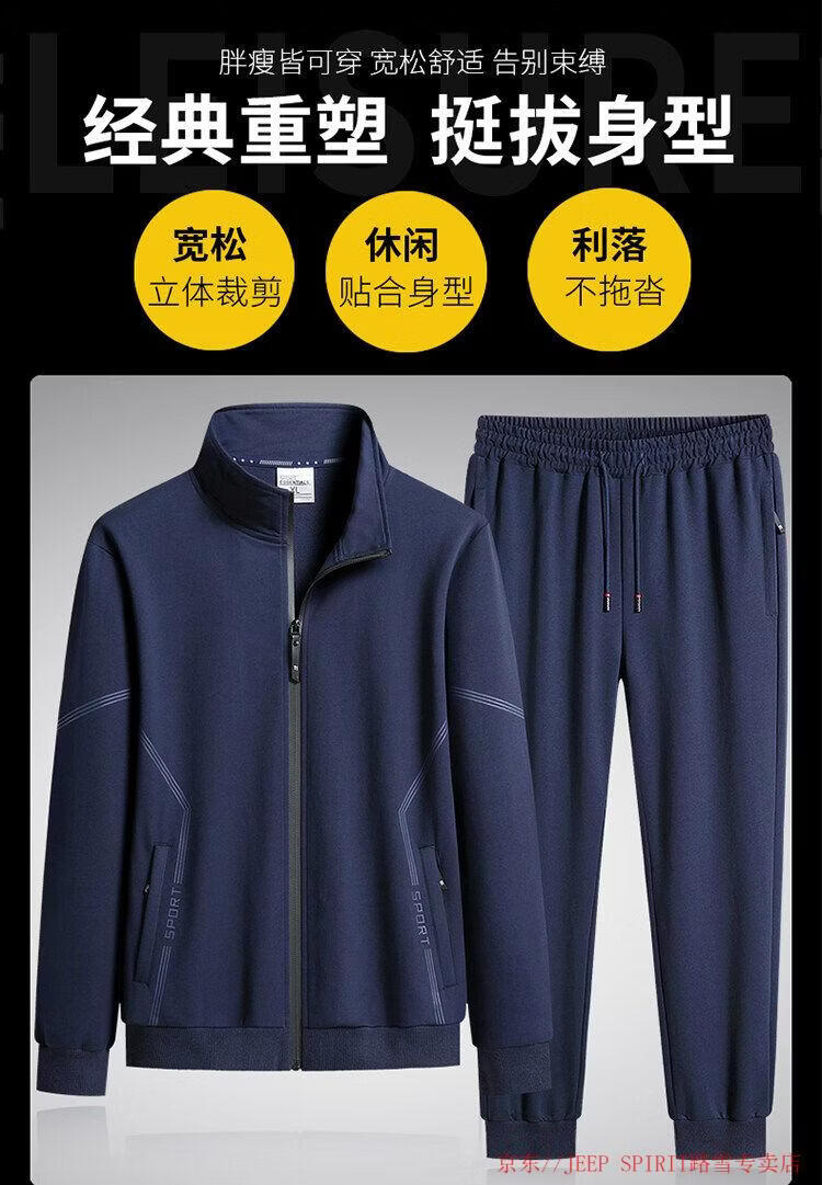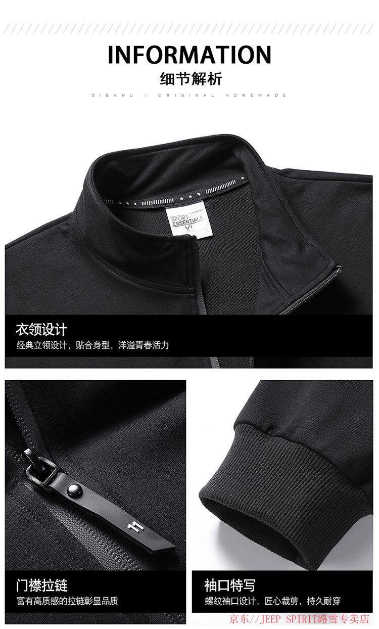 JEEP SPIRIT cotton casual sports suit men's business large size spring and autumn new stand-up collar cardigan jacket men's two-piece set B325-W3219 black leg bound spring and autumn style LM M 85-100Jin Jin equals 0.5 kg