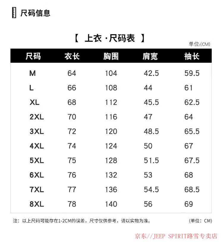 China (cm) 165 / 88-90 170 / 96-98 175 / 108-110 180 / 118-122 185 / 126-130