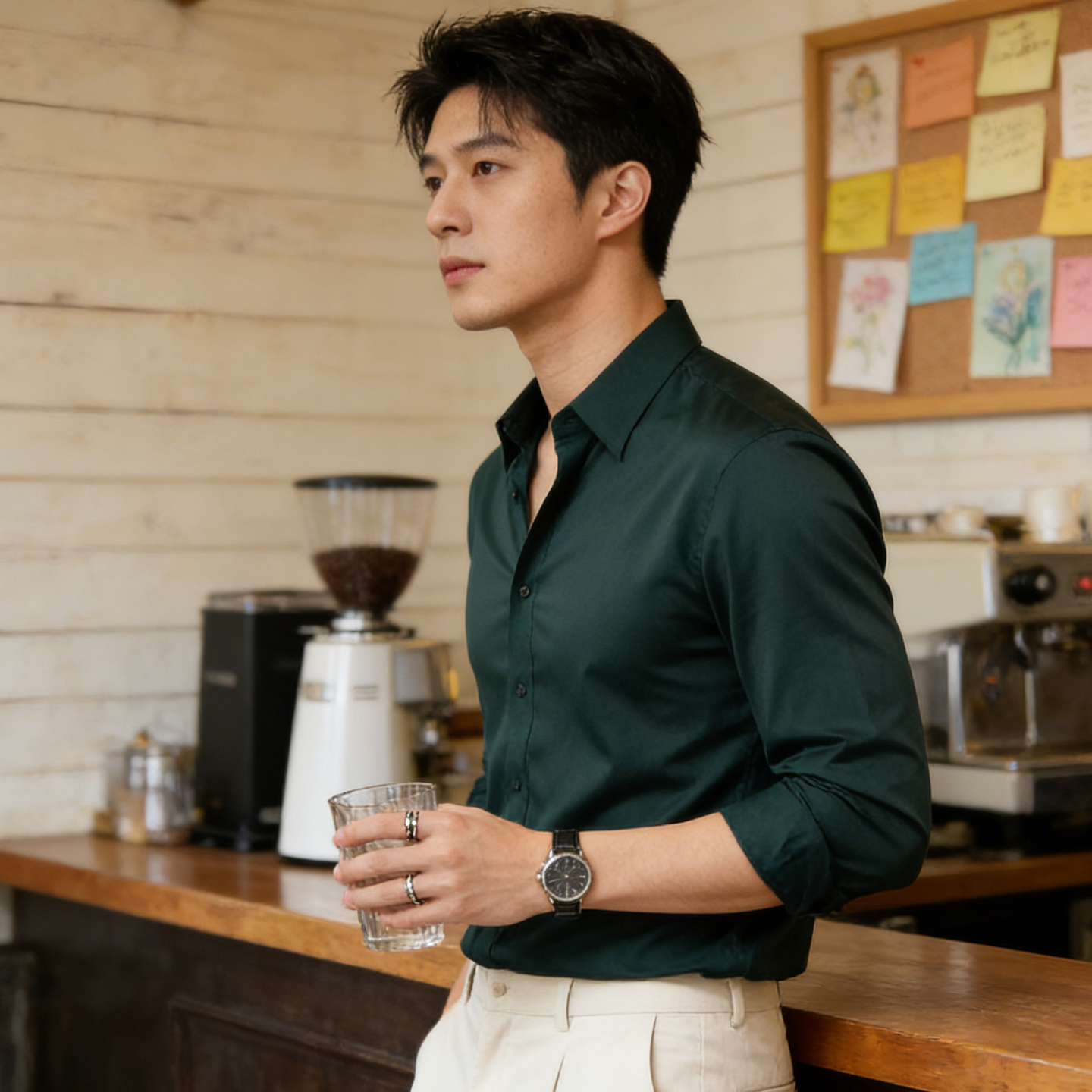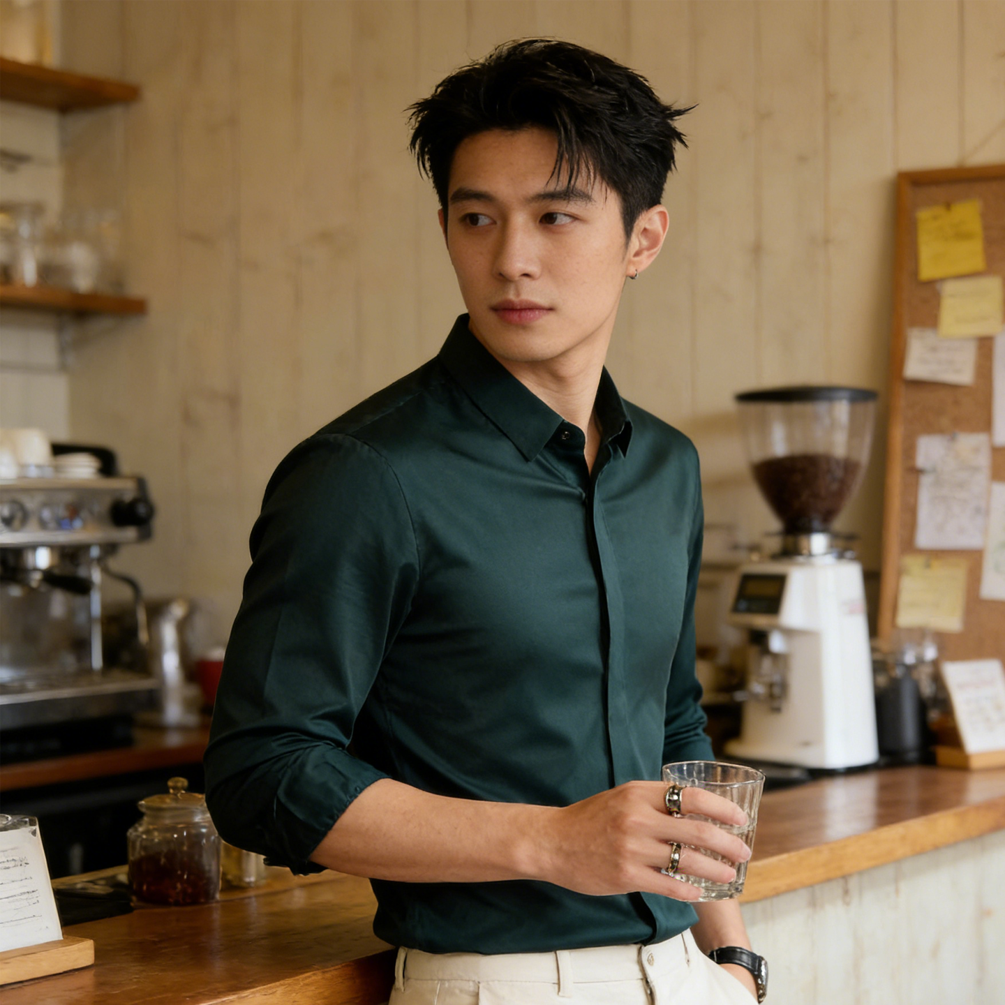 JEEP SPIRIT春秋长袖衬衫男士商务休闲衬衣修身免烫纯色职业正装工作服工装 绿色 M (165) 【90斤-110斤】