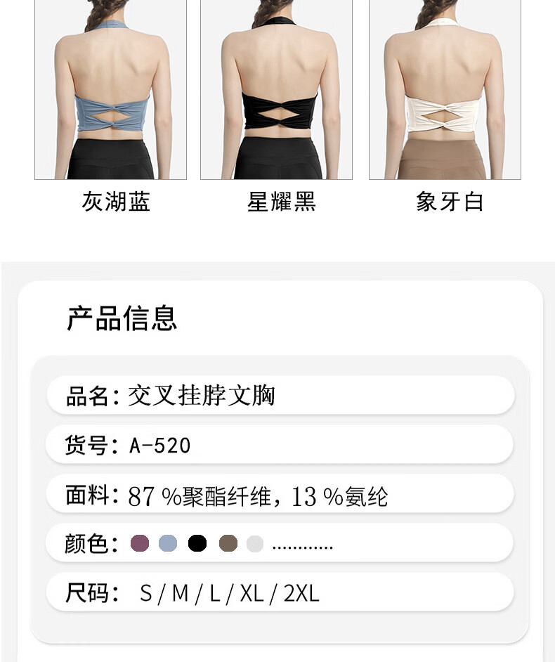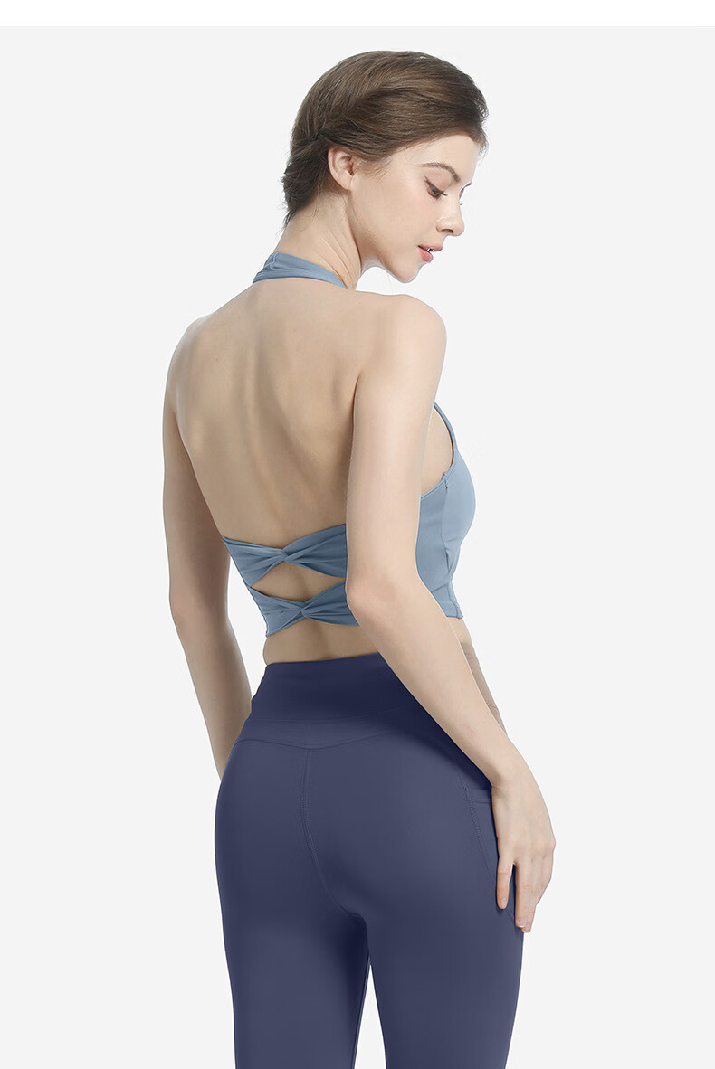 Yalu Sports Bra Women's Fitness Halter Double Cross Back Support Vest Style Tight Yoga Wear Bra Top Gray Lake Blue Bra M