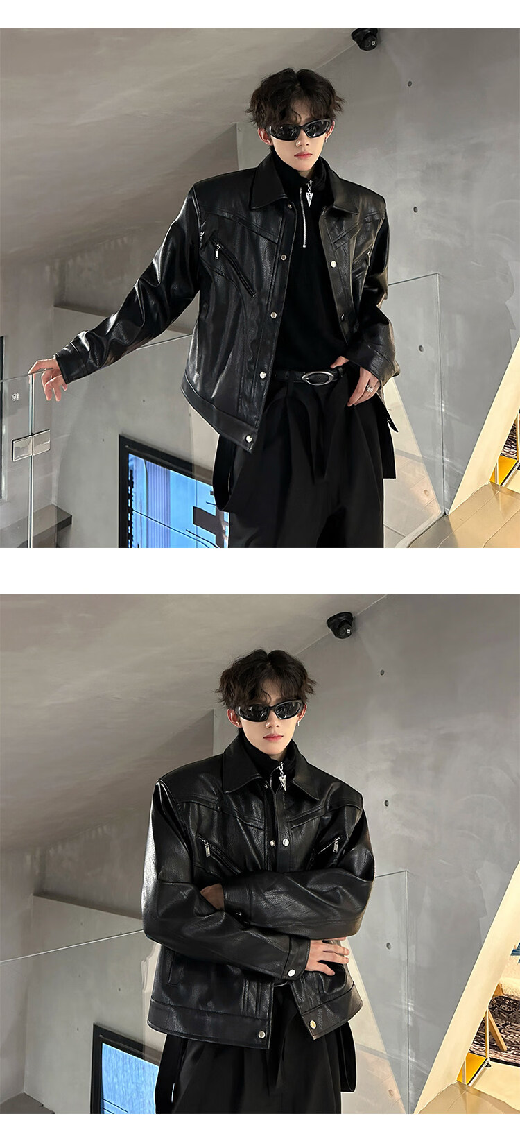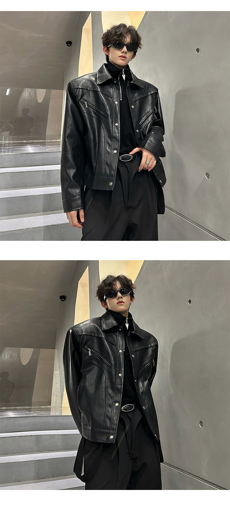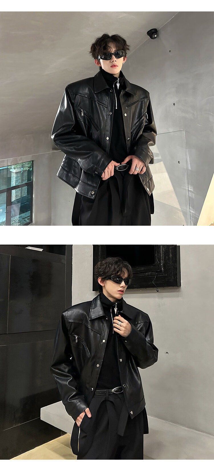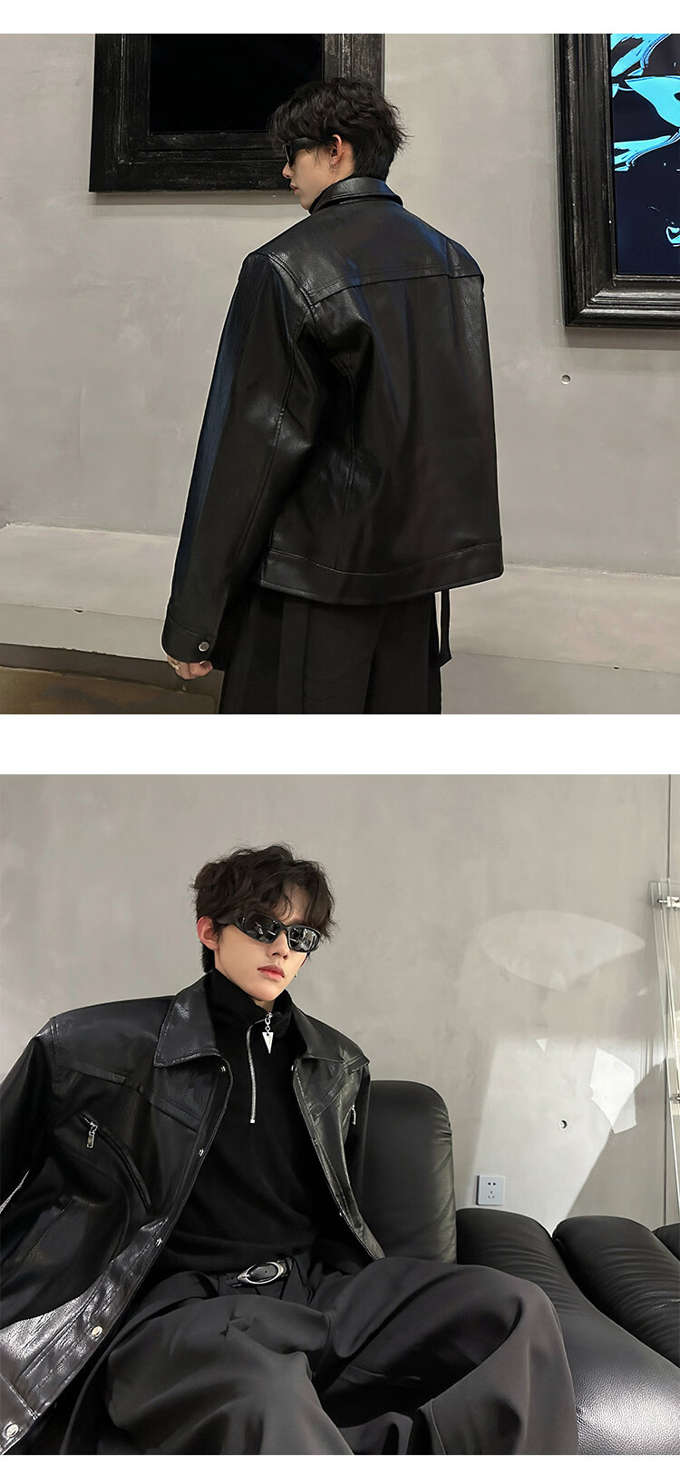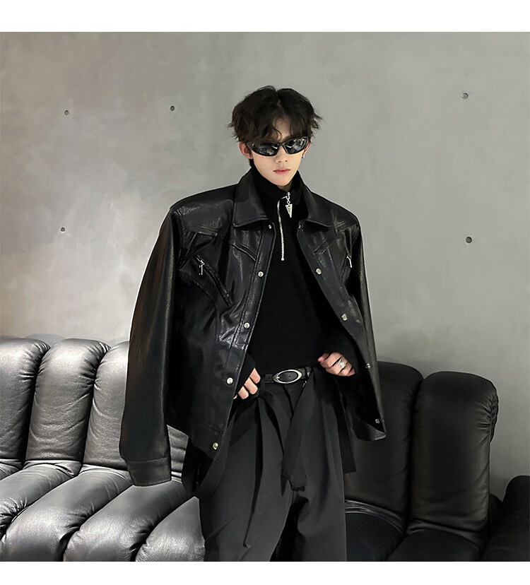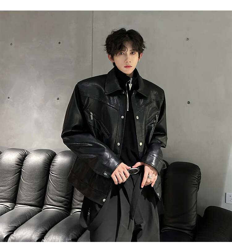 Autumn and winter niche deconstructed handsome motorcycle top jacket men's retro trendy brand PU leather short jacket black M