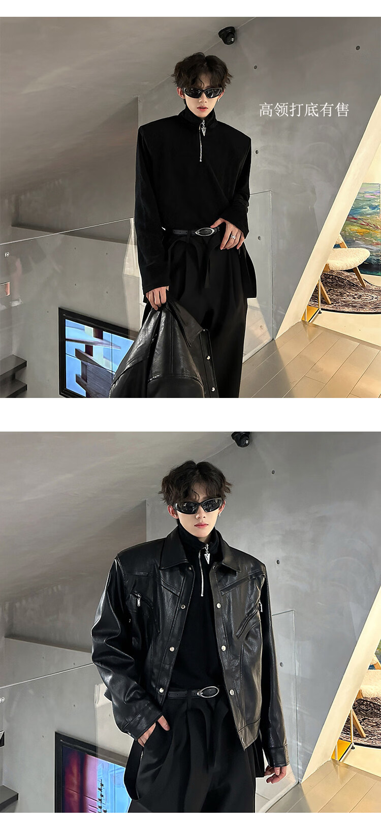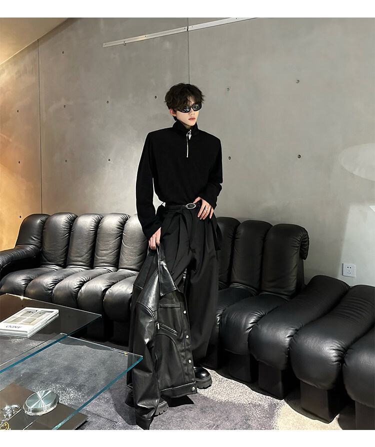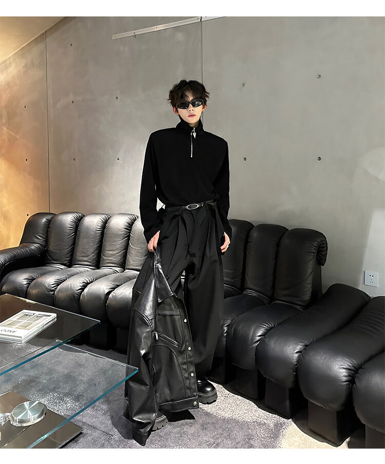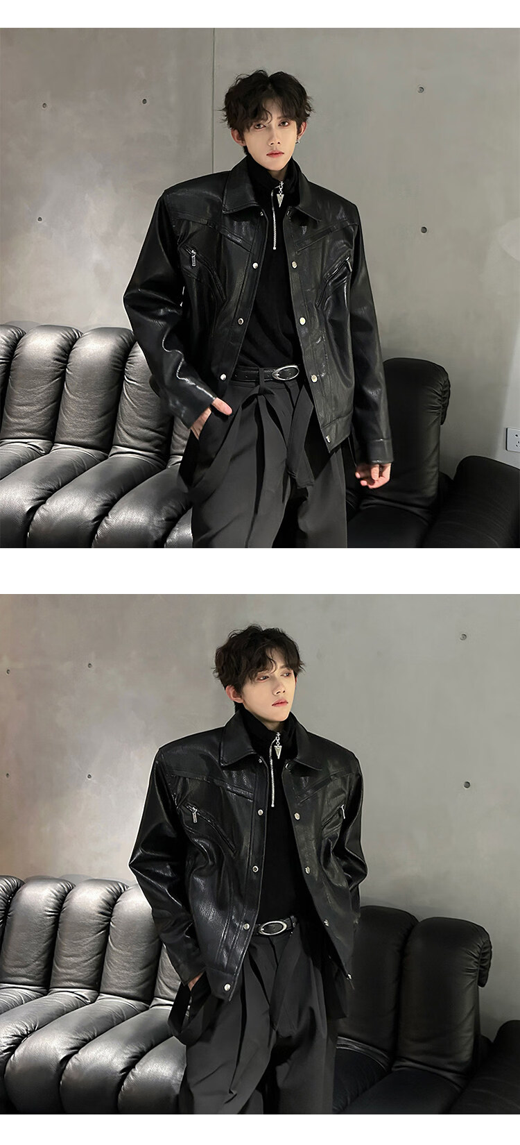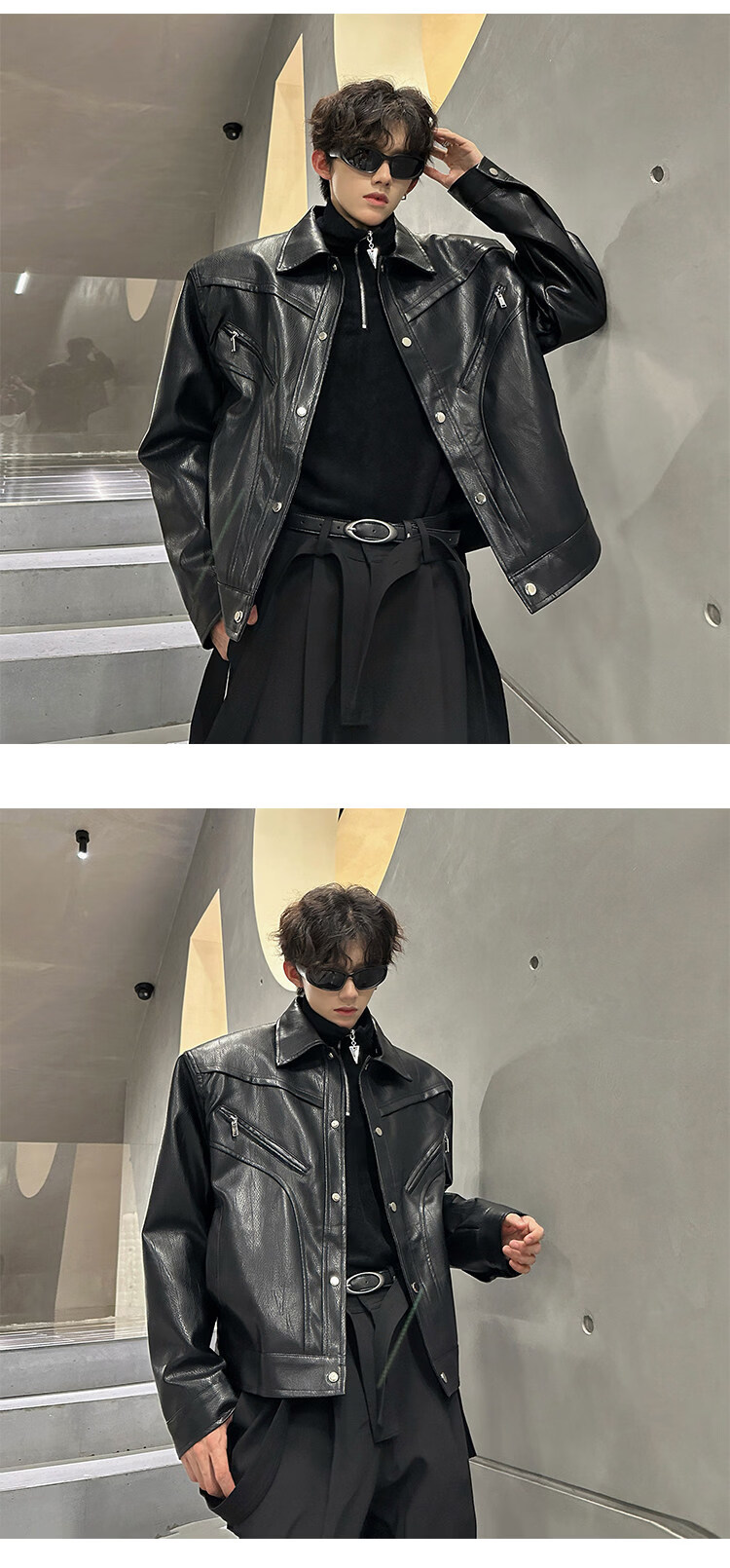 Autumn and winter niche deconstructed handsome motorcycle top jacket men's retro trendy brand PU leather short jacket black M