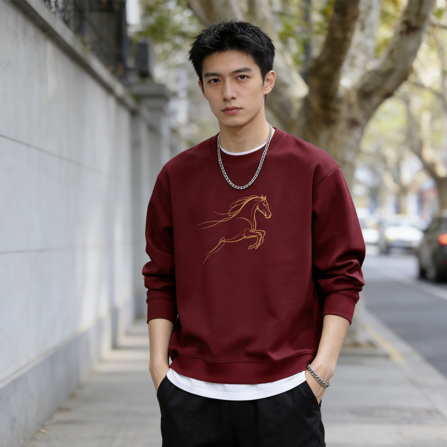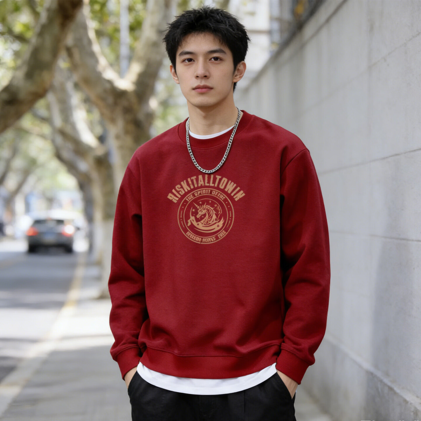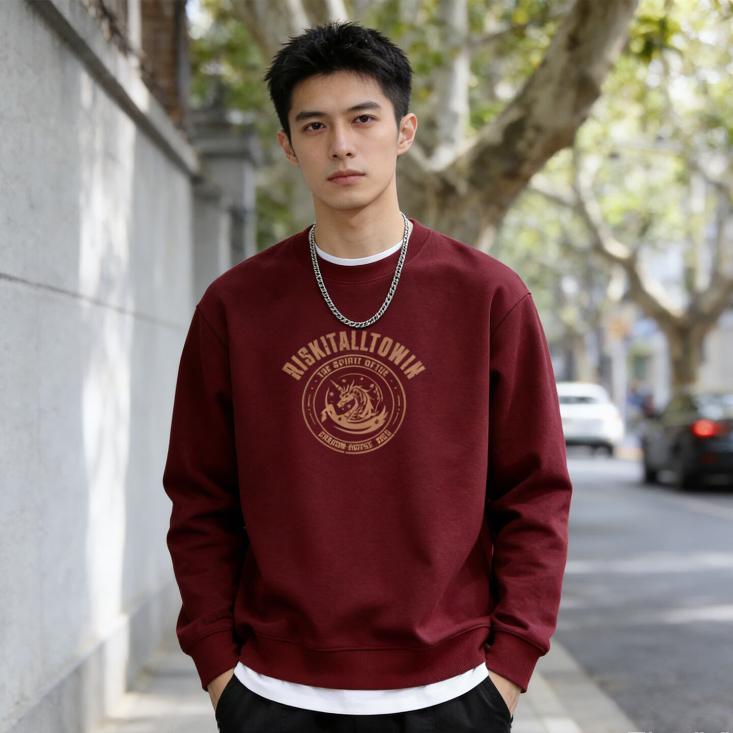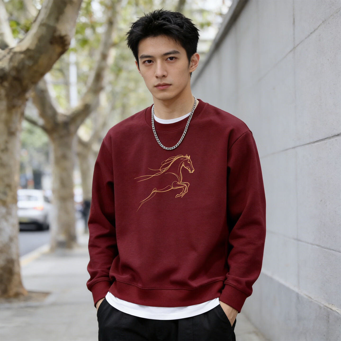 JEEP SPIRIT美式复古卫衣男宽松加绒保暖圆领套头衫2026春季休闲打底衫 酒红色(1) S 95-120斤