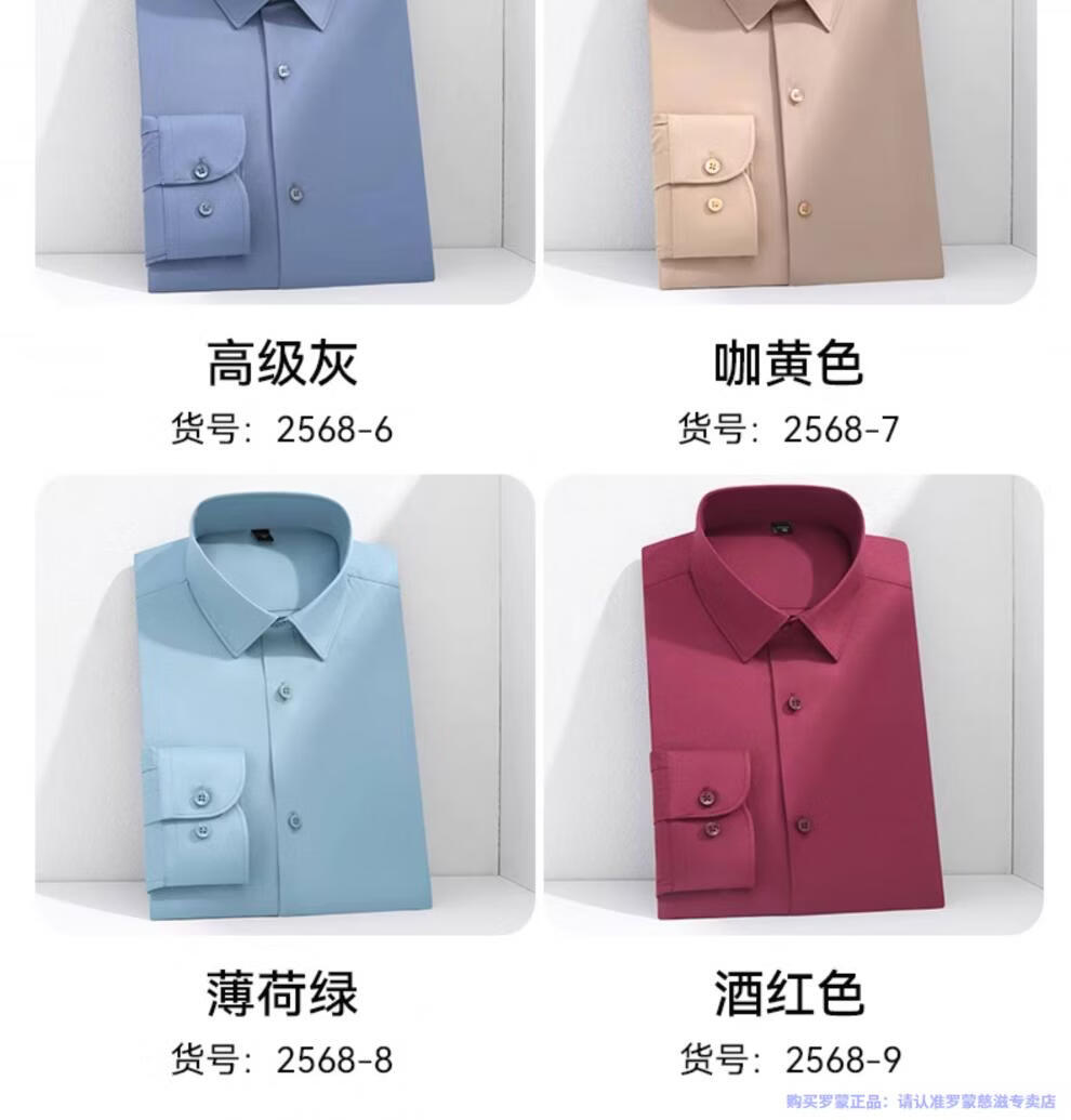 ROMON mulberry silk champagne color long-sleeved shirt for young men, drapey, iron-free stretch shirt, men's business anti-wrinkle inch shirt, large size, light gray, long 2568-12 45 Recommended 190-200 Jin Jin is equal to 0.5 kg