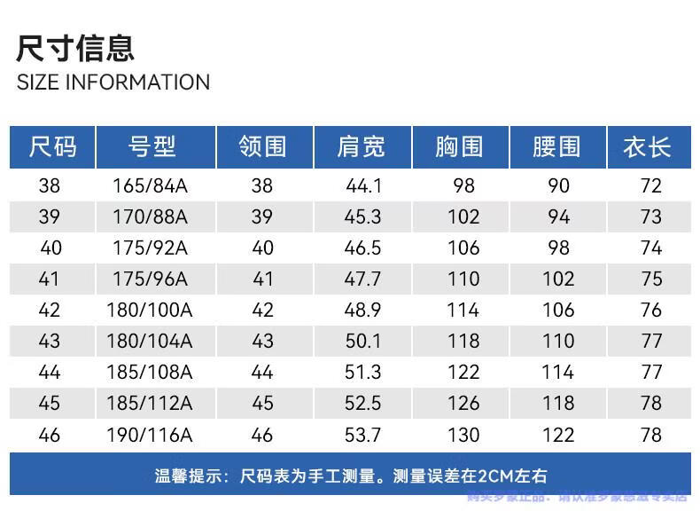 China(cm) 72-76 76-81 81-87 87-93 93-98