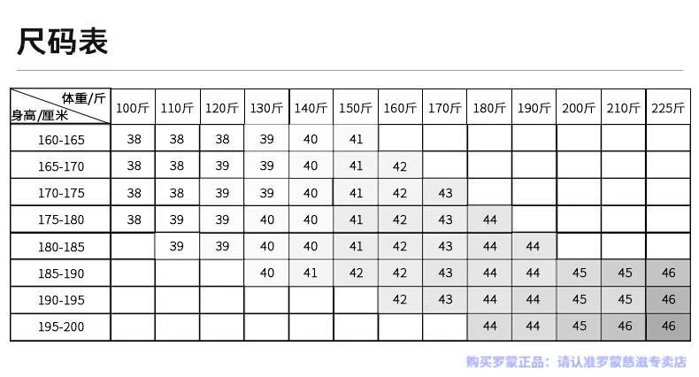 China (cm) 165 / 88-90 170 / 96-98 175 / 108-110 180 / 118-122 185 / 126-130