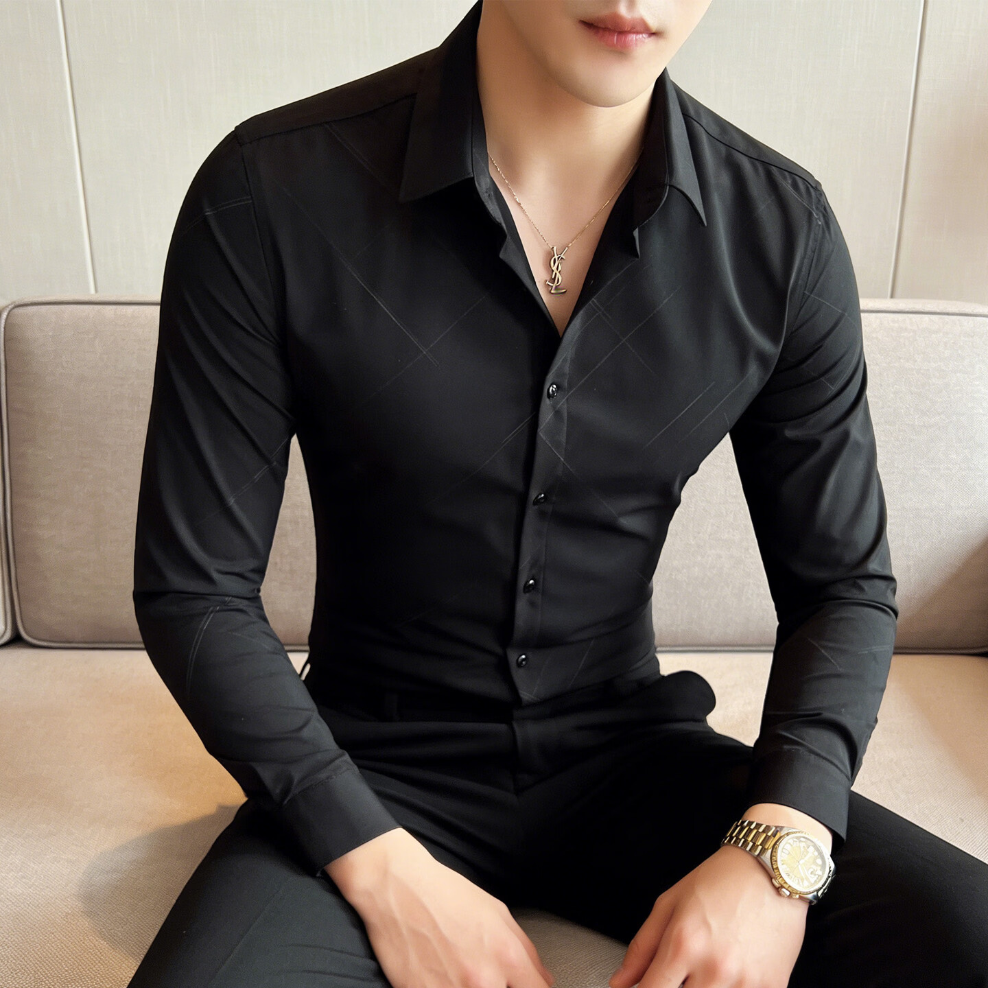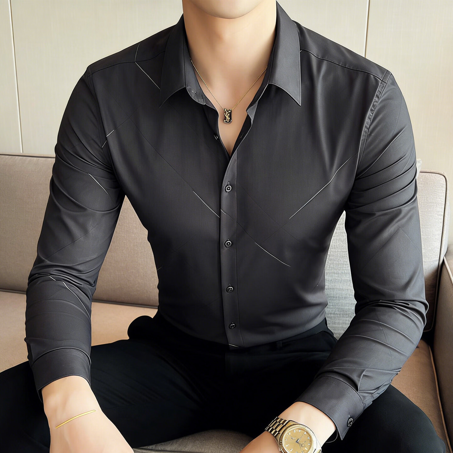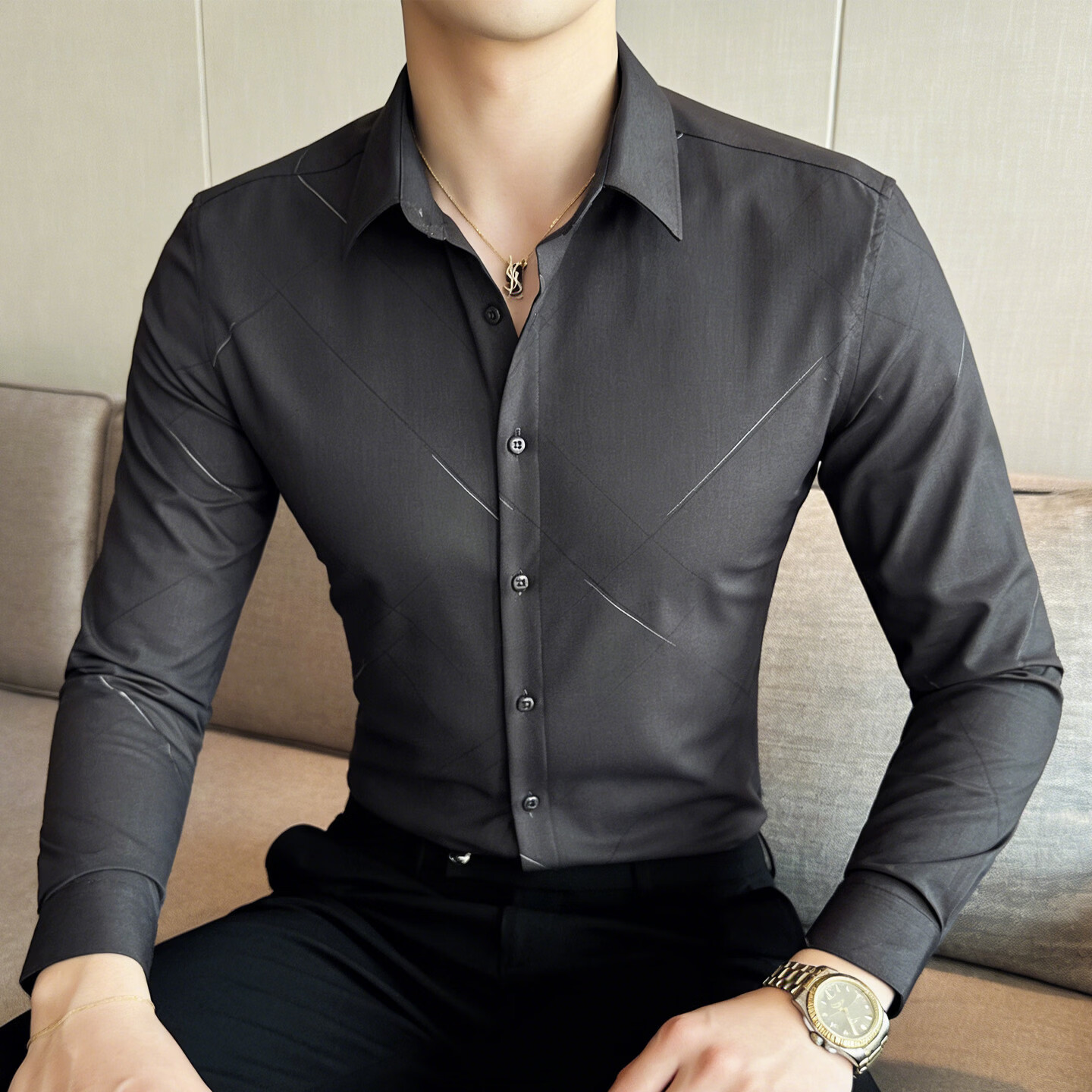 JEEP SPIRIT solid color shirt men's long-sleeved shirt business slim-fit iron-free anti-wrinkle casual top 2026 spring bottoming shirt gray M (165) 90Jin Jin is equal to 0.5kg -110Jin Jin is equal to 0.5kg