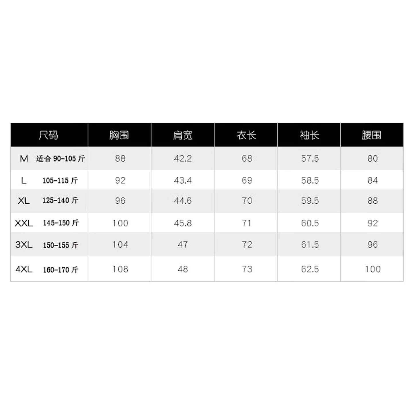 China (cm) 160-165/84-86 165-170 / 88-90 167-172 / 92-96 168-173 / 98-102 170-176 / 106-110