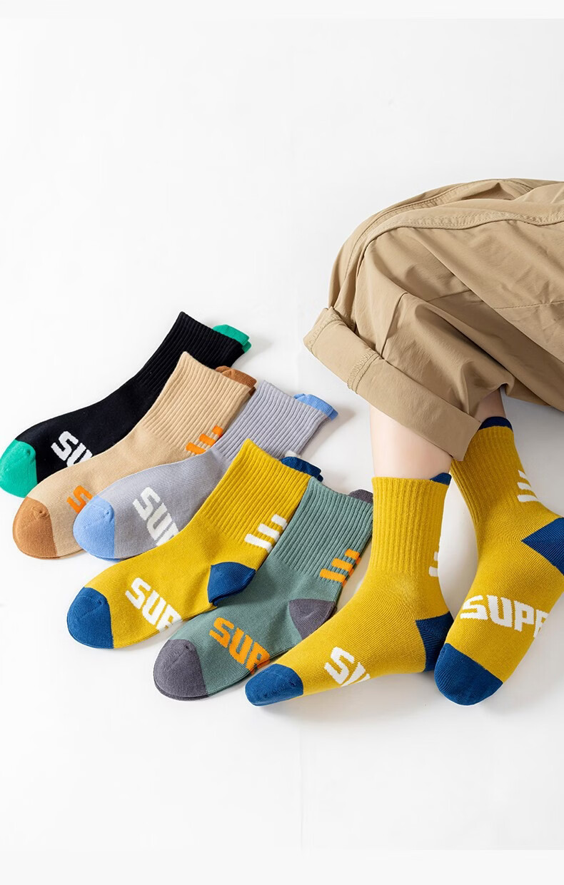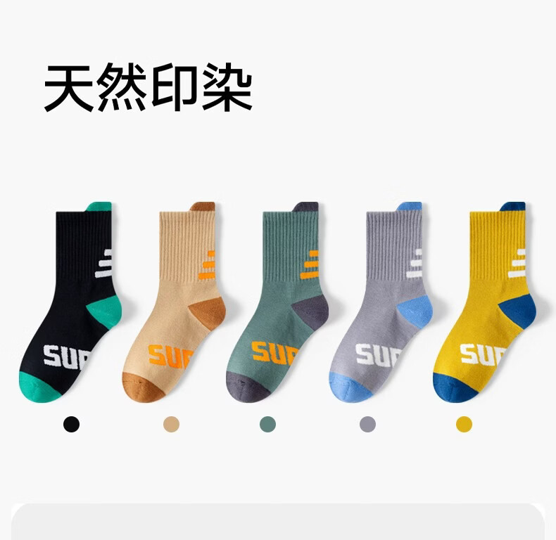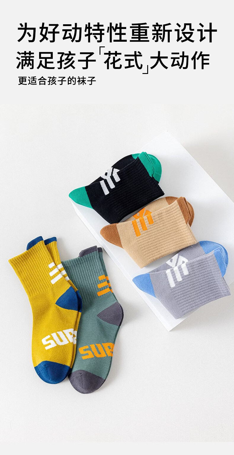 MiiOW Children's Socks 2026 Spring and Summer New Boneless Student Socks Middle-aged Boys Cotton Socks Vibrant New Course 5 pairs in total 12 years old and above 2XL (foot length 23-26cm)