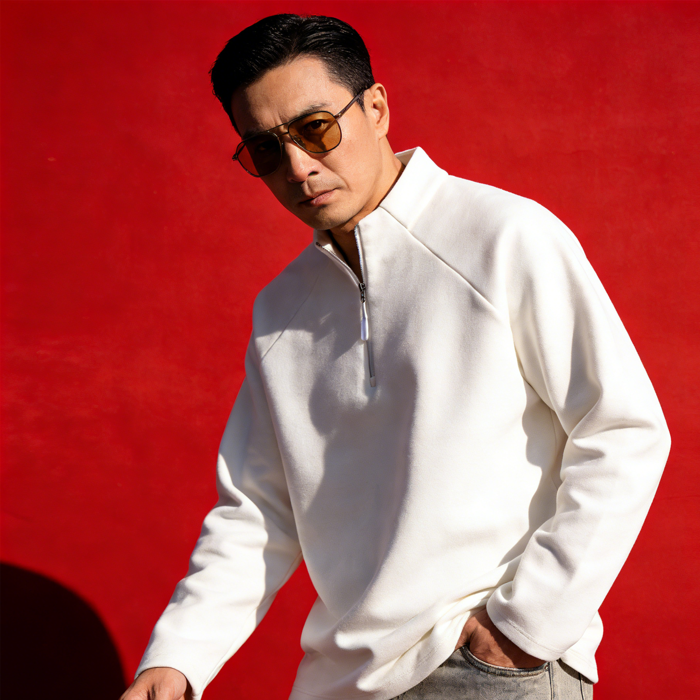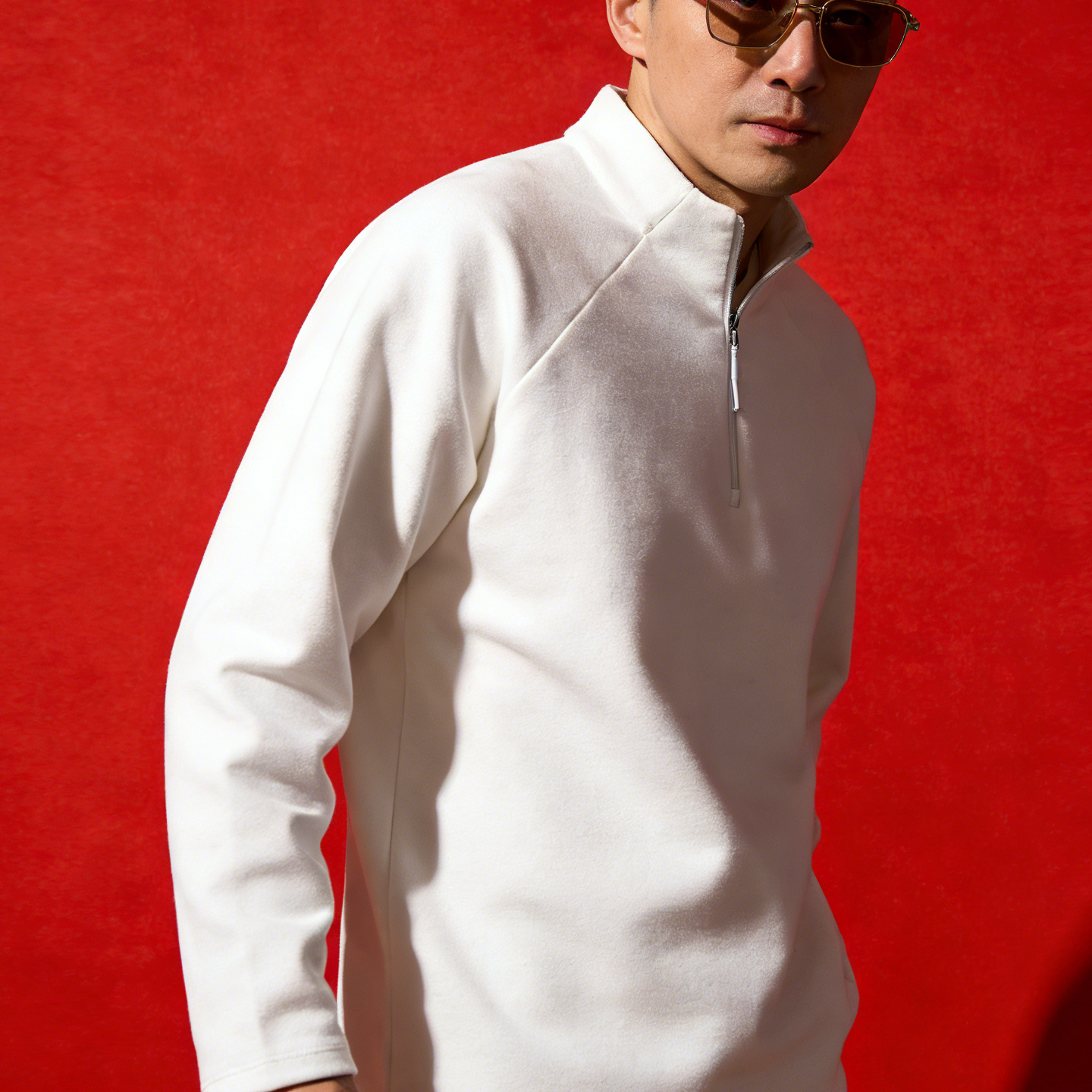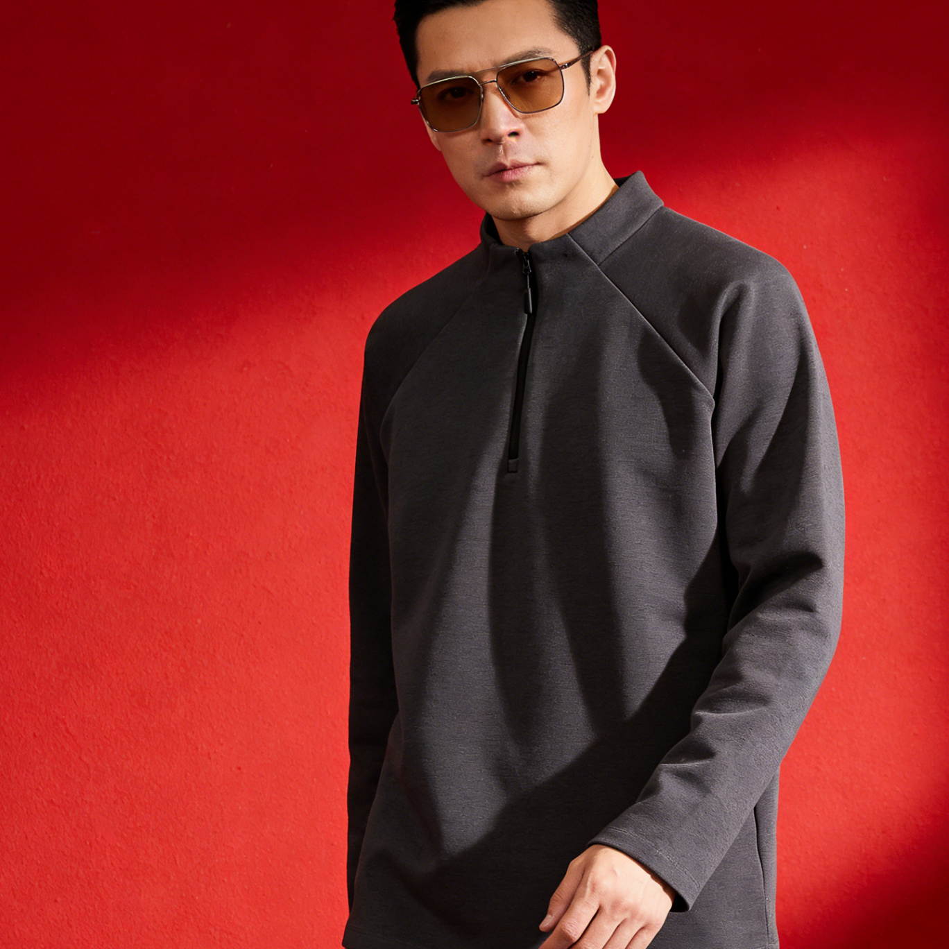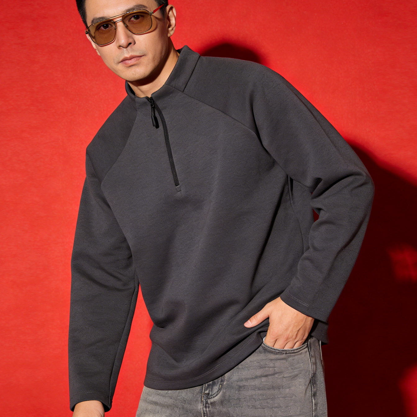 JEEP SPIRIT Primavera 2026 Verano Nuevo Cuello Alto Media Cremallera Sudadera Deportiva Suelta Jersey para Hombre Camisa de Manga Larga Negro S