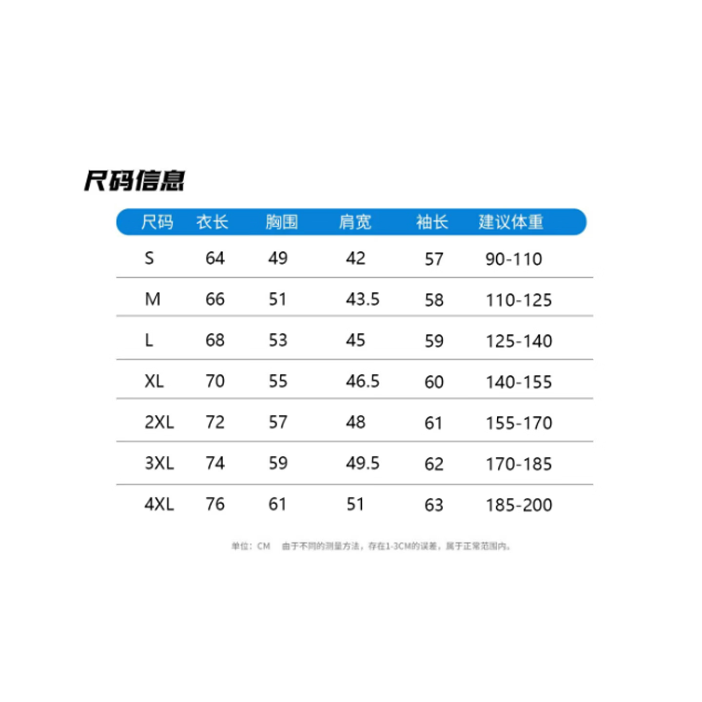 China(cm) 72-76 76-81 81-87 87-93 93-98