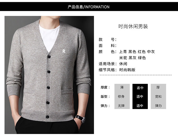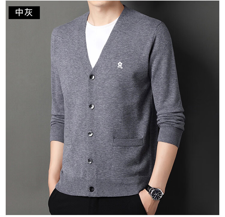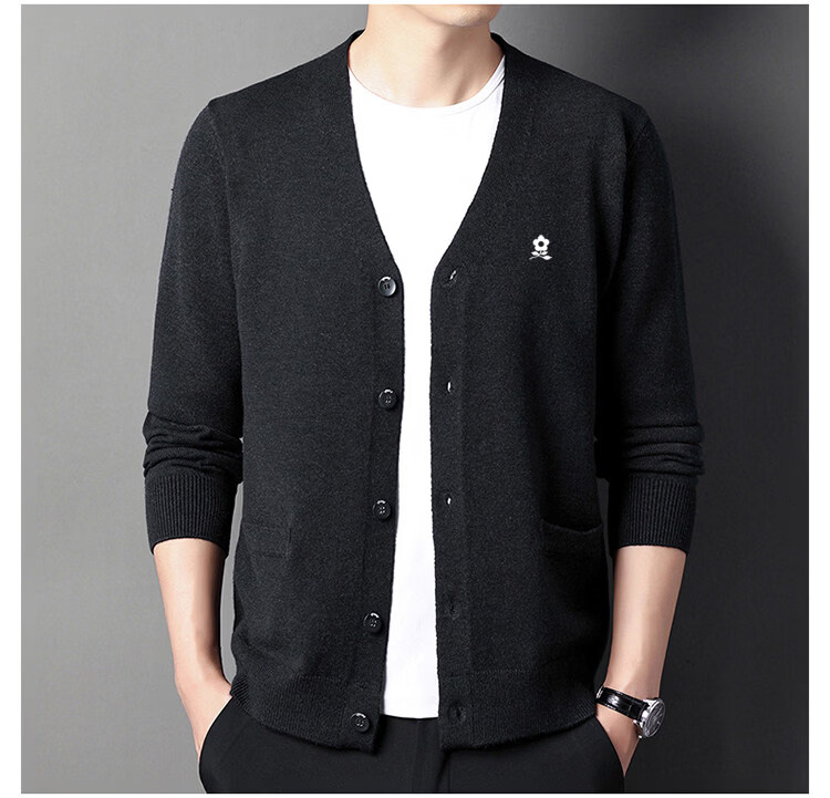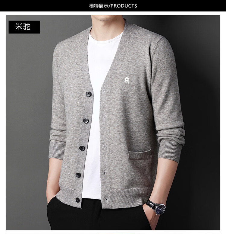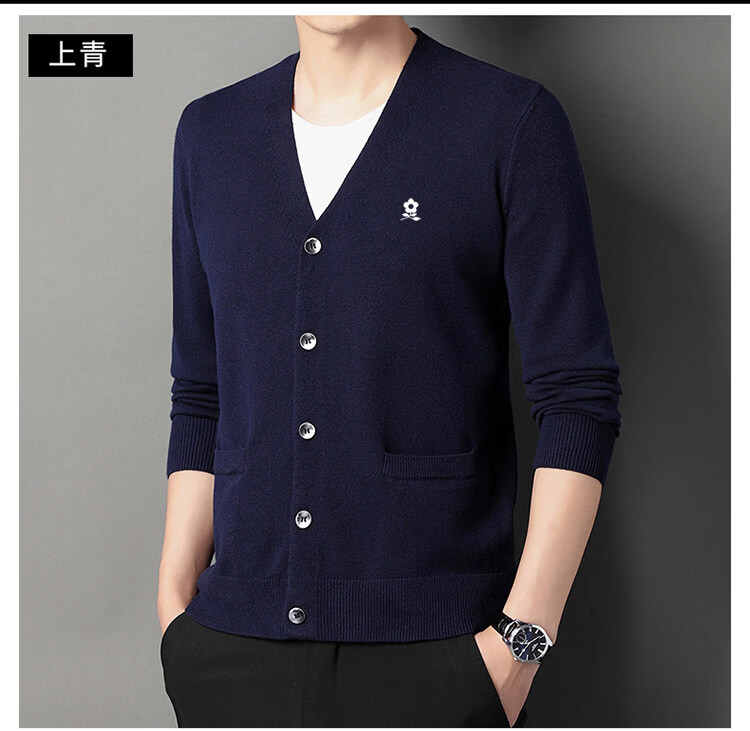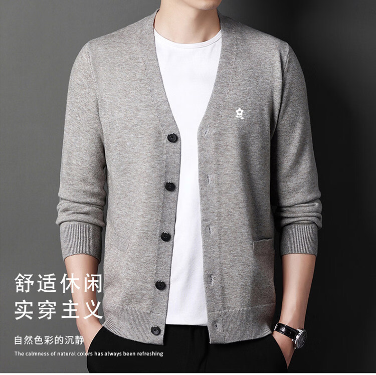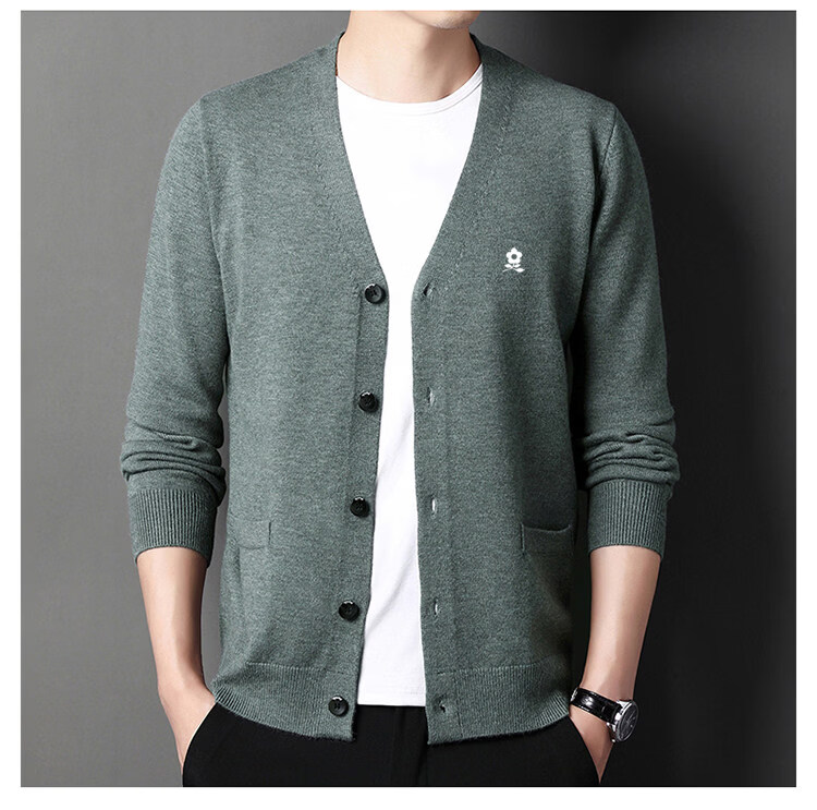 MONTAGUT cardigan sweater for men, middle-aged and elderly men, spring business wool V-neck cardigan, casual jacket, trendy Shangqing M 165 recommended 100-120 Jin Jin equals 0.5 kg