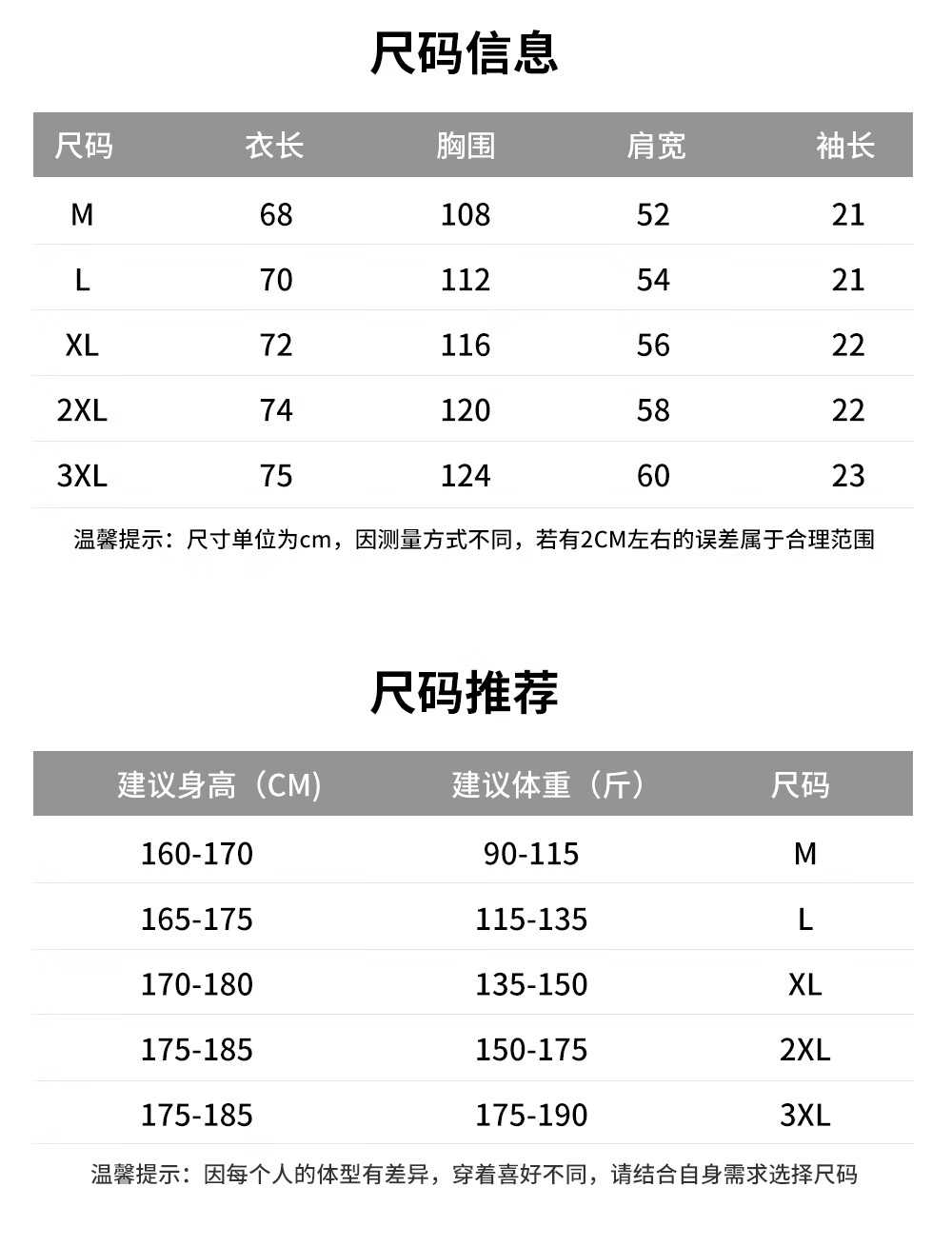 China (cm) 160-165/84-86 165-170 / 88-90 167-172 / 92-96 168-173 / 98-102 170-176 / 106-110