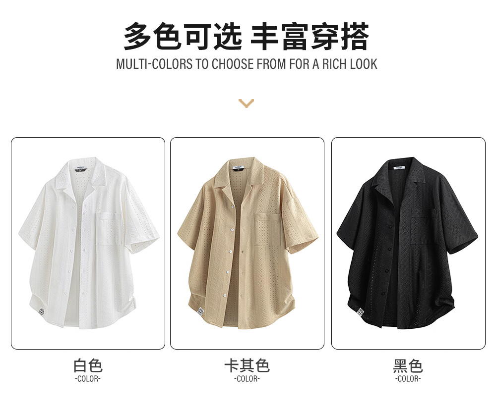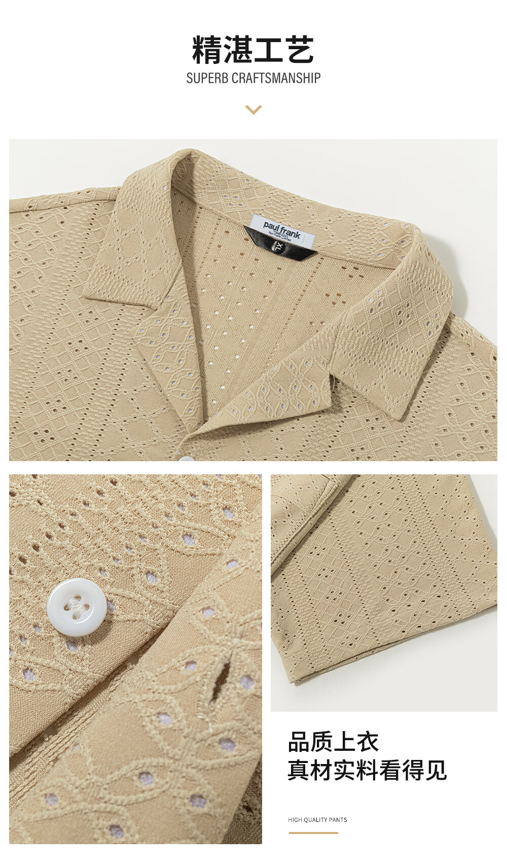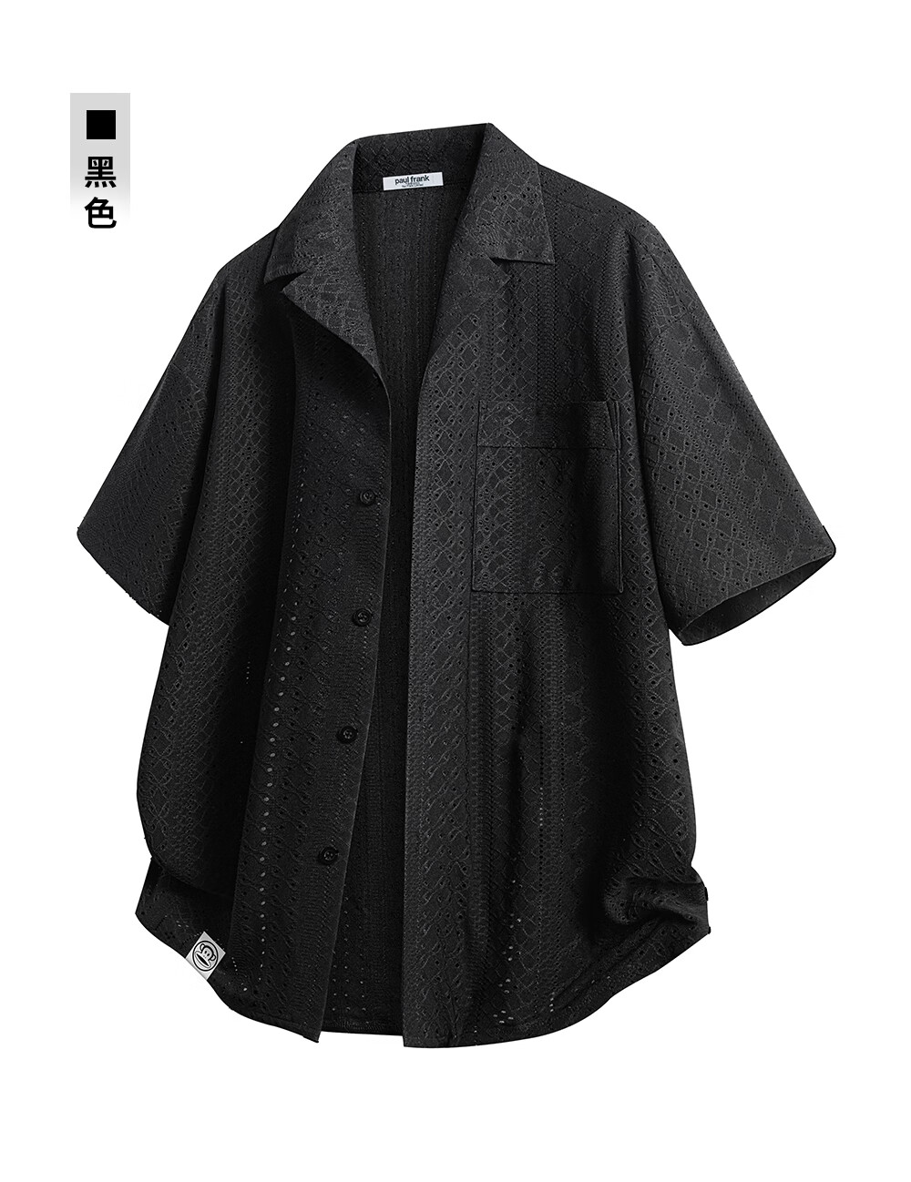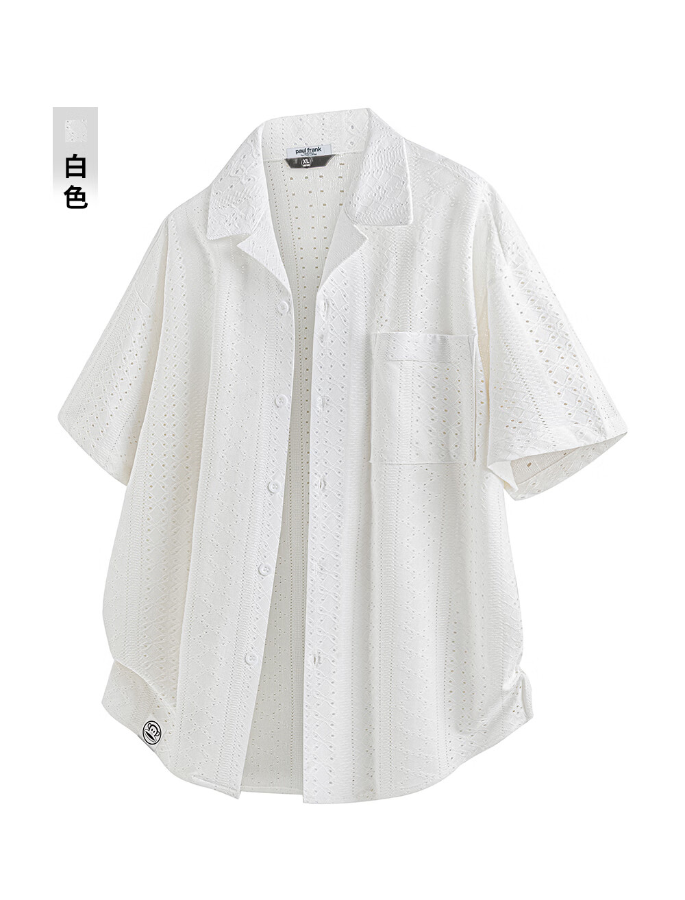 Big mouth monkey (paul frank) old money style hollow short-sleeved shirt men's summer new trendy brand loose design casual versatile shirt jacket khaki ice silk thin section M recommended 90-110Jin Jin equals 0.5 kg