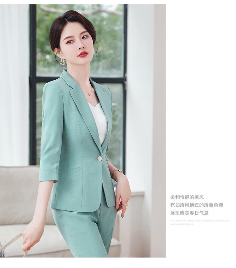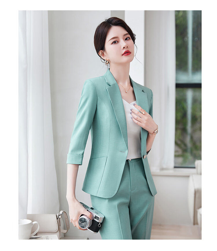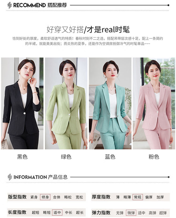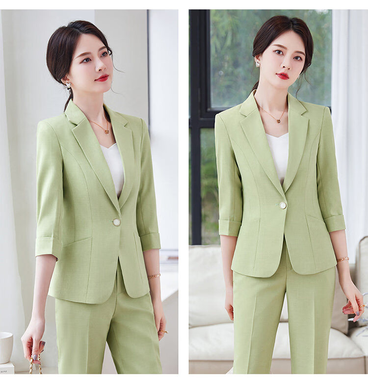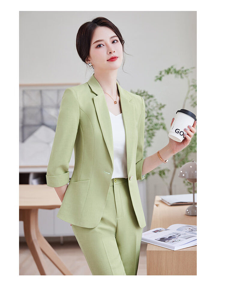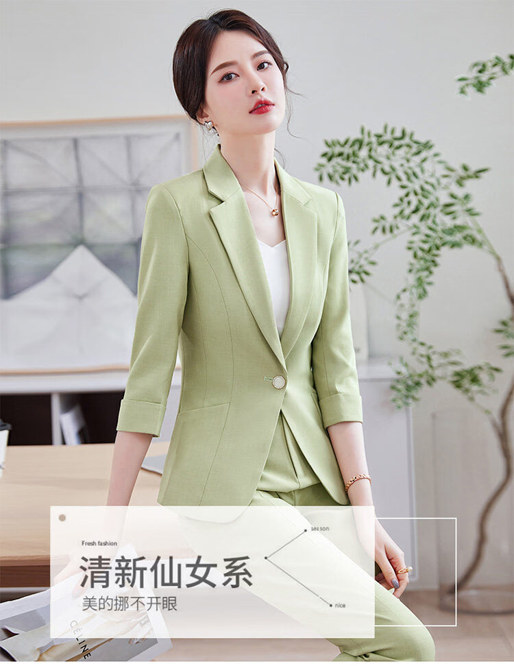ROMON 2026 summer new style mid-sleeve suit suit for women, high-end, small, professional, casual, small suit jacket, green single-piece suit jacket XL recommended 109-119 Jin Jin equals 0.5 kg