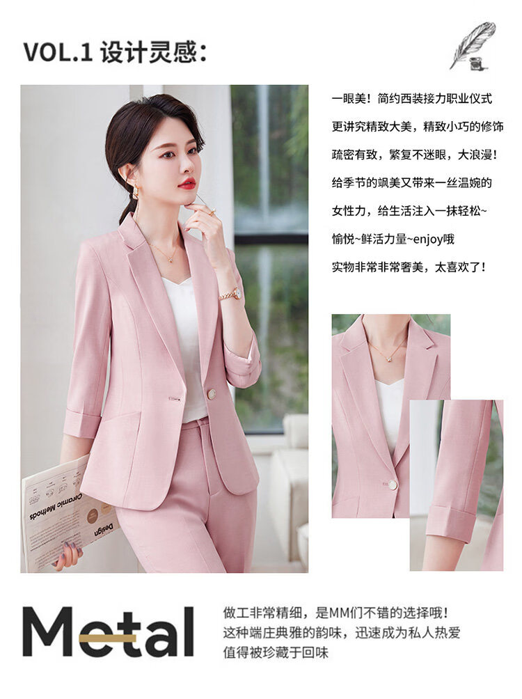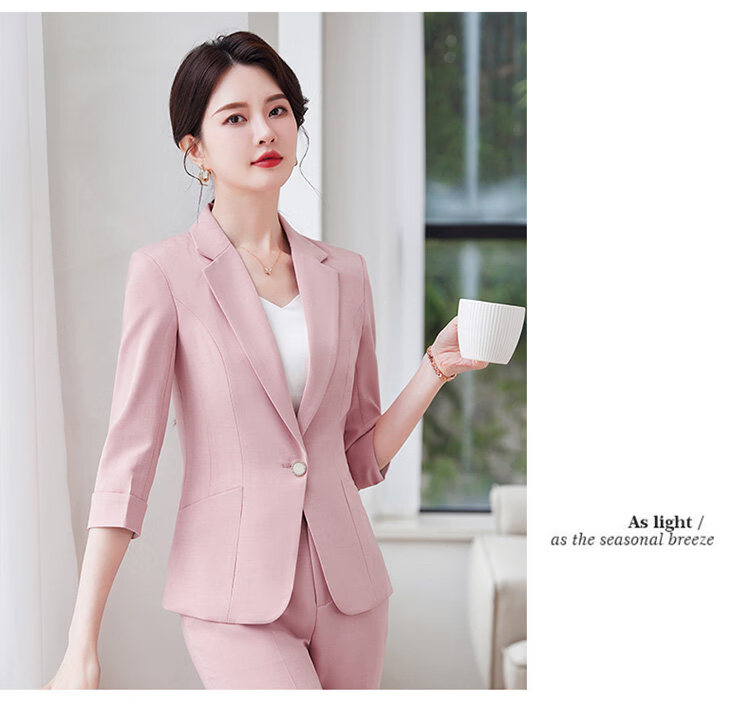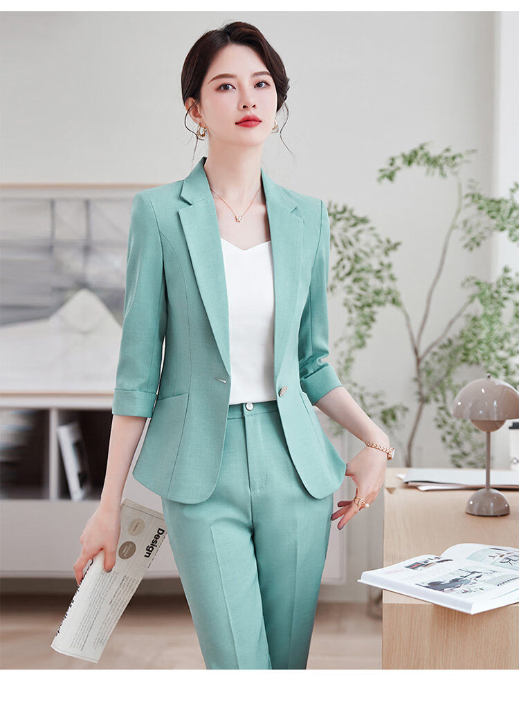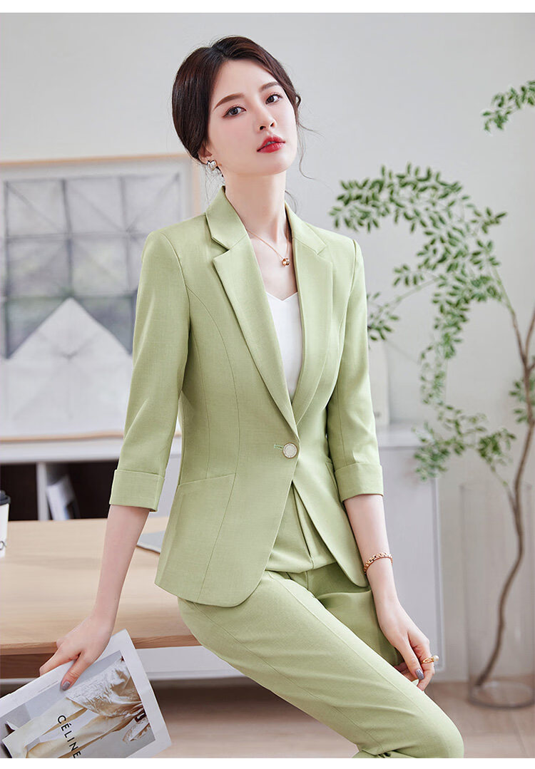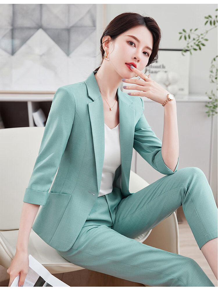 ROMON 2026 summer new style mid-sleeve suit suit for women, high-end, small, professional, casual, small suit jacket, green single-piece suit jacket XL recommended 109-119 Jin Jin equals 0.5 kg