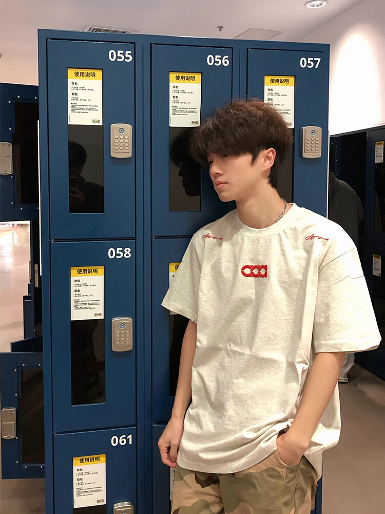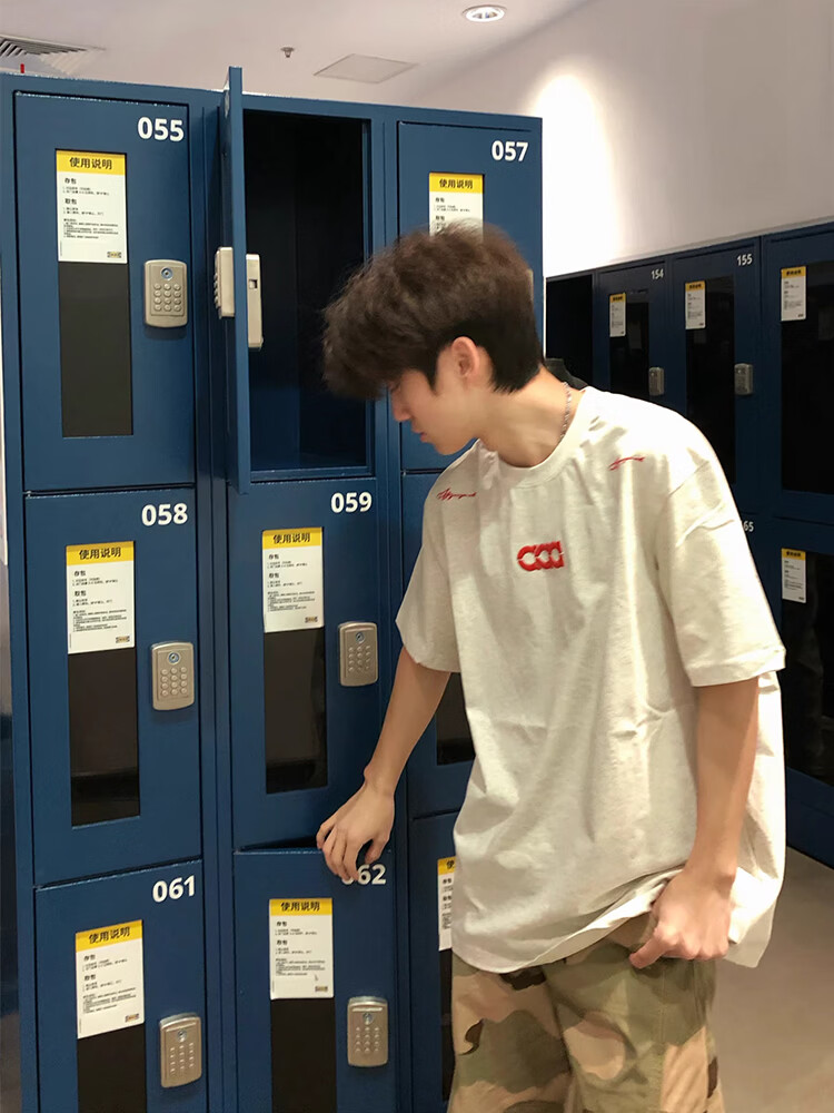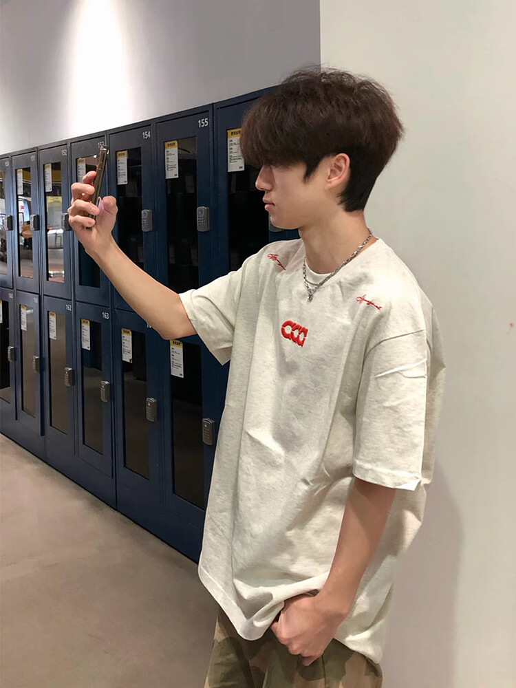 Cotton heavyweight American embroidery short-sleeved men's T-shirt summer new bottoming shirt loose high street trendy half-sleeved clothes 3295 white gray high quality XL 120-140Jin Jin equals 0.5 kg