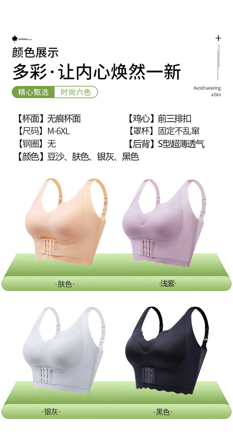 Large size thin fixed full cup seamless front buckle adjustable corrective bra for women without rims upper support bra skin color 2XL 40/90 recommended 140-160 Jin Jin equals 0.5 kg BCDE