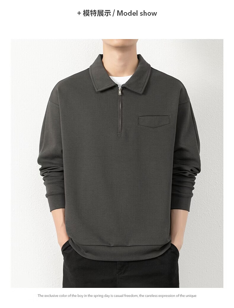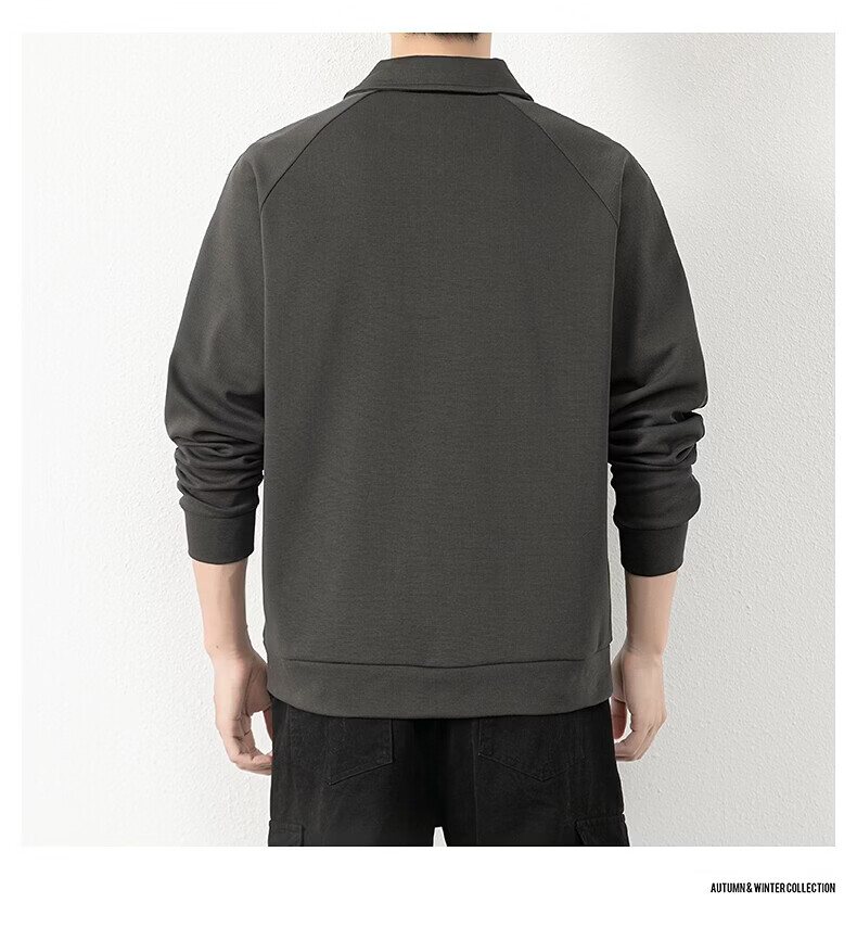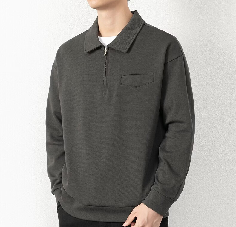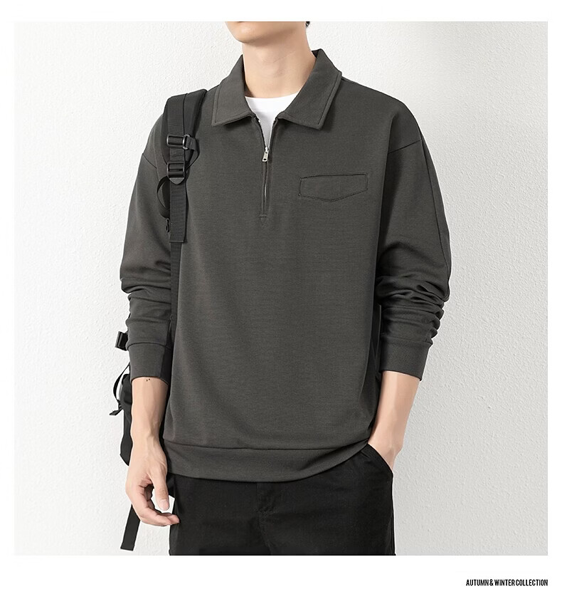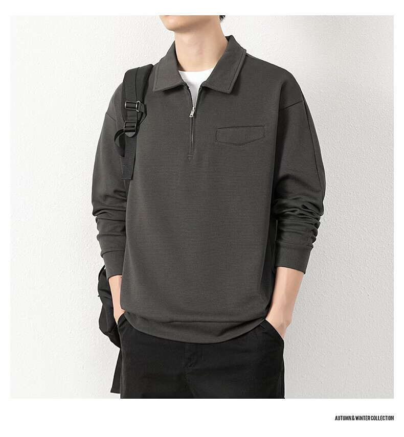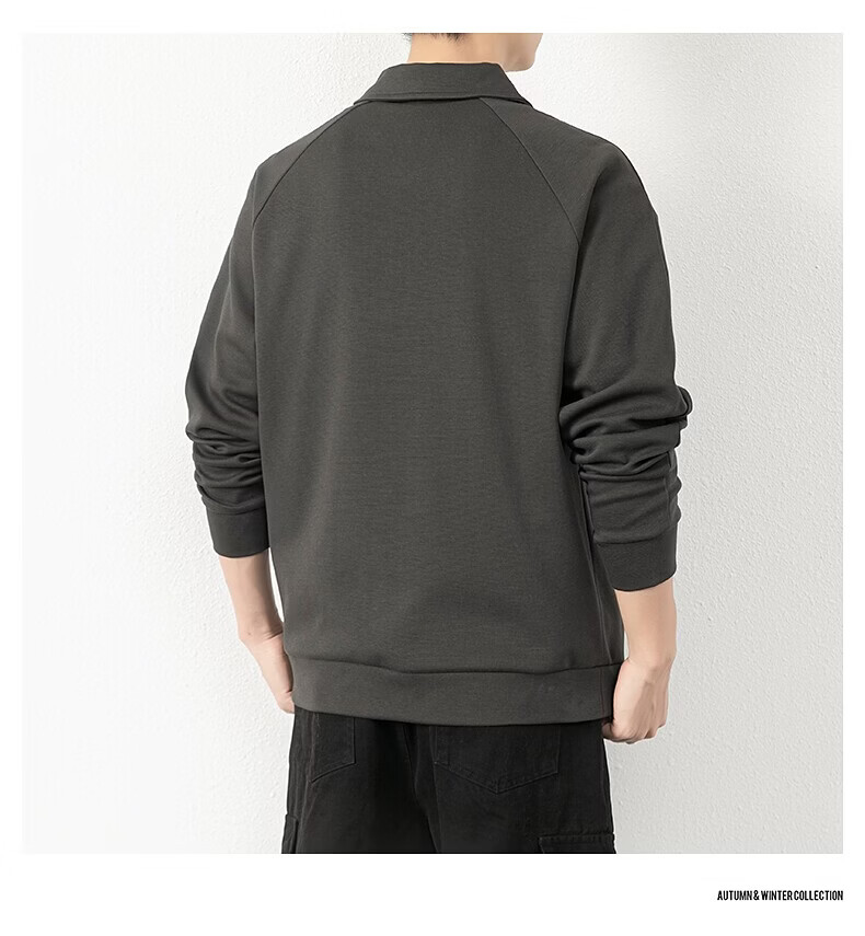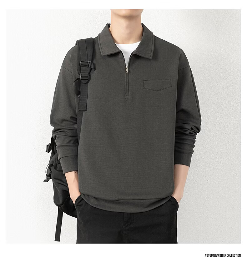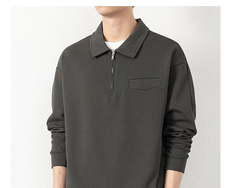 JEEP SPIRIT half-zip sweatshirt men's spring and autumn new lapel Polo shirt loose casual bottoming long-sleeved T-shirt men's 698 dark gray M