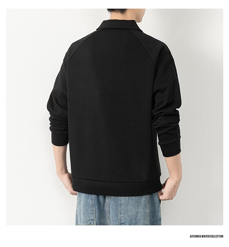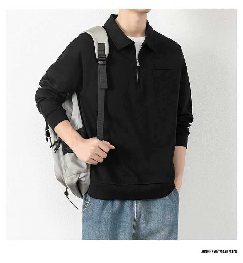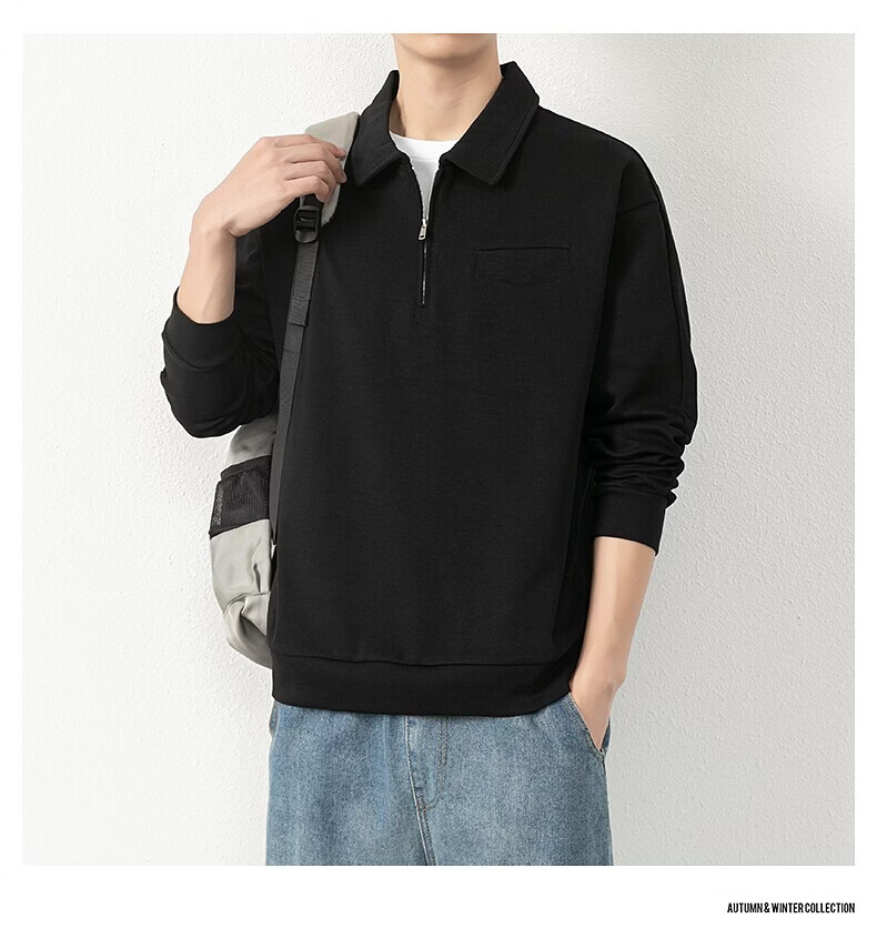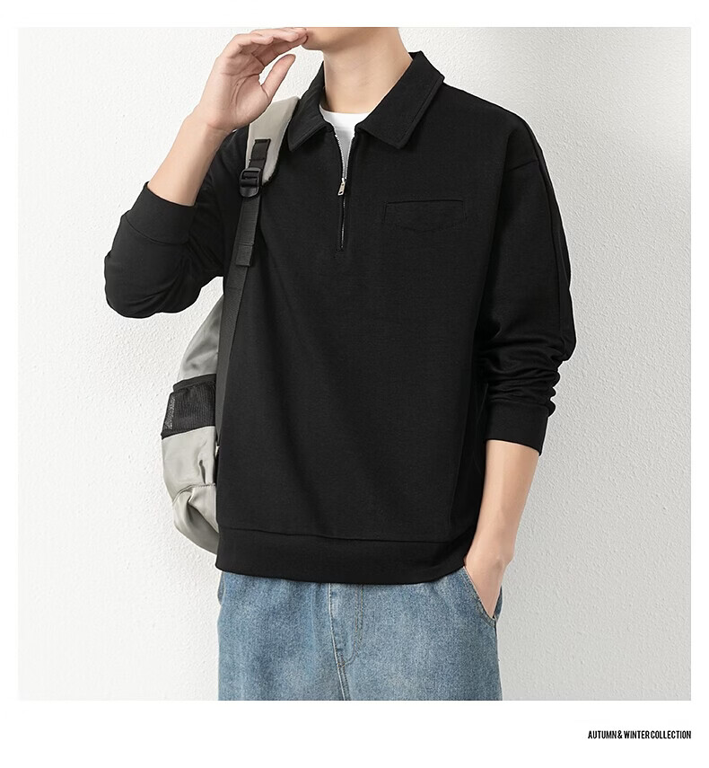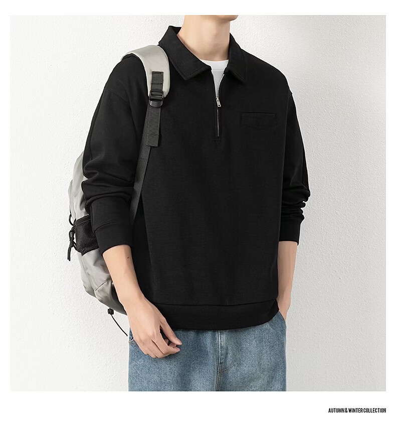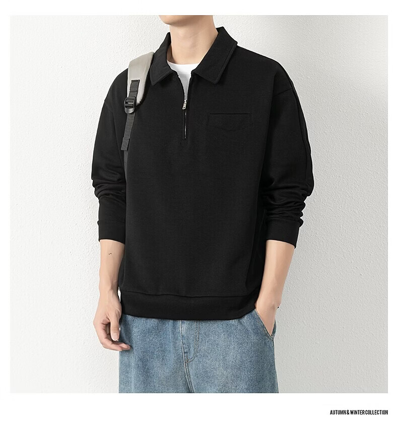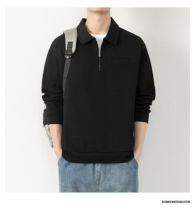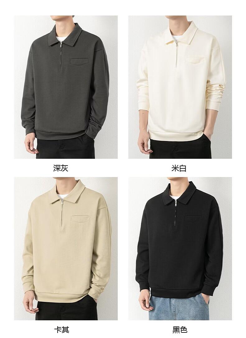 JEEP SPIRIT half-zip sweatshirt men's spring and autumn new lapel Polo shirt loose casual bottoming long-sleeved T-shirt men's 698 dark gray M