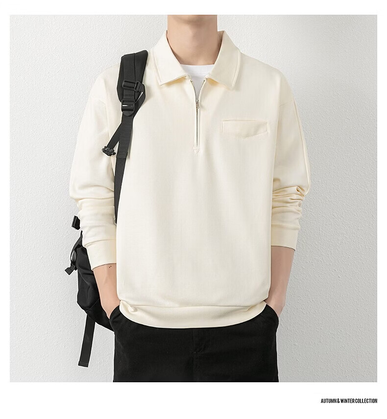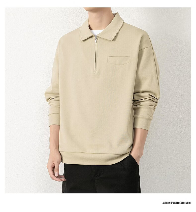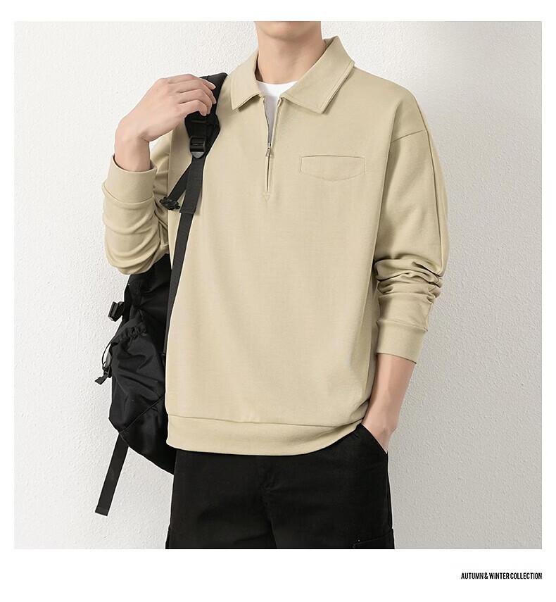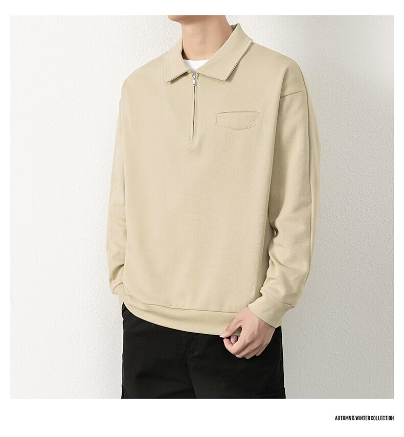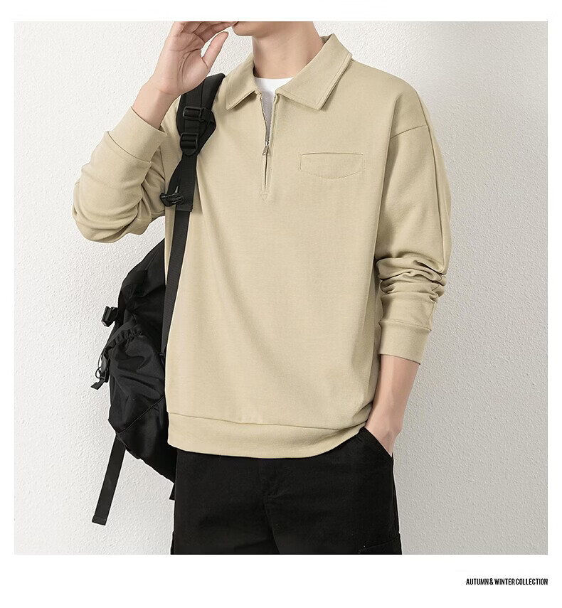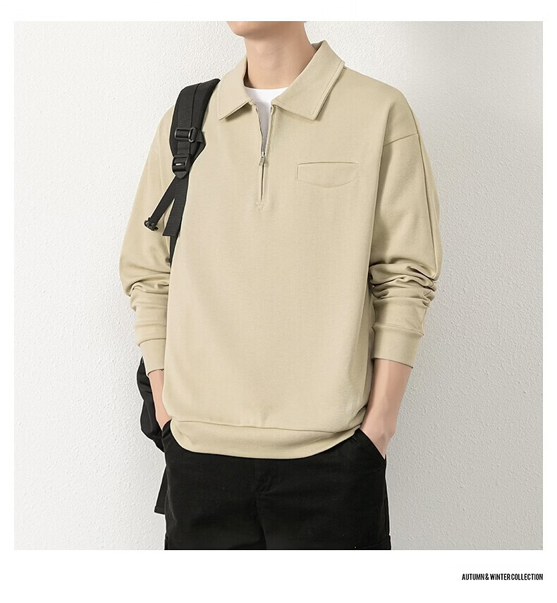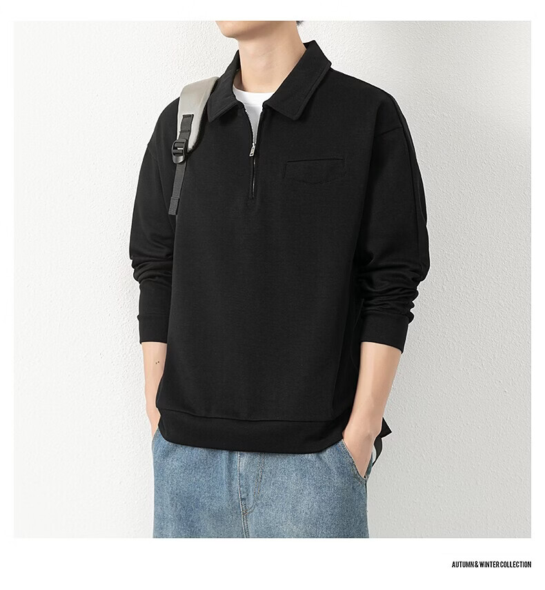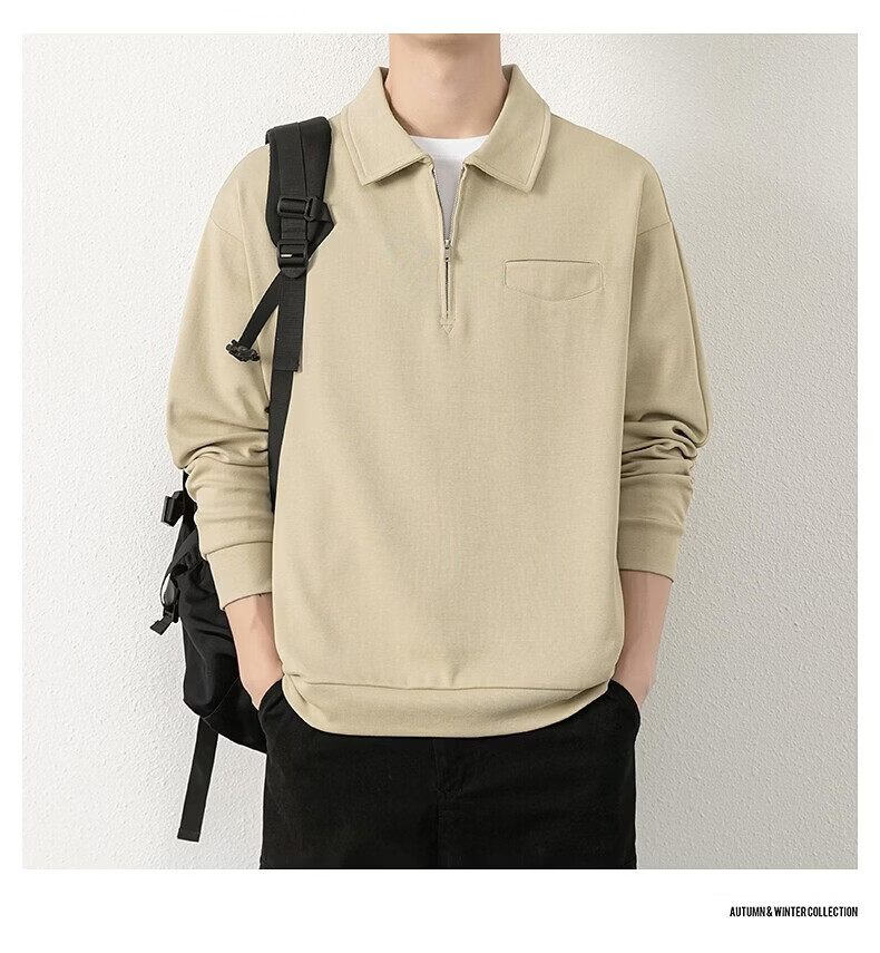 JEEP SPIRIT half-zip sweatshirt men's spring and autumn new lapel Polo shirt loose casual bottoming long-sleeved T-shirt men's 698 dark gray M