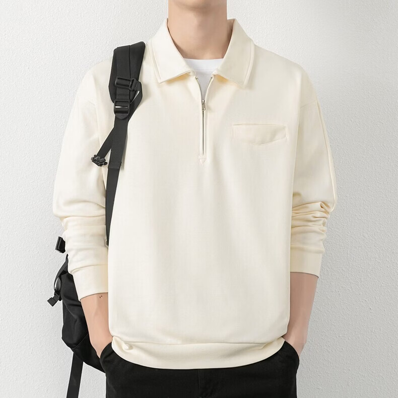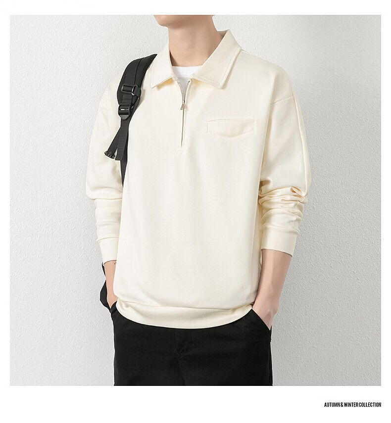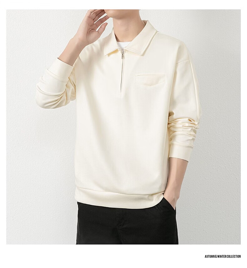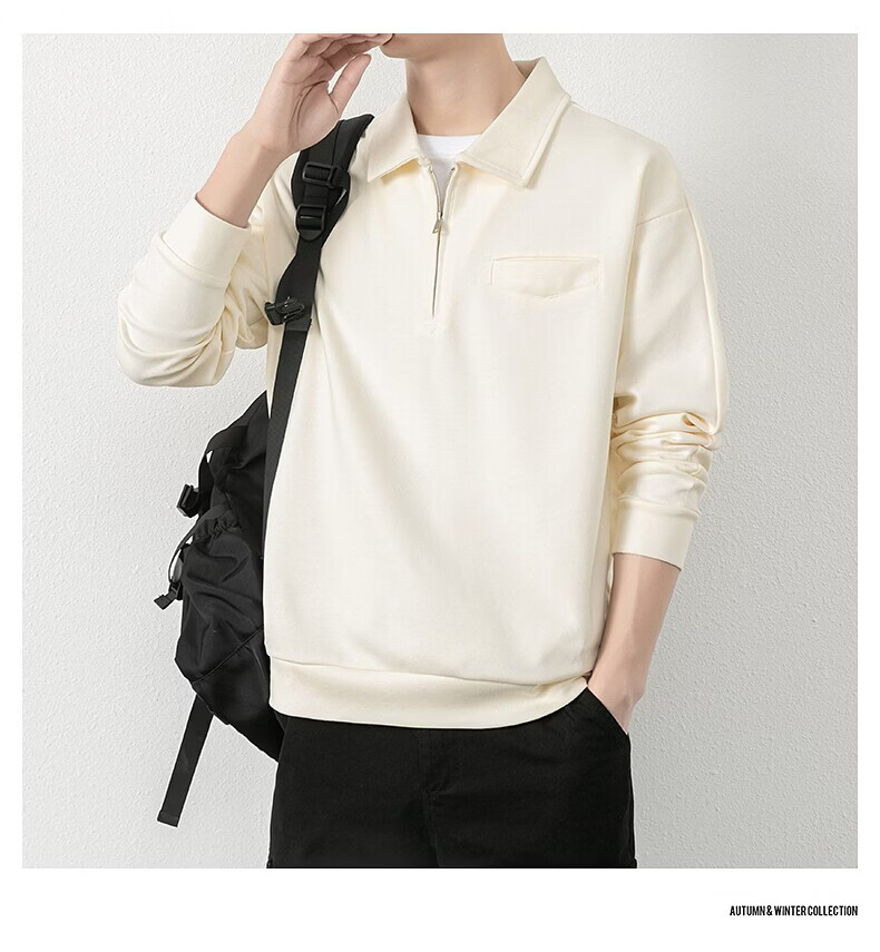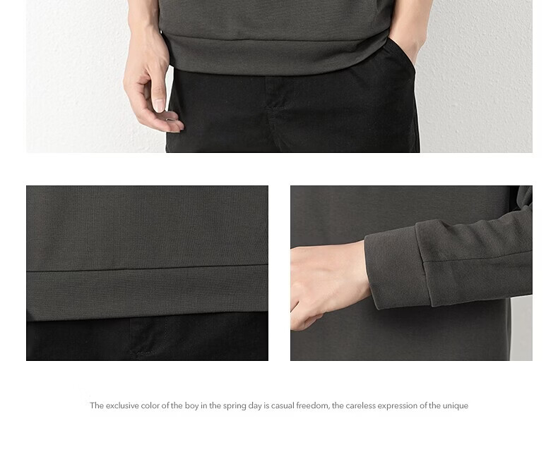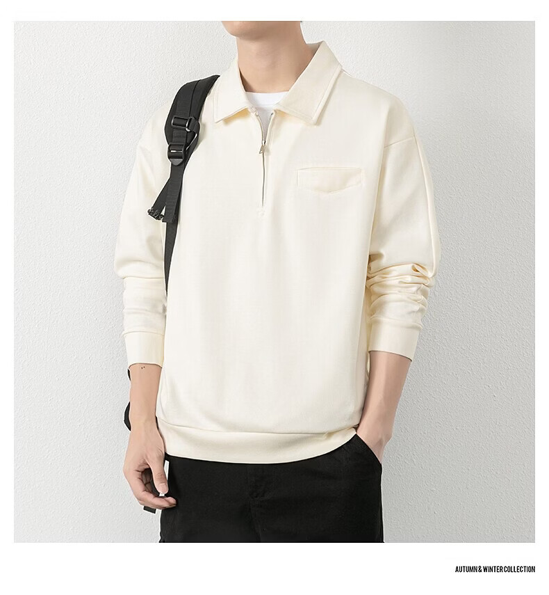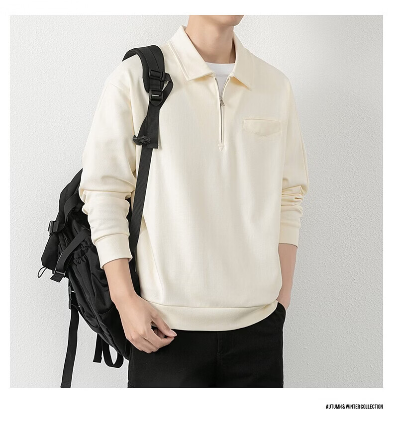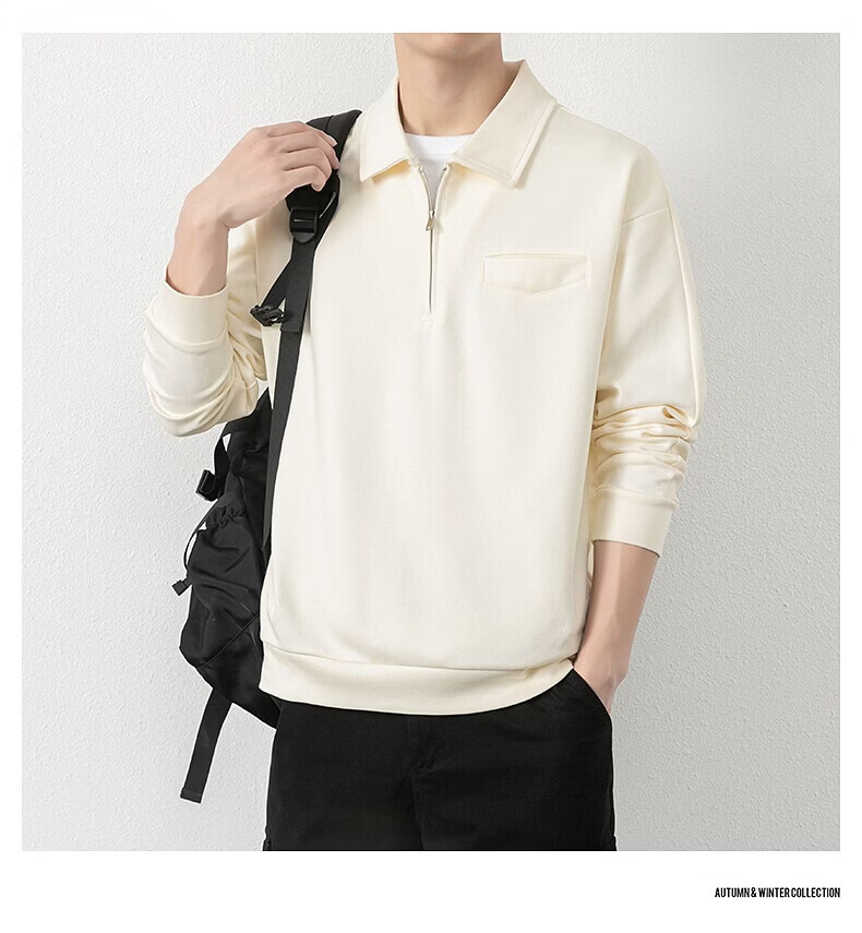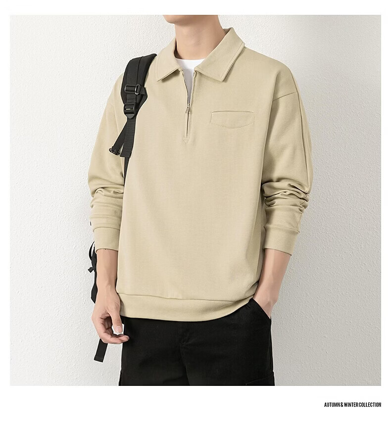 JEEP SPIRIT half-zip sweatshirt men's spring and autumn new lapel Polo shirt loose casual bottoming long-sleeved T-shirt men's 698 dark gray M