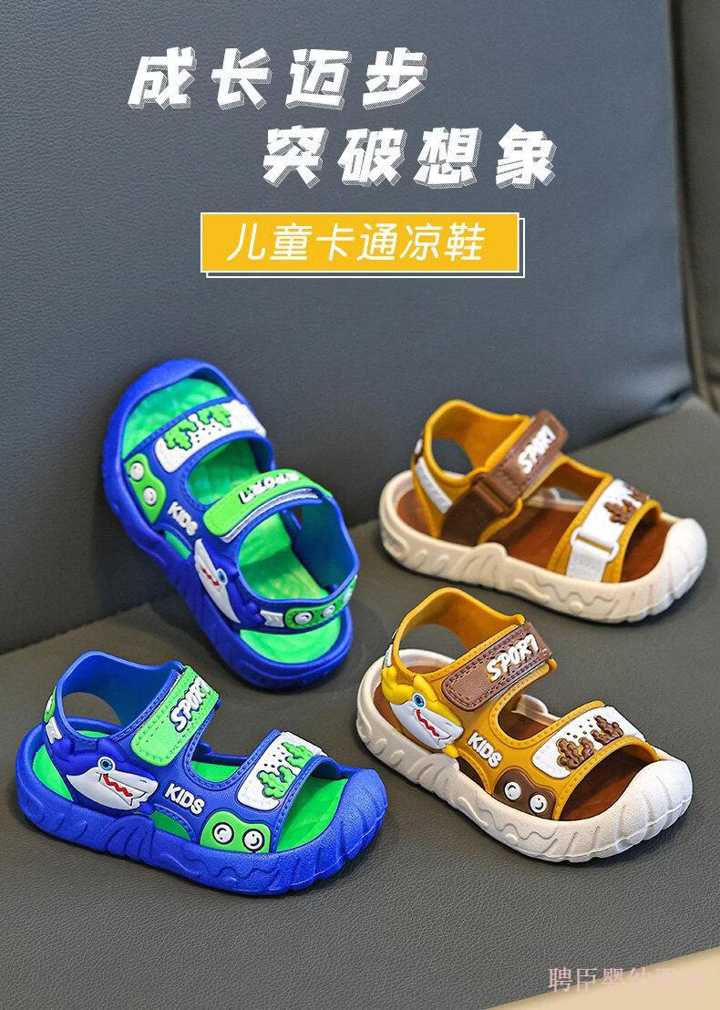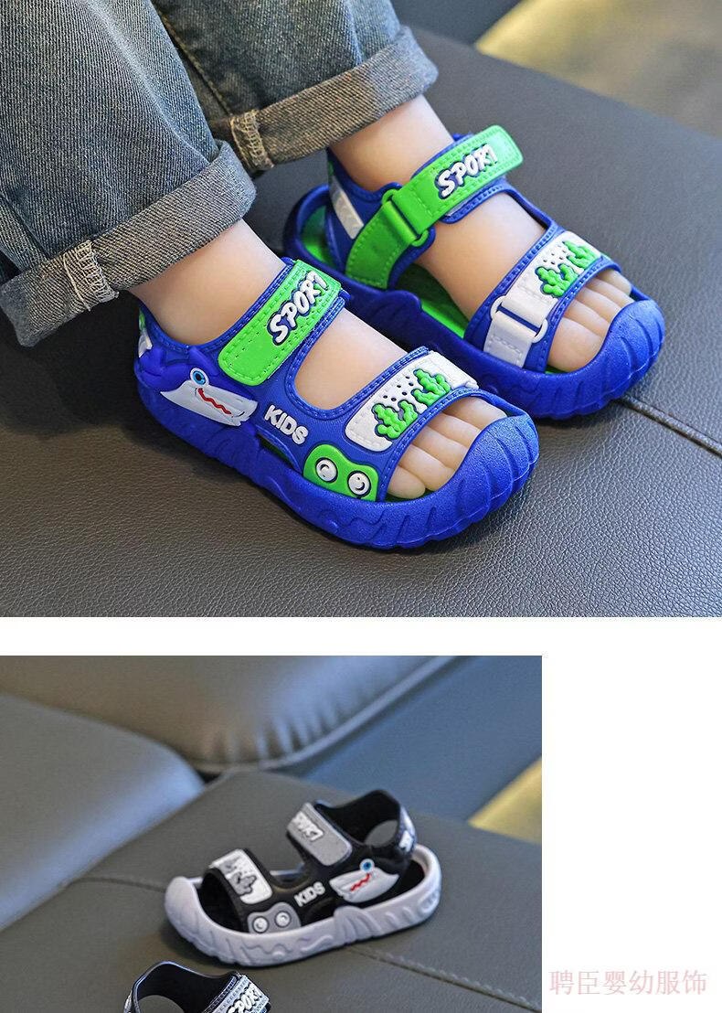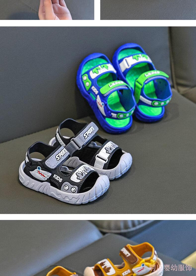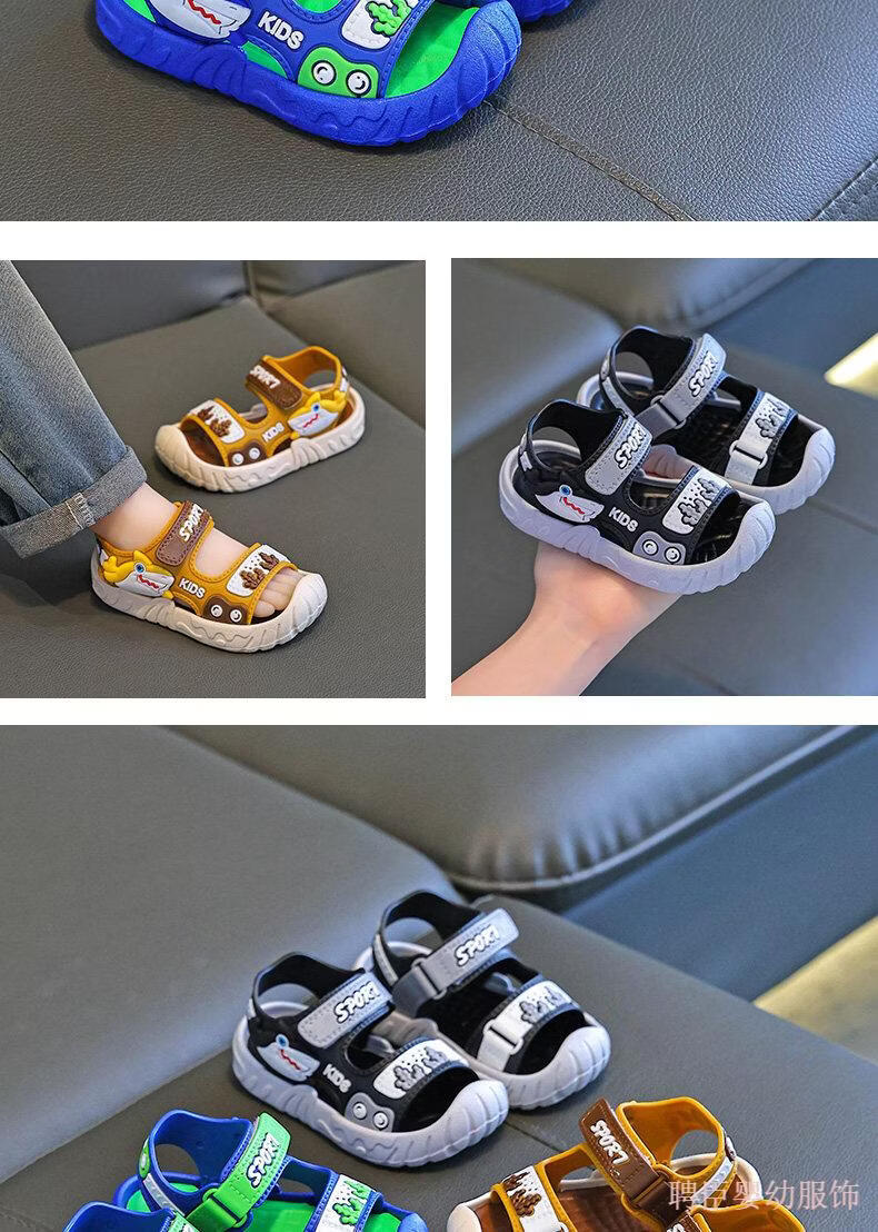 G.duck boys' sandals, children's summer shoes 2026 new soft-soled anti-slip anti-slip anti-kick beach shoes for middle and large children, gray 24, inner length 15.5cm, suitable for feet 14.5cm long