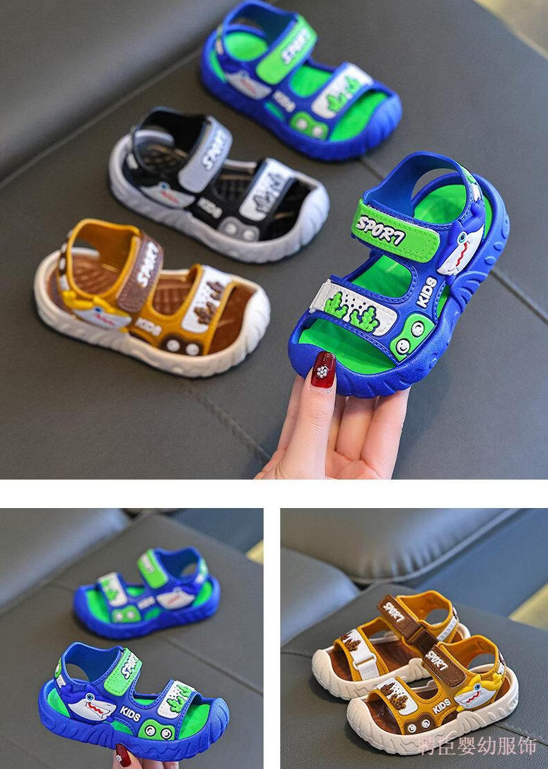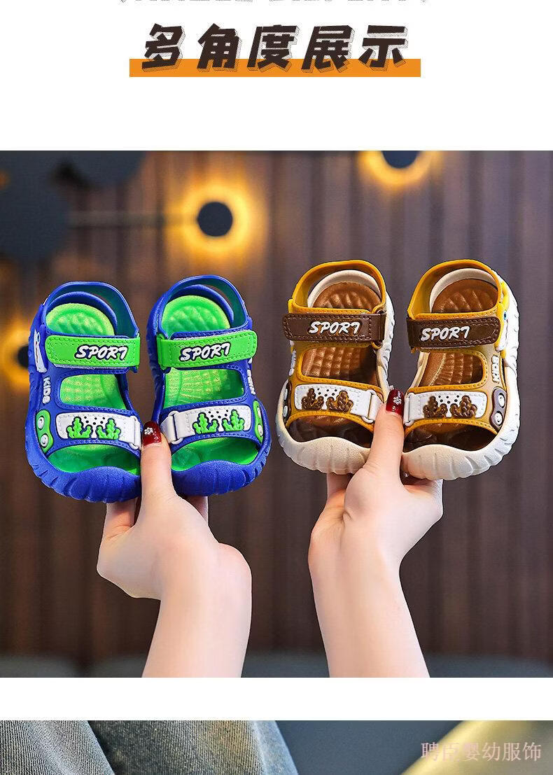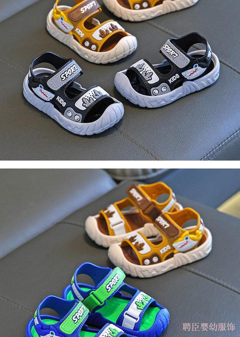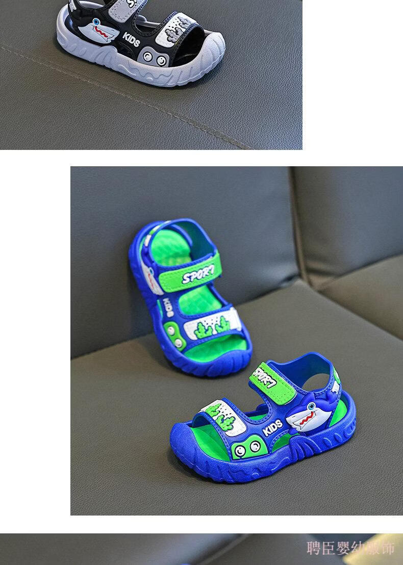 G.duck boys' sandals, children's summer shoes 2026 new soft-soled anti-slip anti-slip anti-kick beach shoes for middle and large children, gray 24, inner length 15.5cm, suitable for feet 14.5cm long