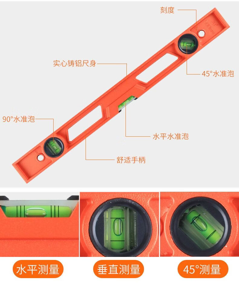 Pupan level, anti-fall, solid cast aluminum fan, small household measuring ruler, balanced ruler, high precision strong magnetic leveling ruler, strong magnetic cast aluminum level 400mm 16 inches