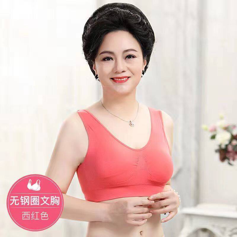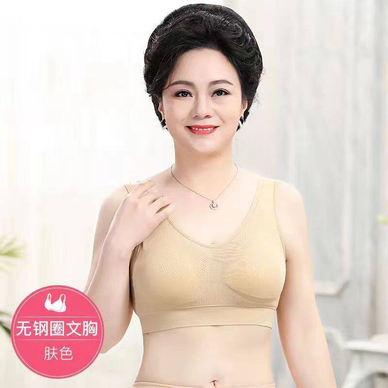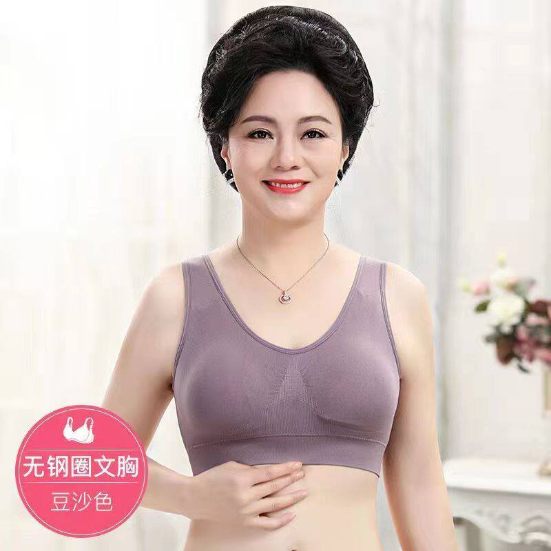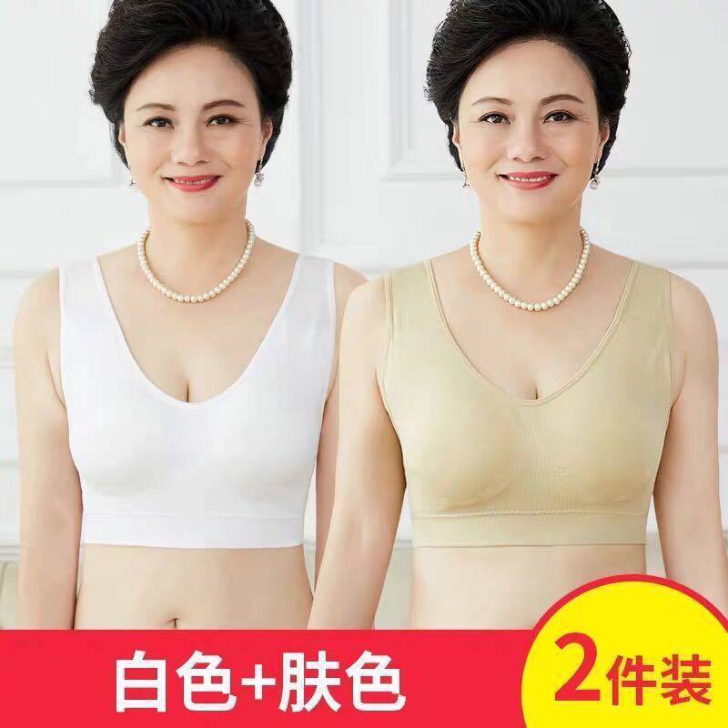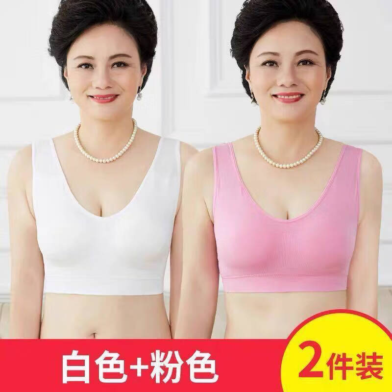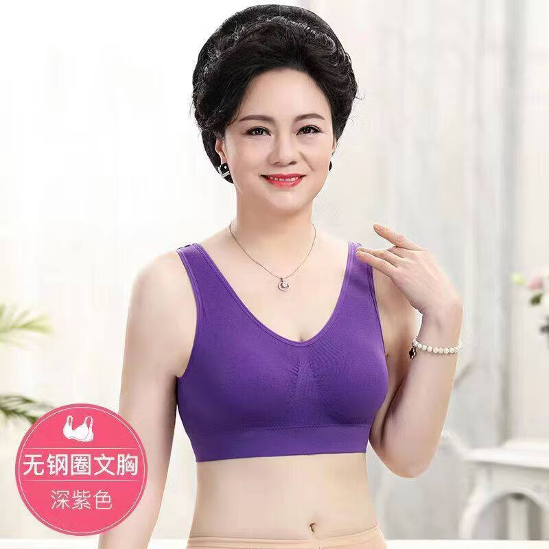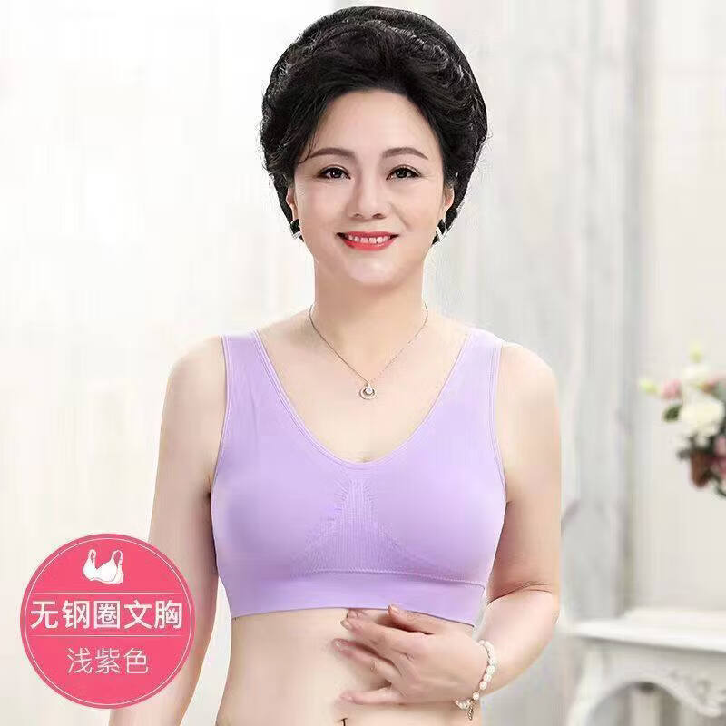 Yalu special offer 2 pieces of middle-aged and elderly underwear for mothers, cotton comfortable wire-free push-up bra, plus size bra, light purple S 50-60Jin Jin equals 0.5 kg