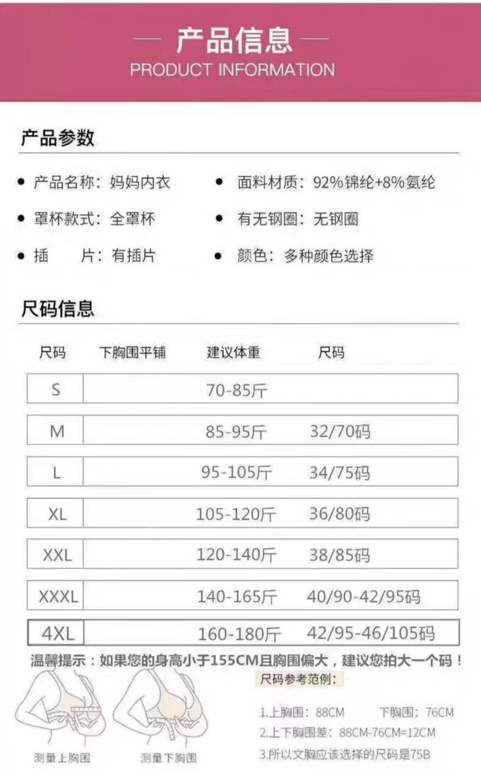 China (cm) 160-165/84-86 165-170 / 88-90 167-172 / 92-96 168-173 / 98-102 170-176 / 106-110