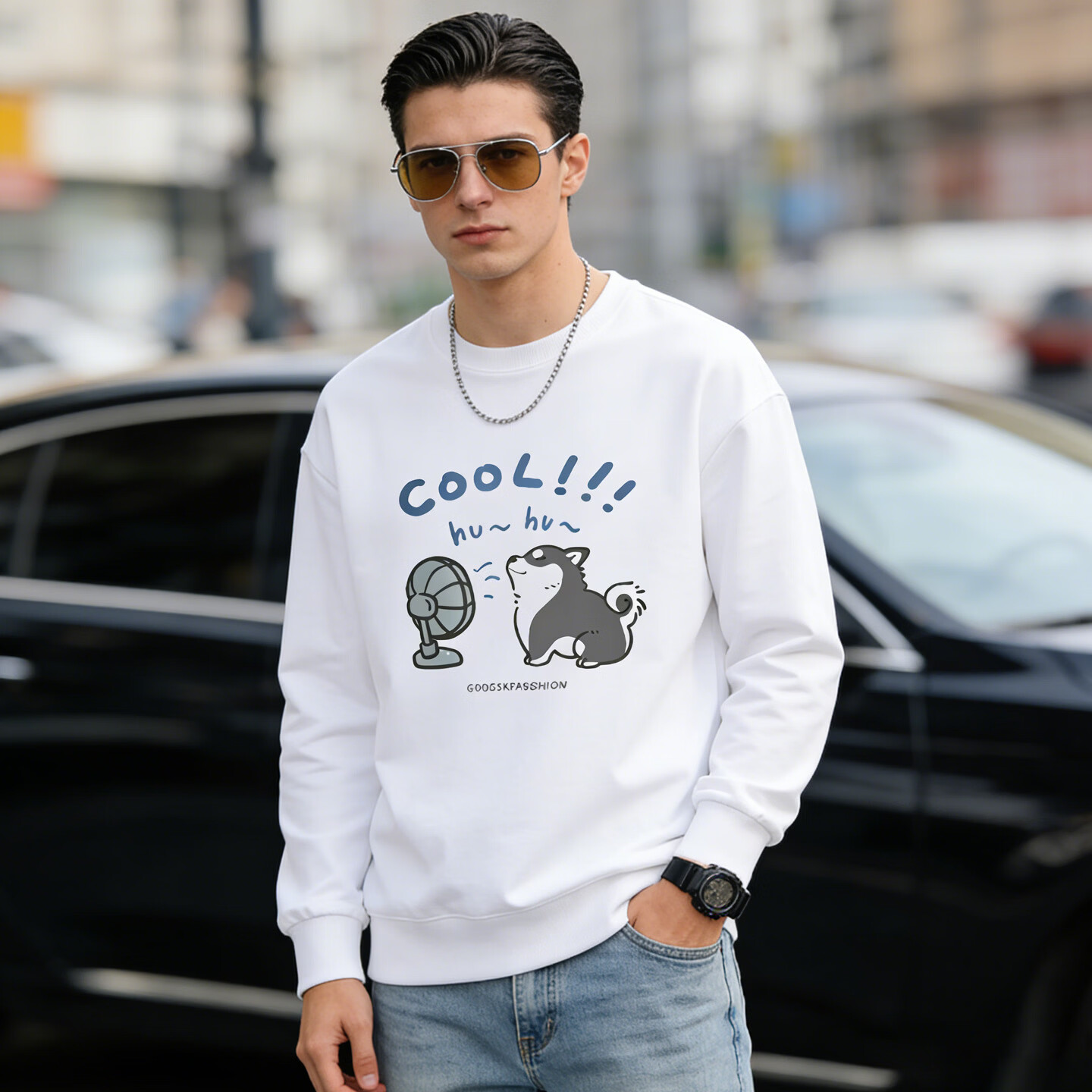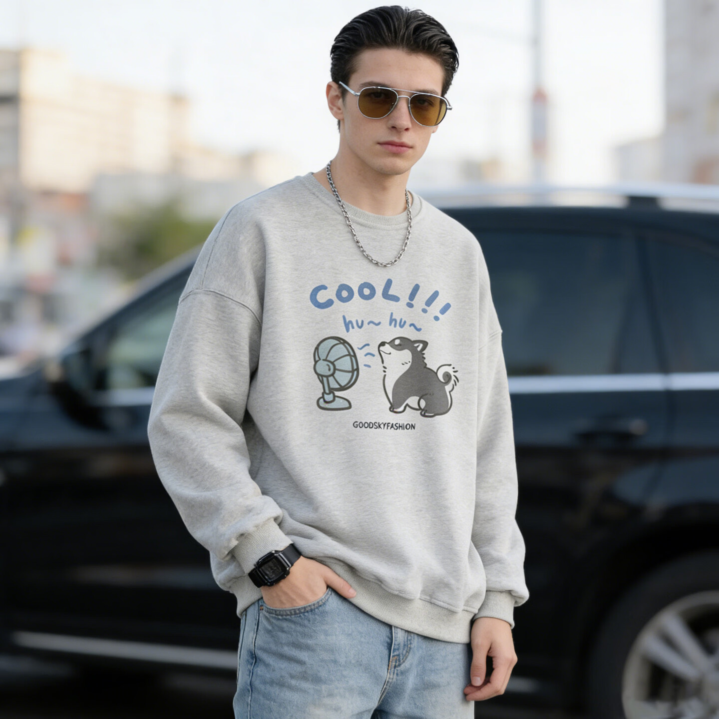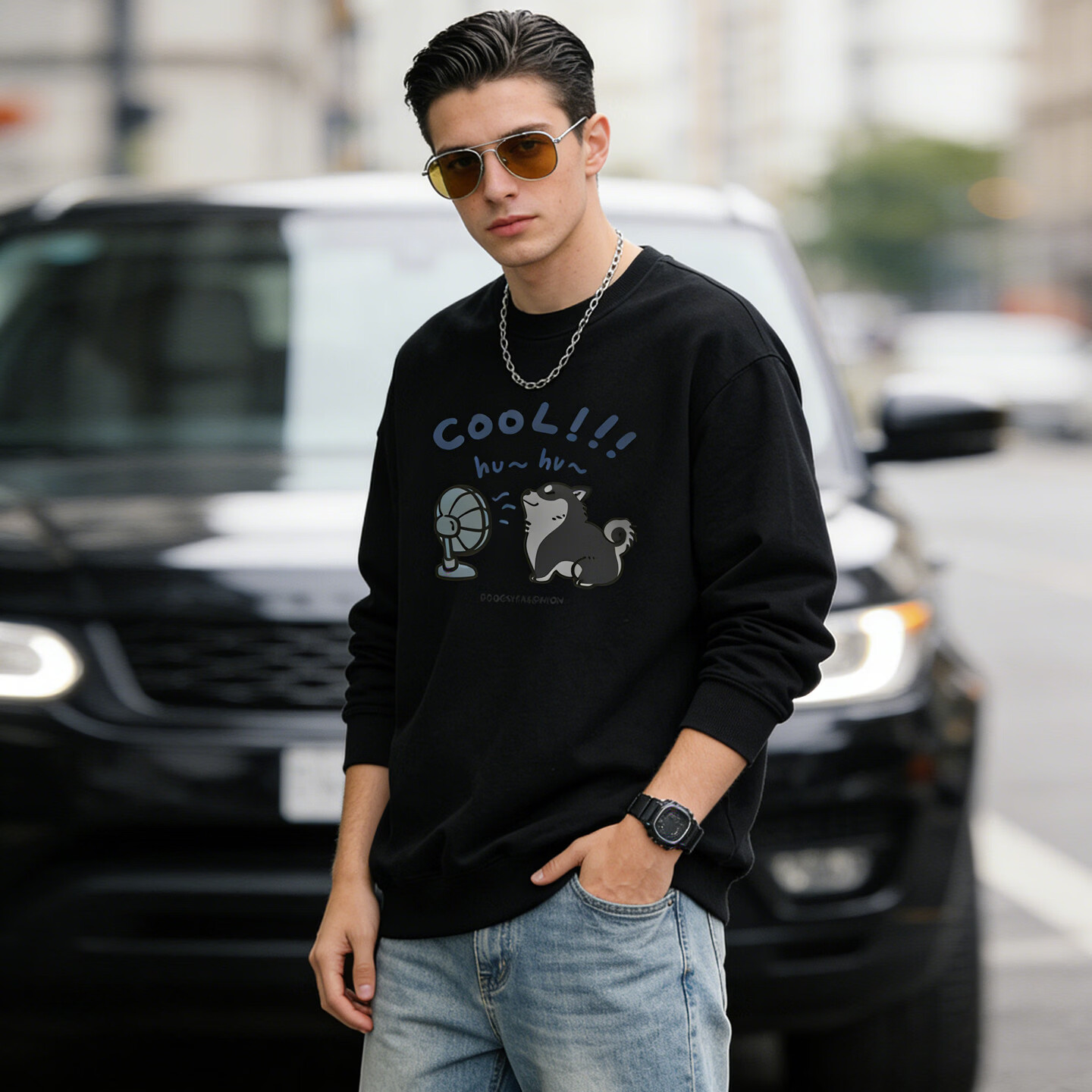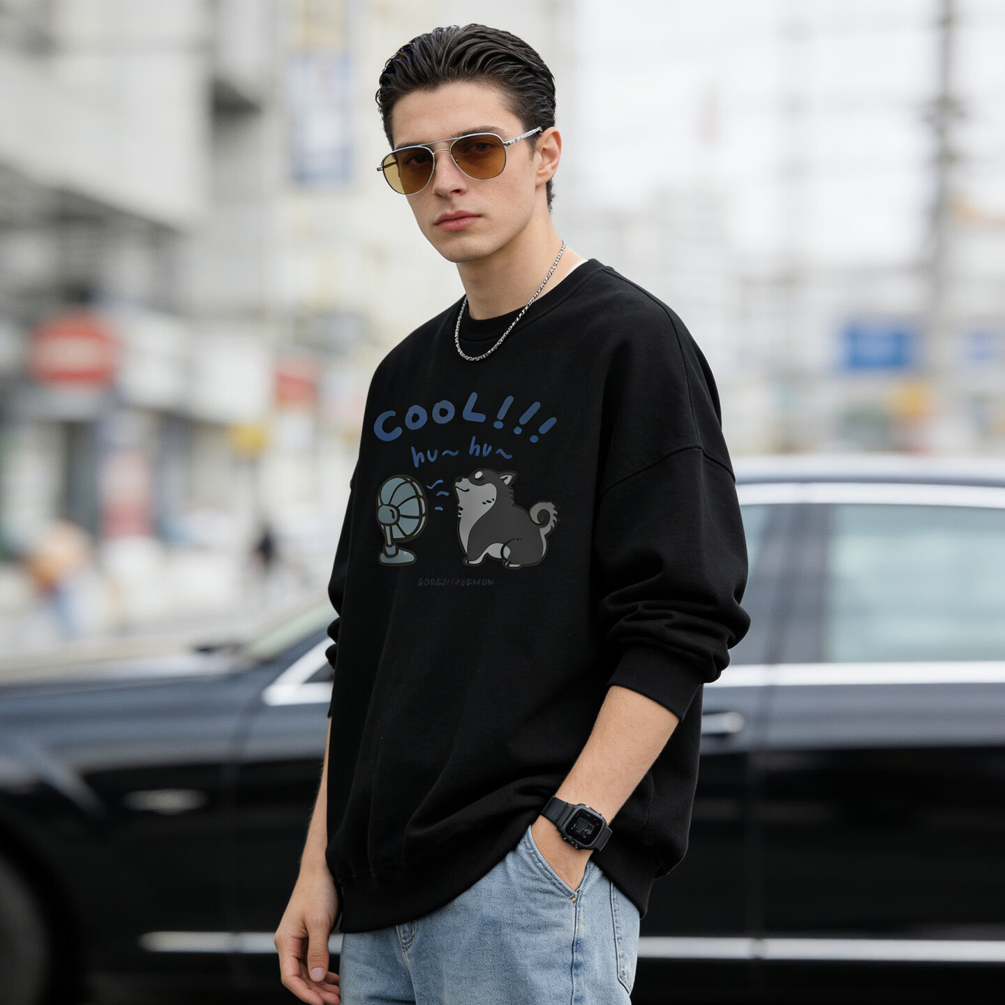 Romon American Heavyweight Round Neck Sweater Men's 2026 Spring Loose Casual Versatile Printed Top Men's Long Sleeve Jacket Black S 95-120