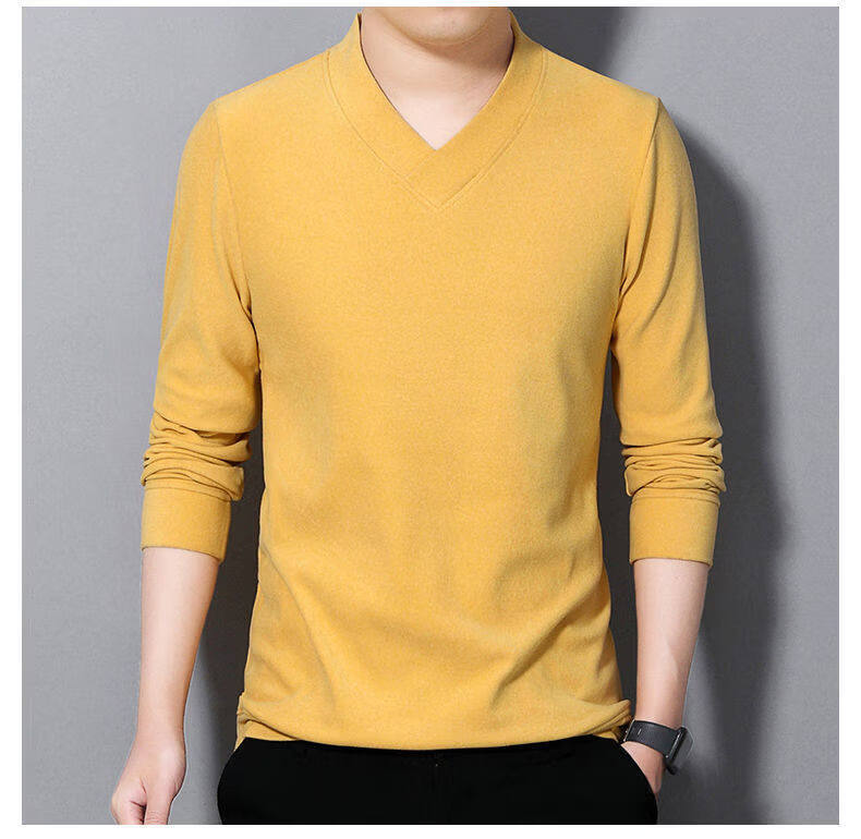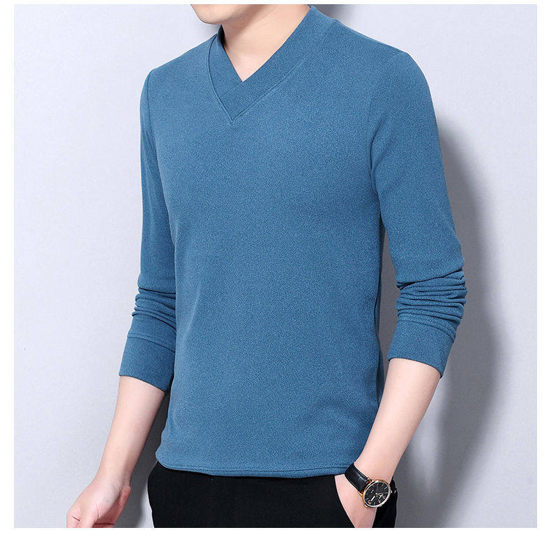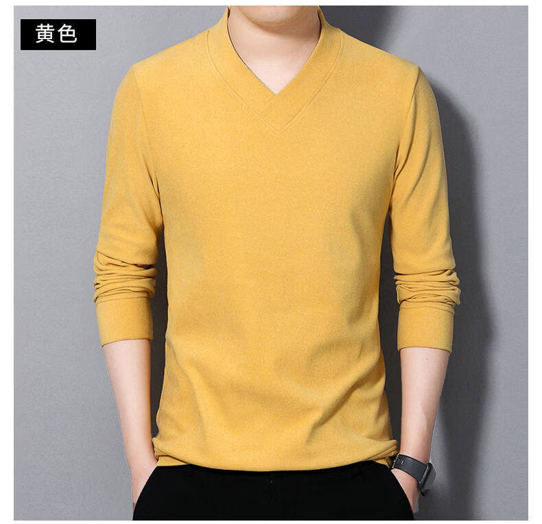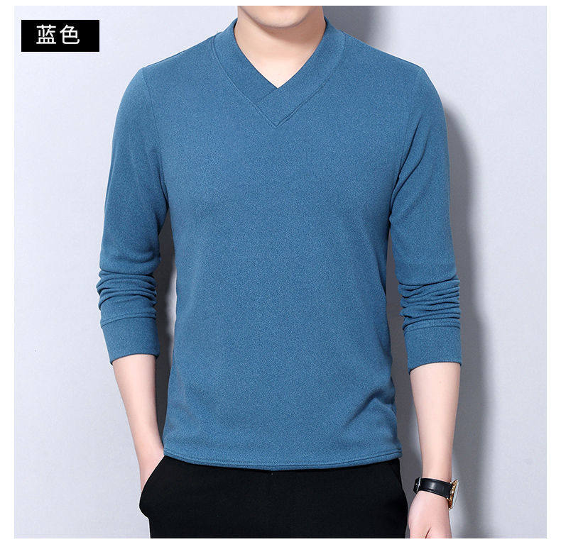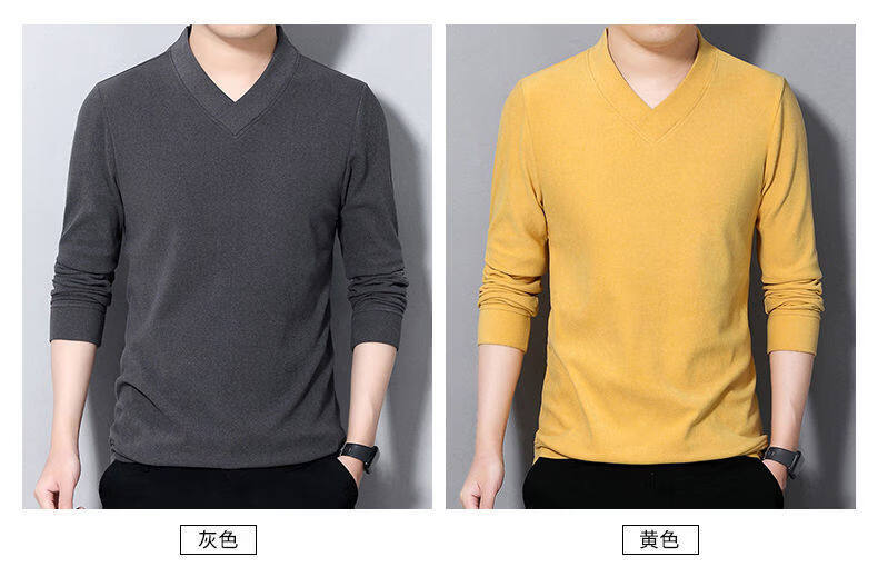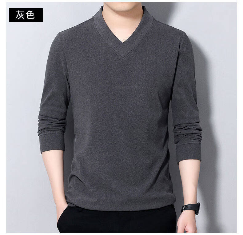 Navigare youth long-sleeved pullover casual solid color sweatshirt men's new velvet cationic V-neck slim spring and autumn outer wear 1619 Gray L Recommended weight 120-140Jin Jin equals 0.5 kg