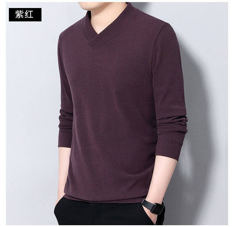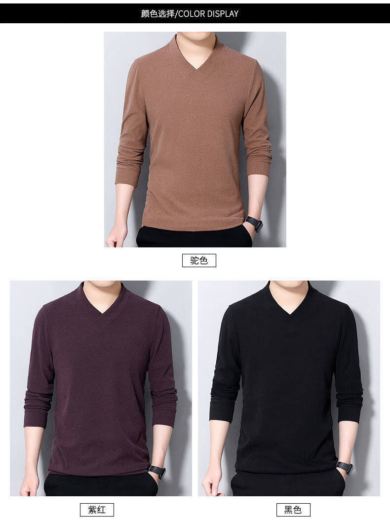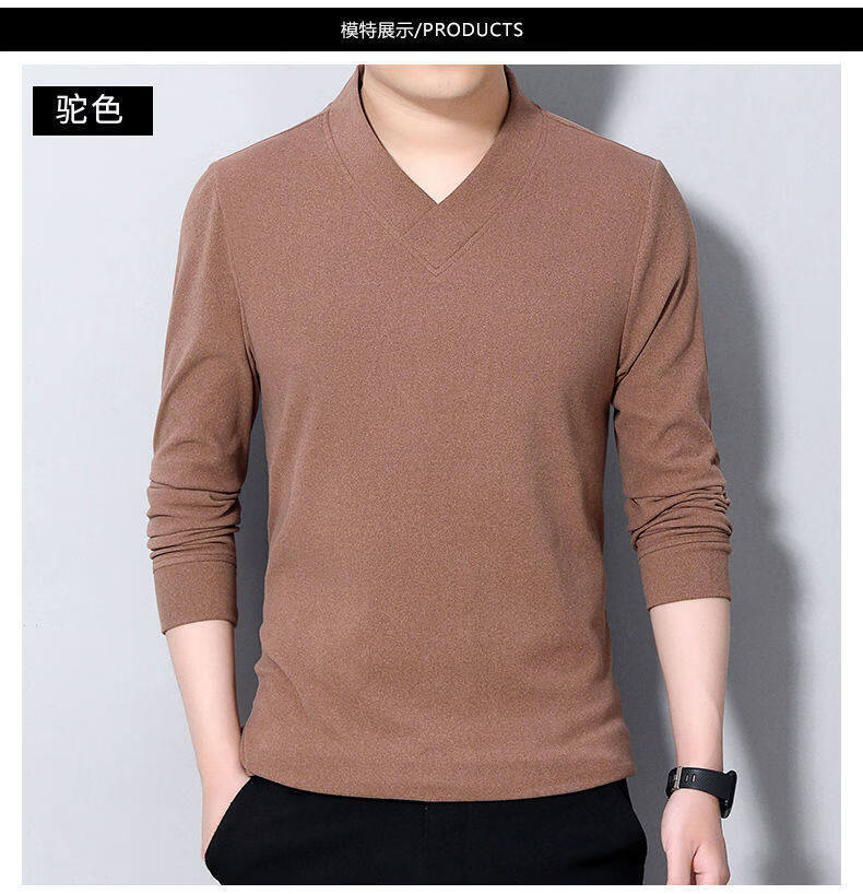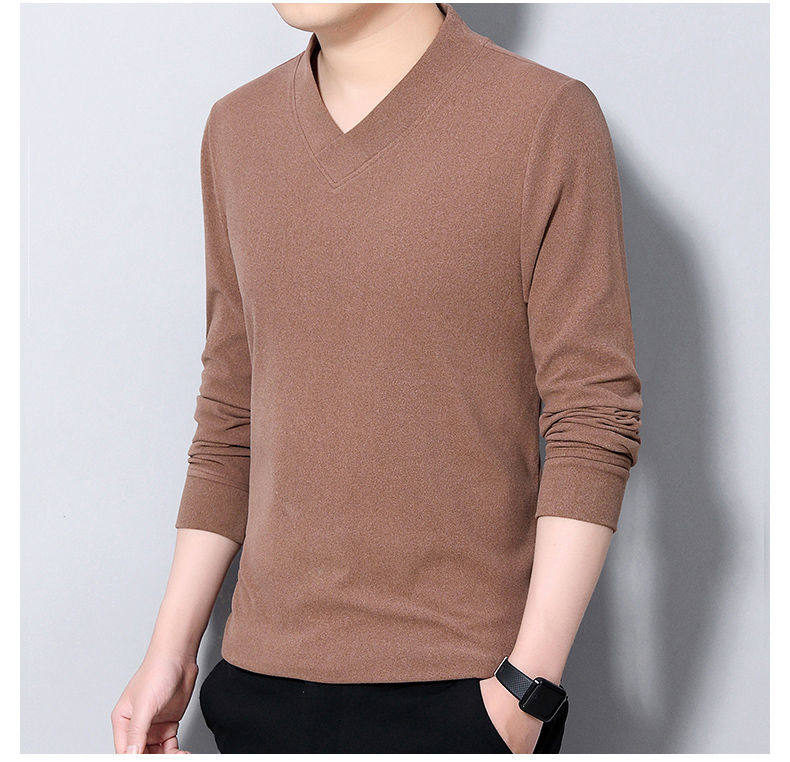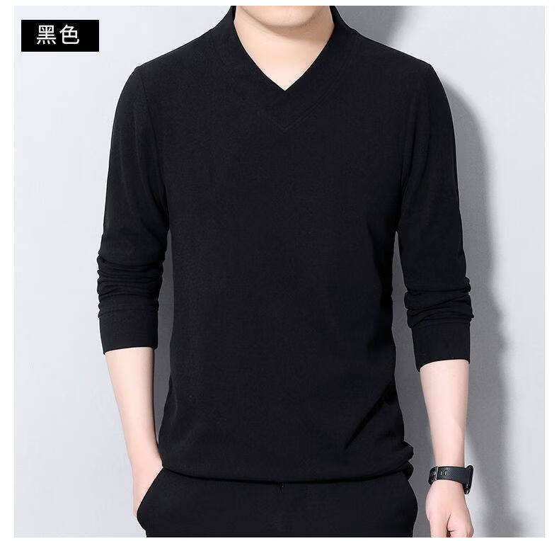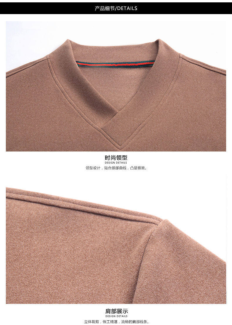 Navigare youth long-sleeved pullover casual solid color sweatshirt men's new velvet cationic V-neck slim spring and autumn outer wear 1619 Gray L Recommended weight 120-140Jin Jin equals 0.5 kg