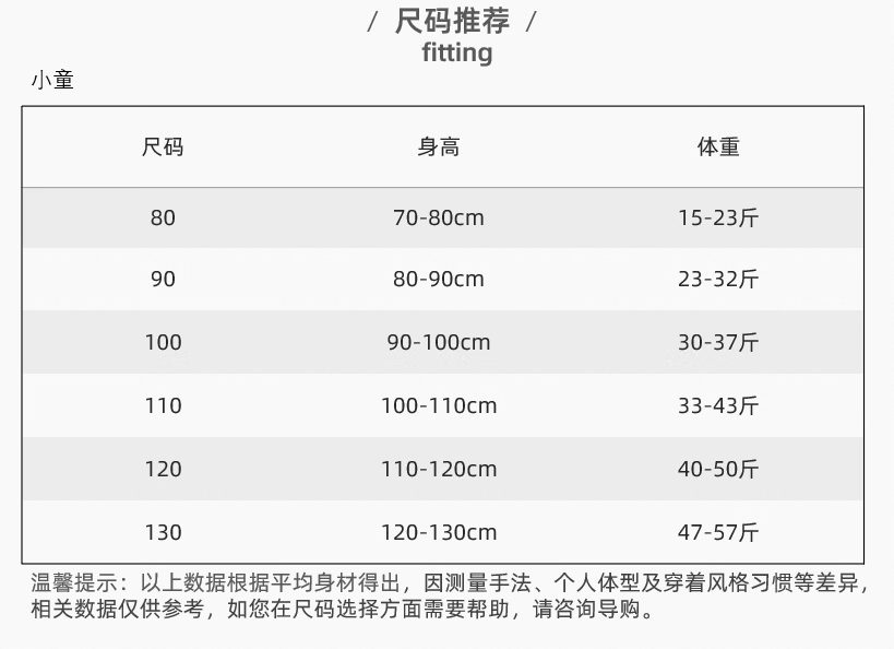 China (cm) 160-165/84-86 165-170 / 88-90 167-172 / 92-96 168-173 / 98-102 170-176 / 106-110