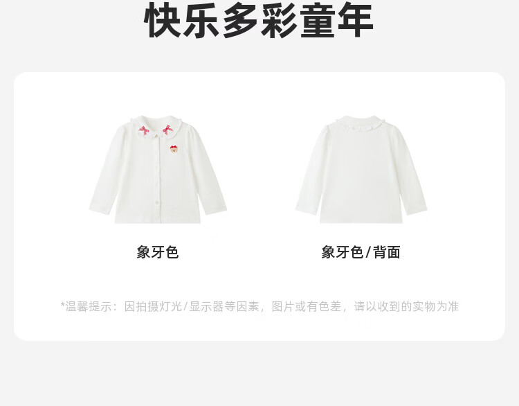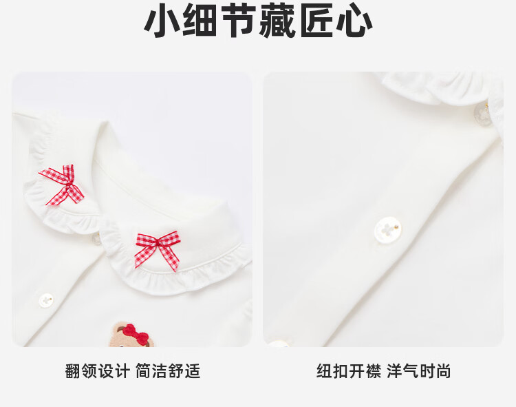 PawinPaw Cartoon Bear Children's Clothing 26 Years Baby Girl Lapel Shirt Loose Ivory White 110