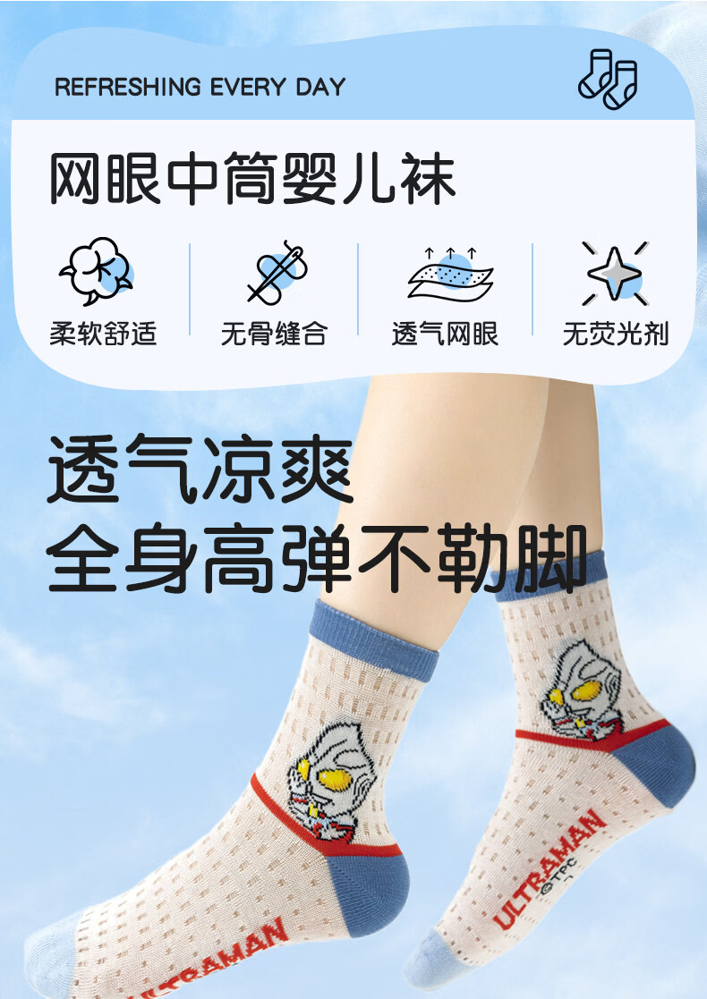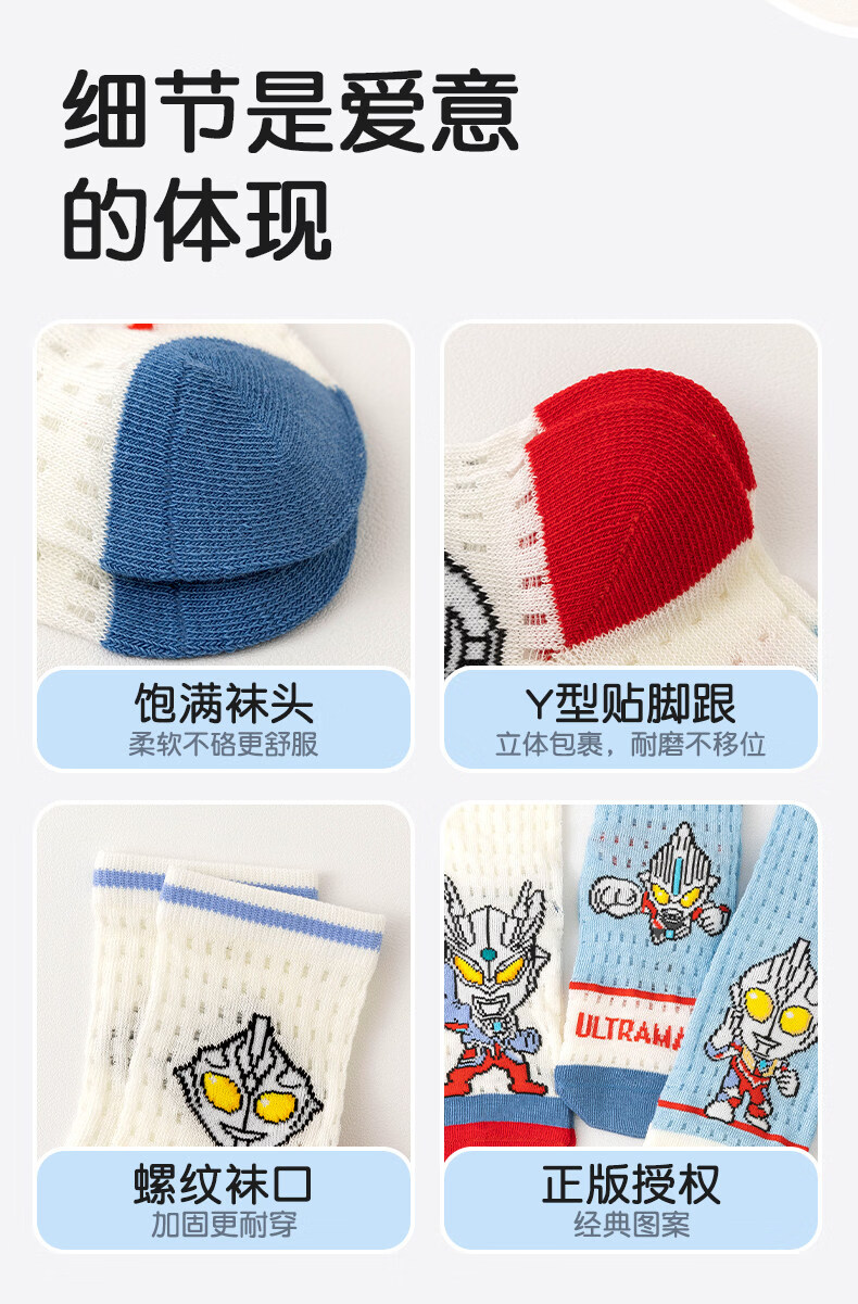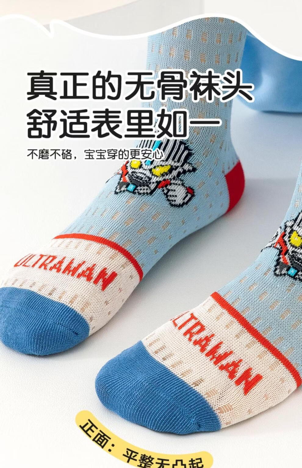 Cat Man (MiiOW) Ultraman Children's Socks Boys' Summer Thin Mid-Tube Socks Breathable Spring and Summer Little Boy Baby Cartoon Mesh Socks Cartoon Dinosaur - Ice Silk Mesh 5 Pairs 1-3 Years Old S Size Recommended Foot Length 11-14CM Shoe Size 16-19 Official Genuine Authorization